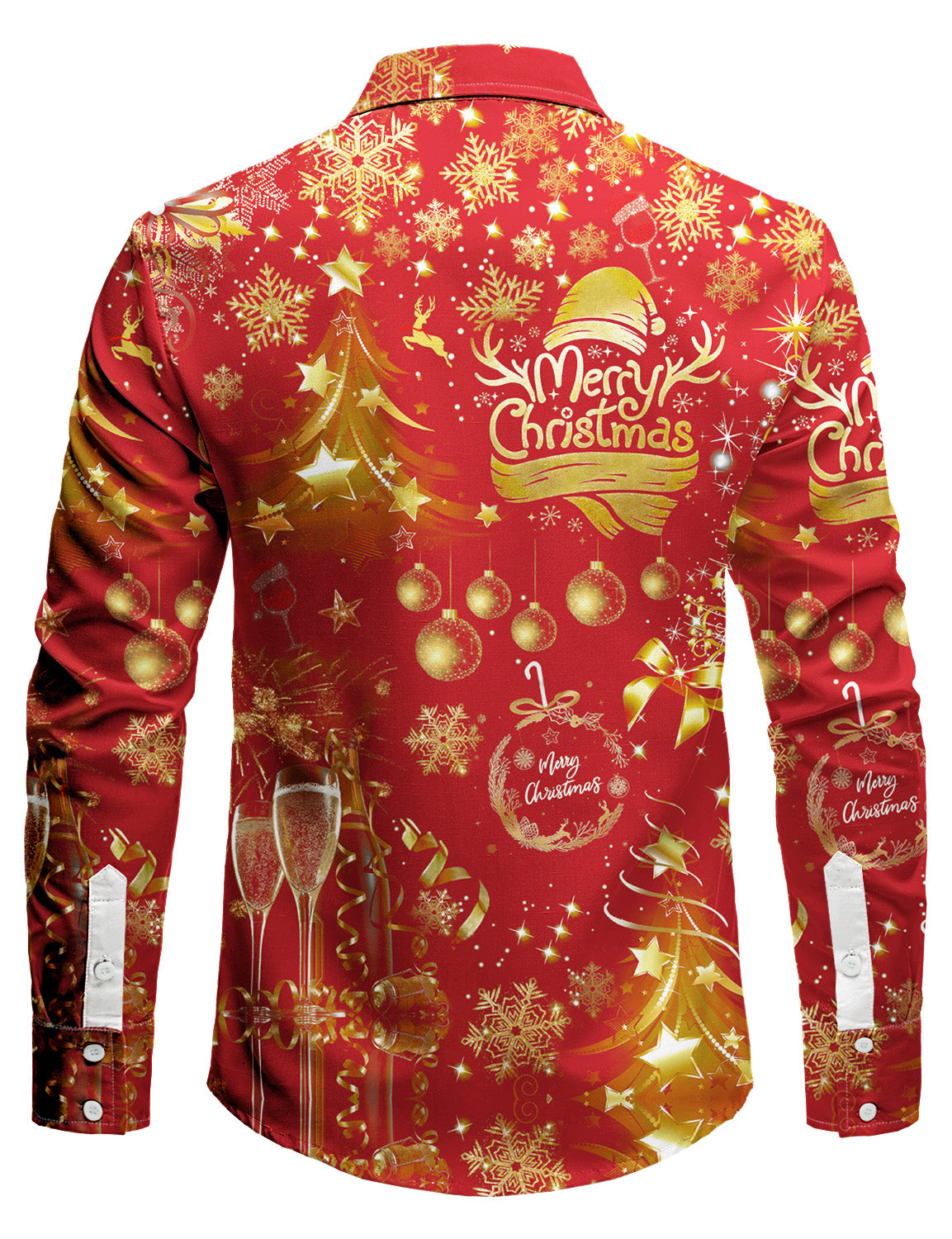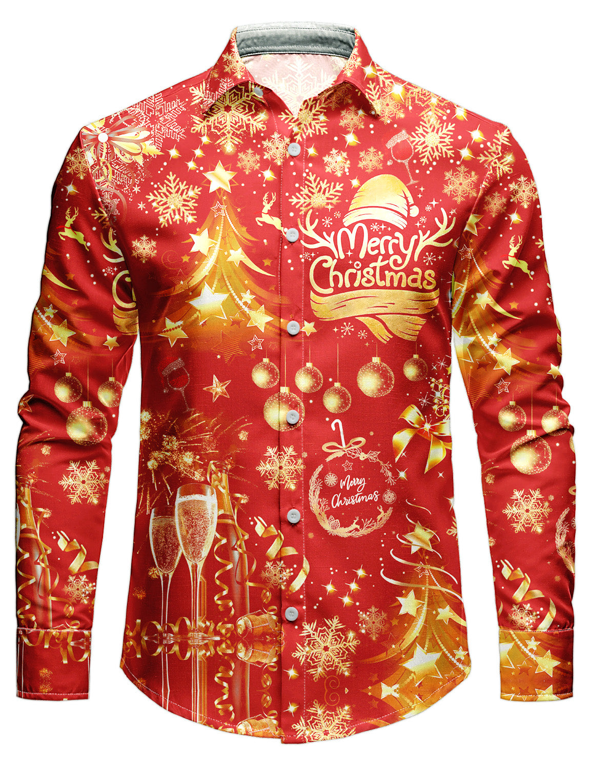 Chemise à manches longues pour homme avec imprimé champagne et joyeux Noël doré