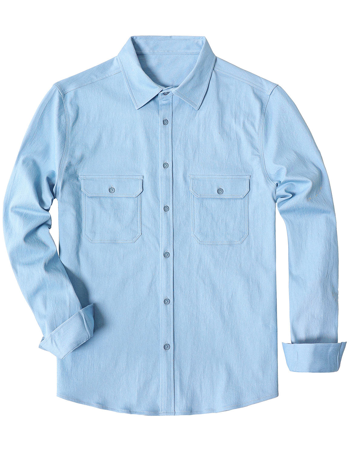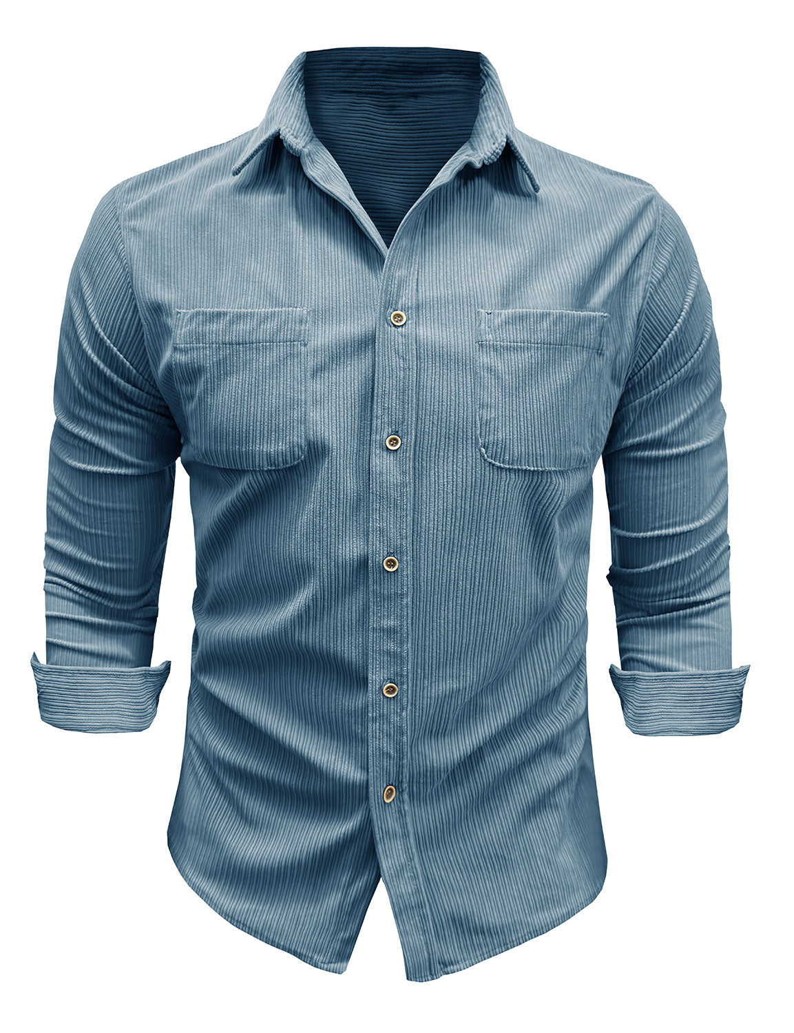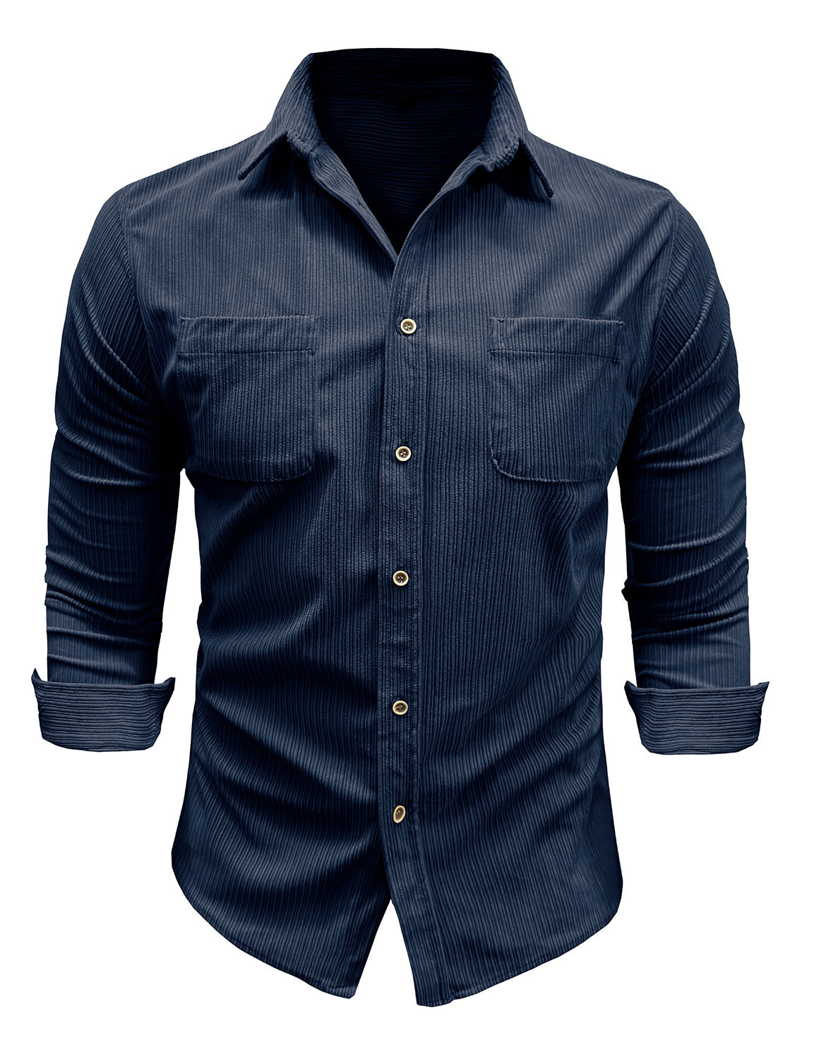 Chemise décontractée respirante à manches longues et rayures bleues pour homme