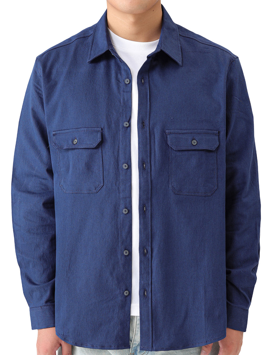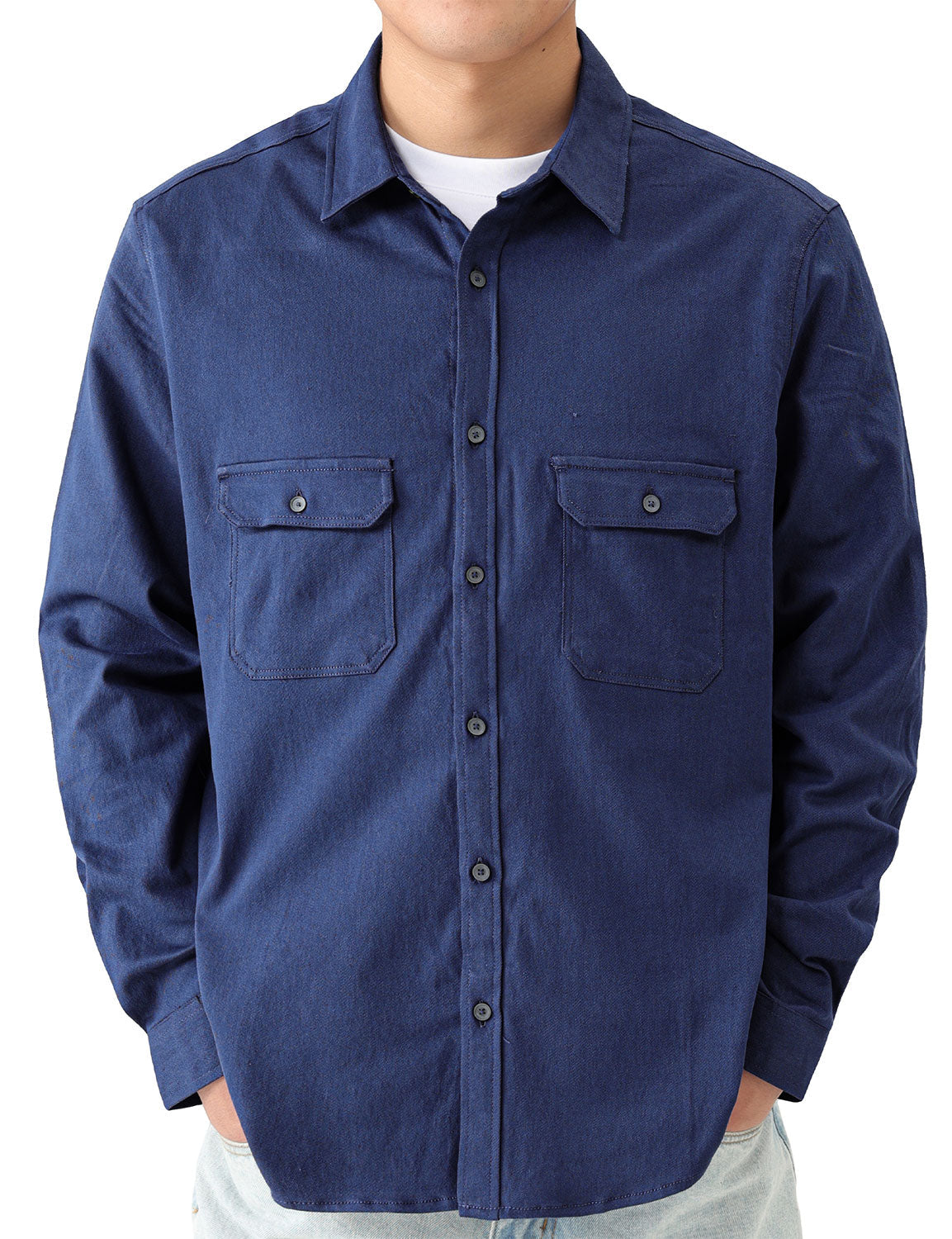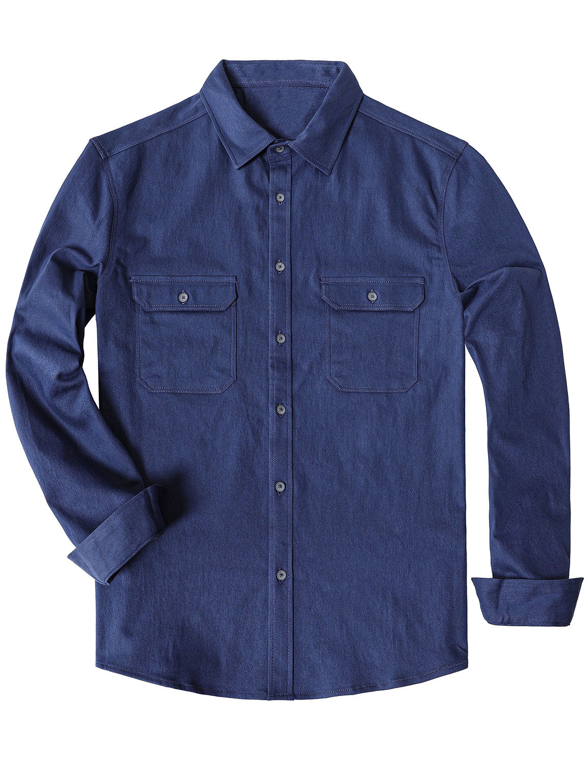 Chemise décontractée respirante à manches longues et rayures bleues pour homme