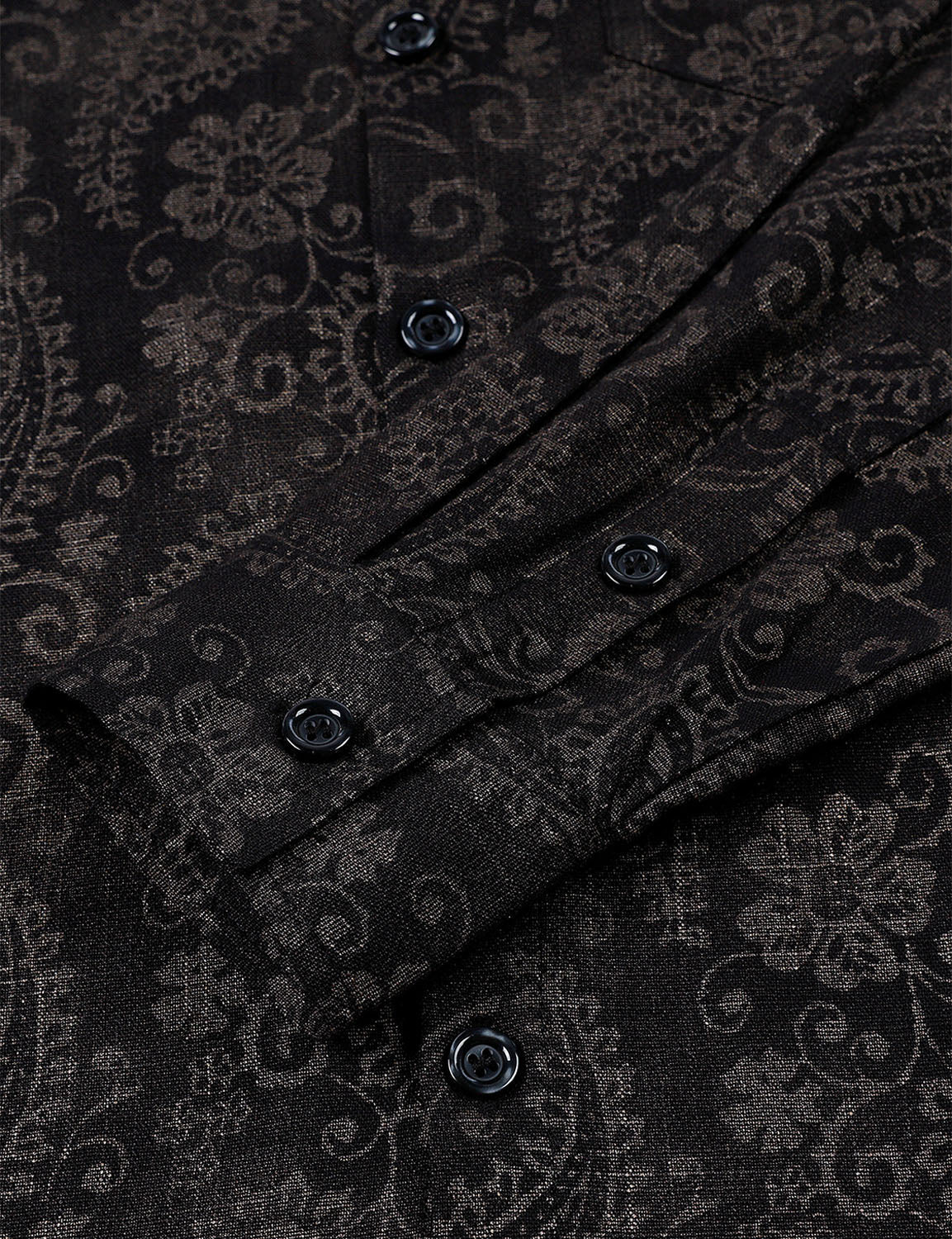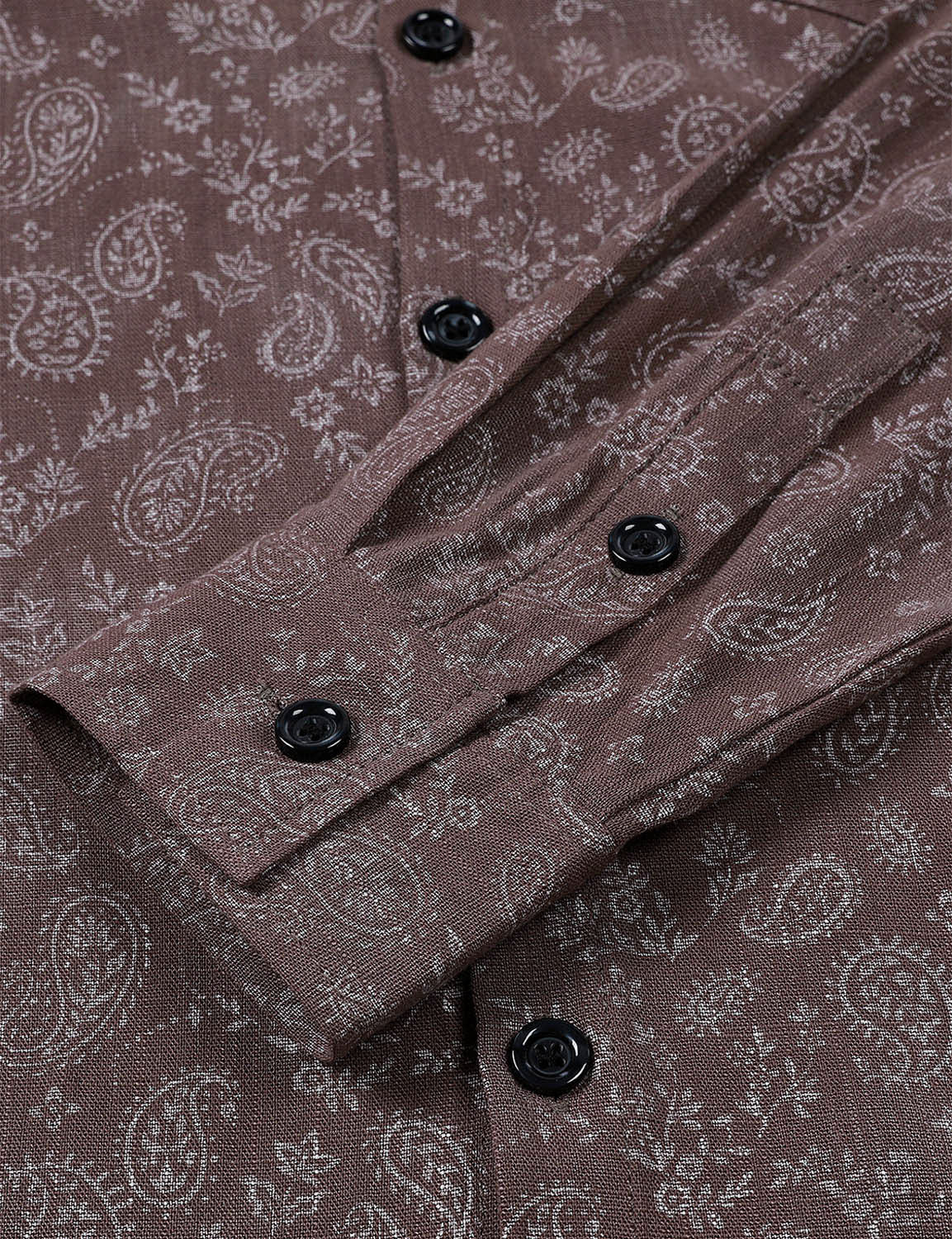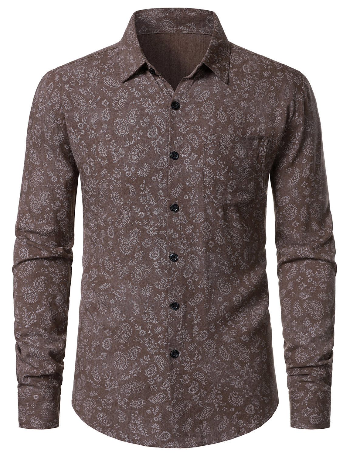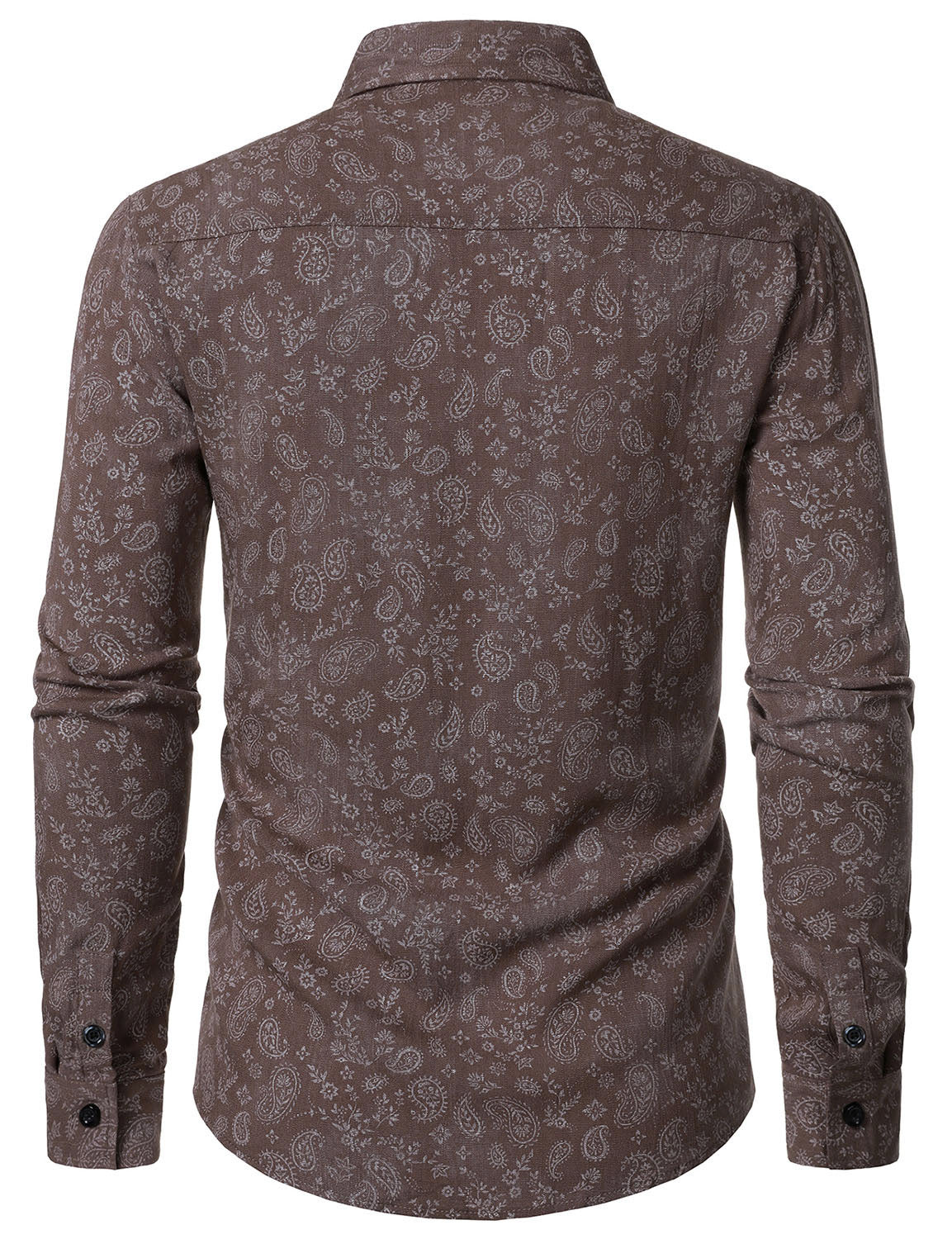 Chemise à manches longues marron à motif cachemire et fleurs pour homme