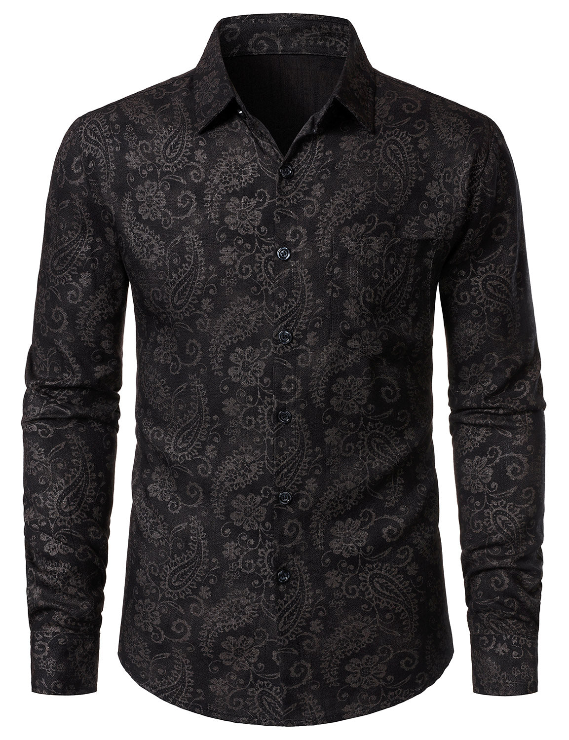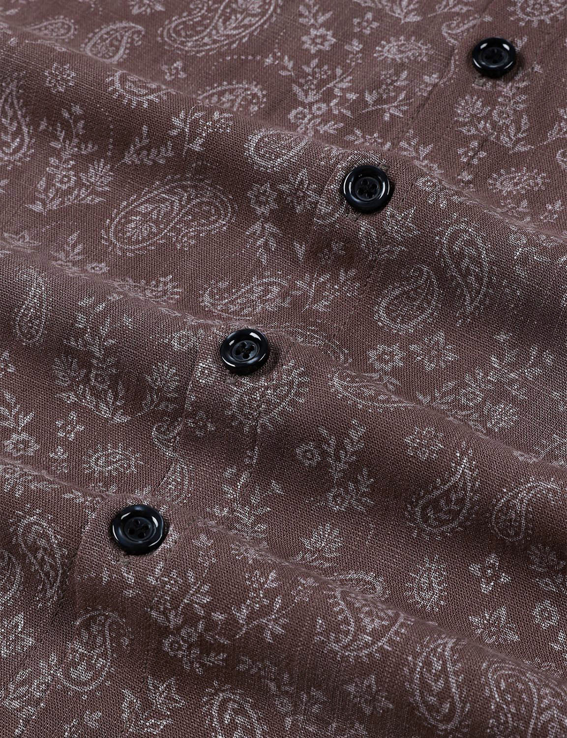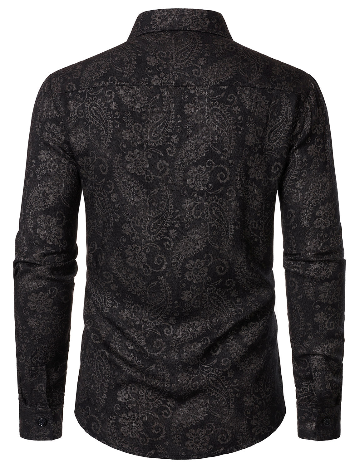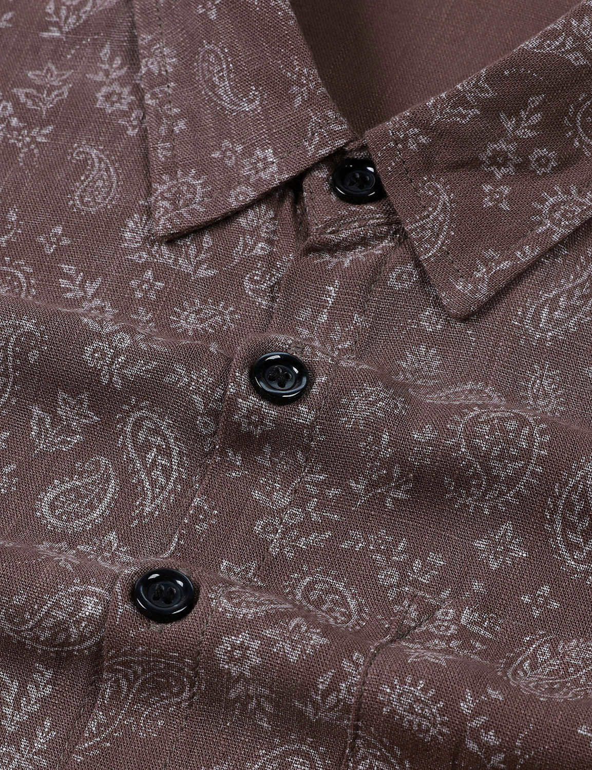 Chemise à manches longues marron à motif cachemire et fleurs pour homme