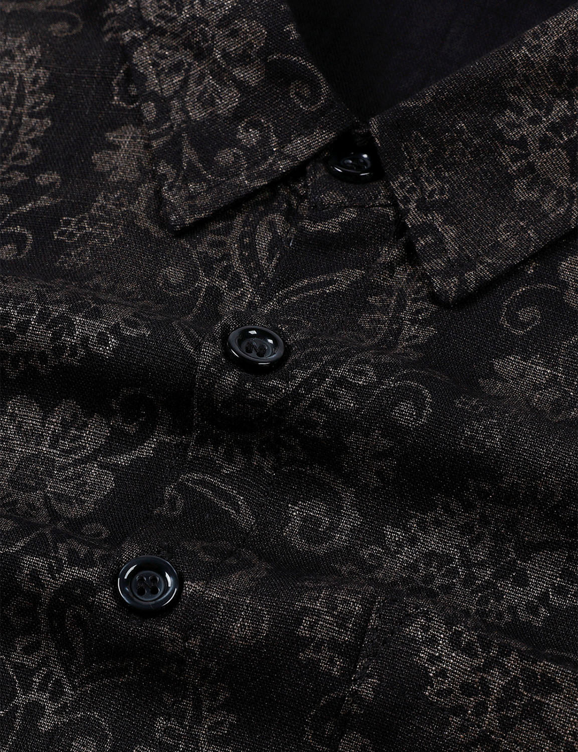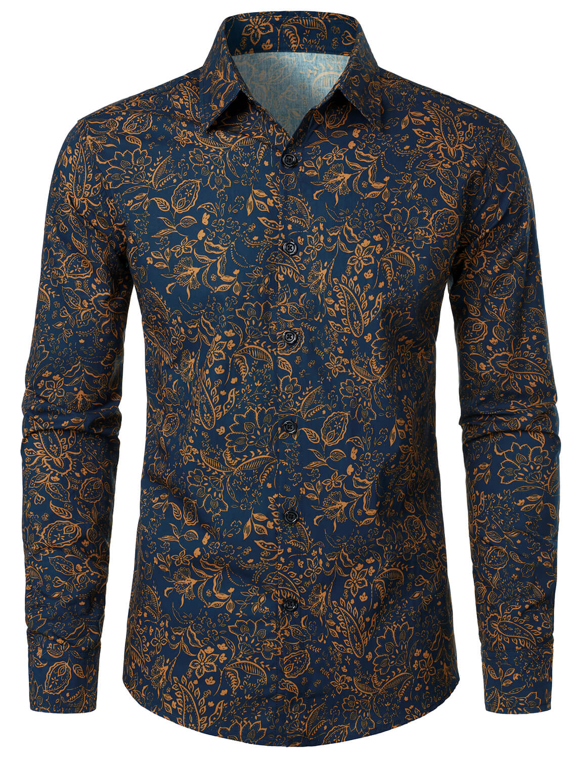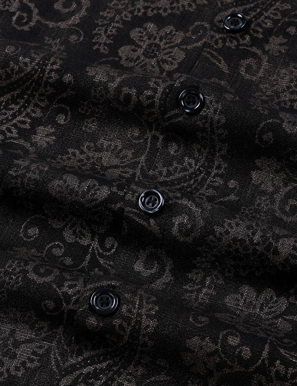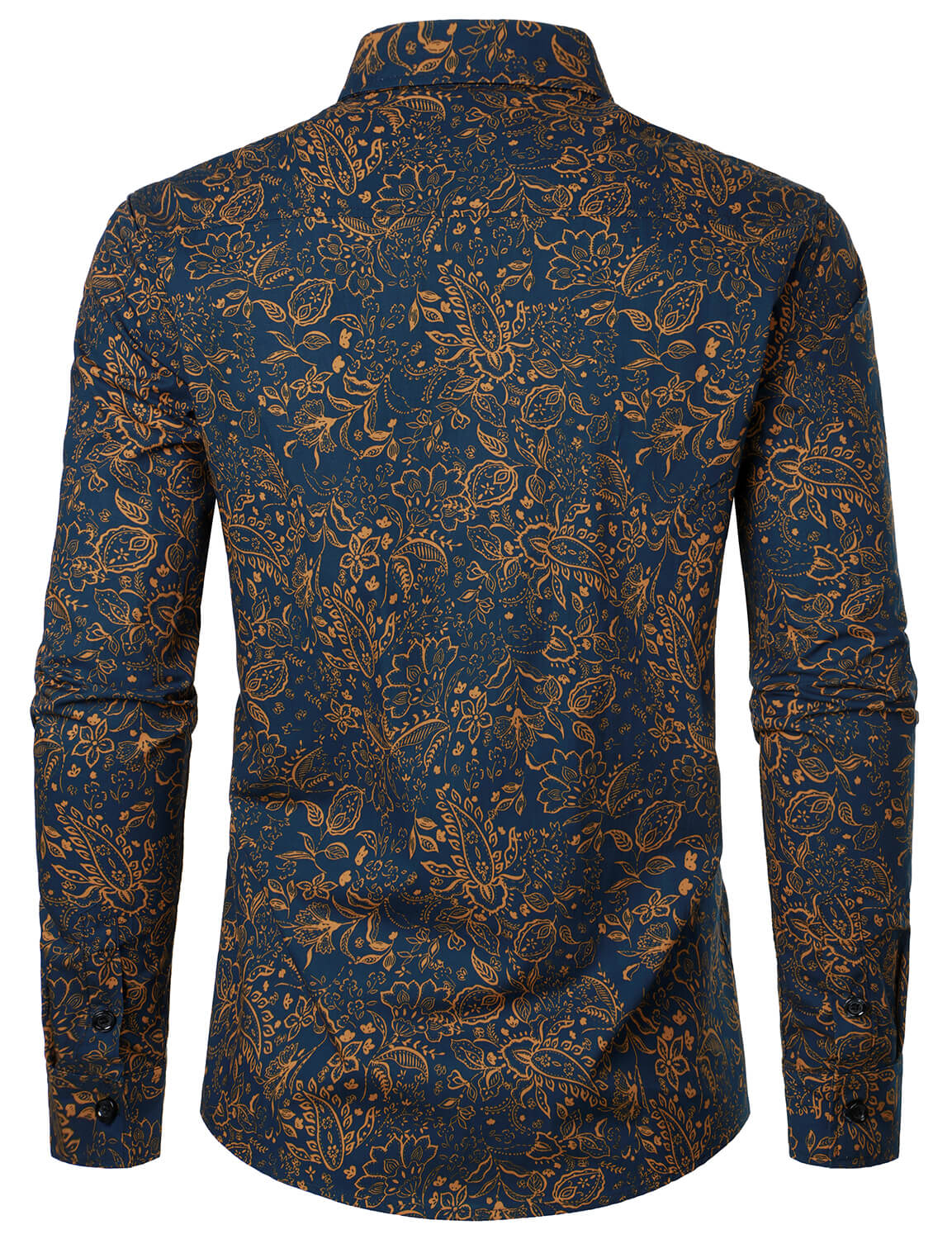 Chemise à manches longues marron à motif cachemire et fleurs pour homme