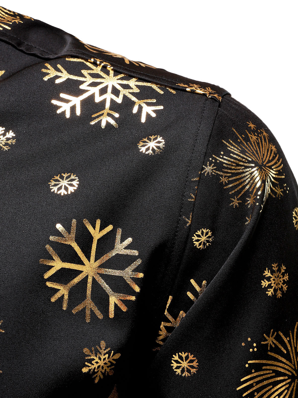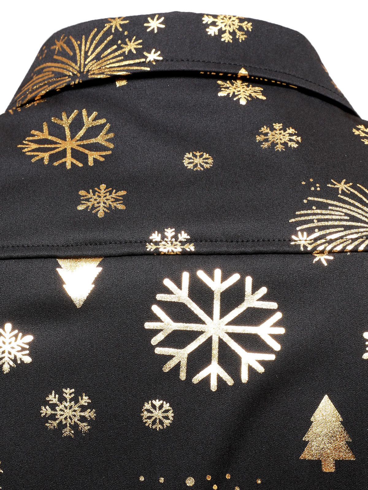 Chemise noire à manches longues pour homme, imprimée de flocons de neige, sapin et feux d'artifice, style Noël doré brillant
