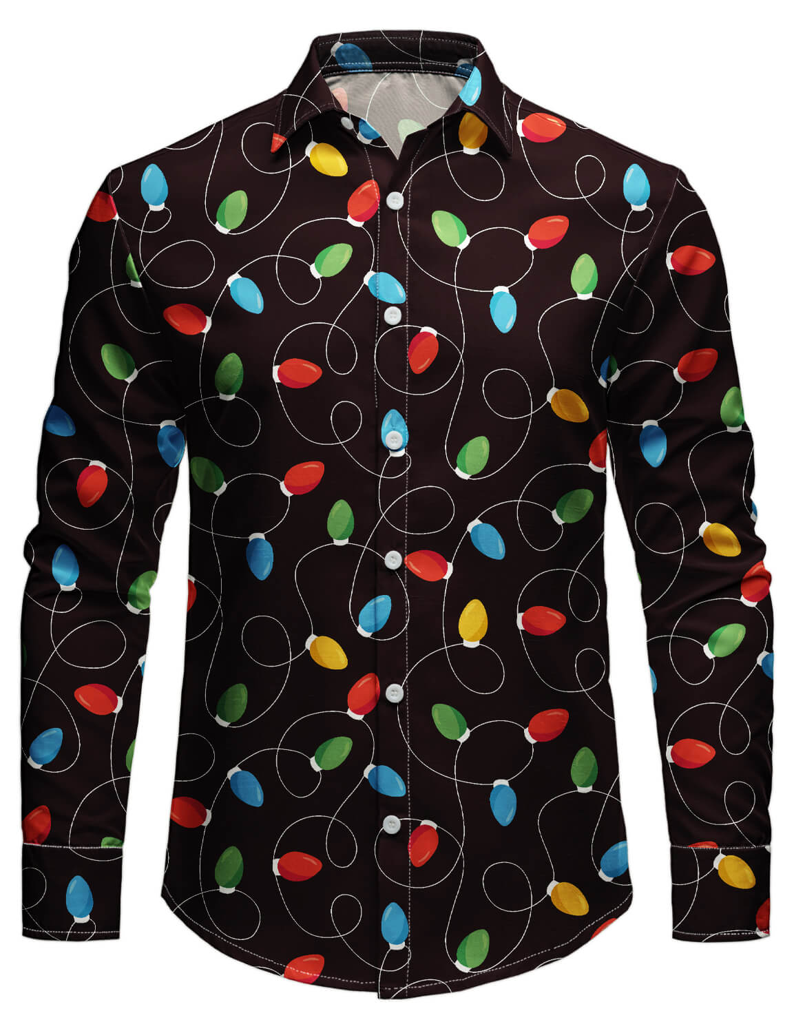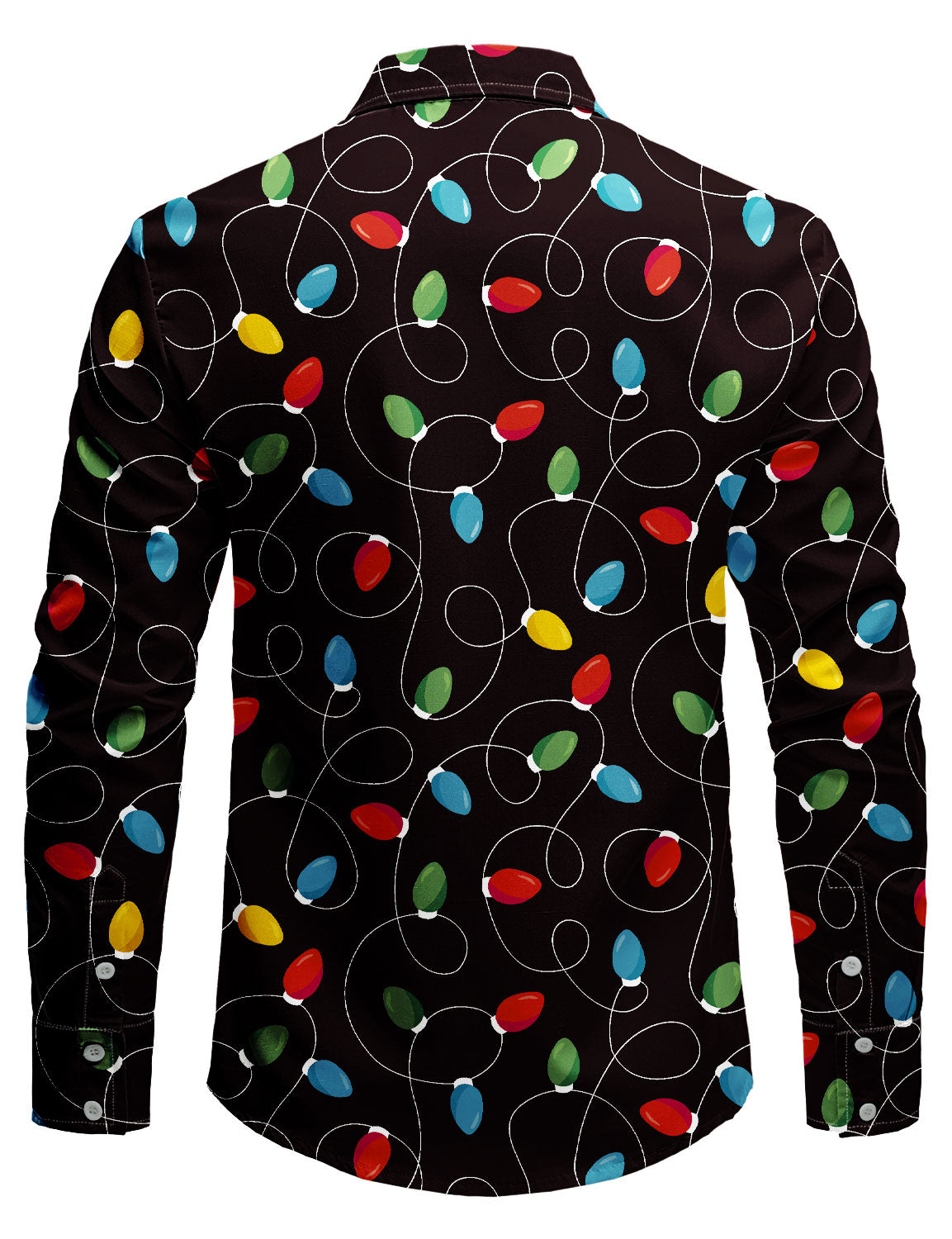Chemise de Noël noire à manches longues pour homme avec guirlandes lumineuses de Noël