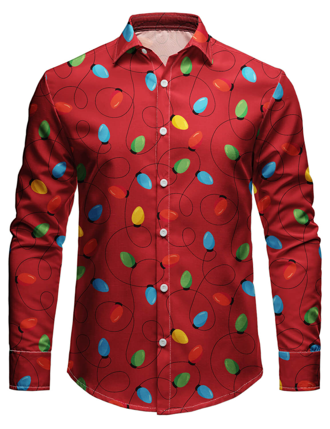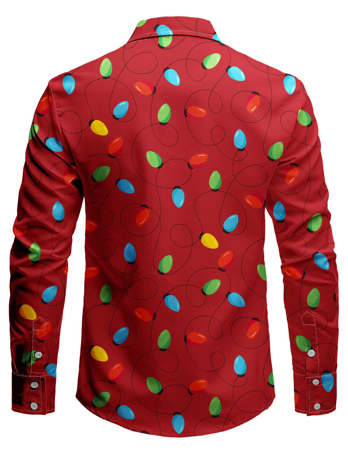Chemise de Noël rouge à manches longues pour homme avec guirlandes lumineuses de Noël