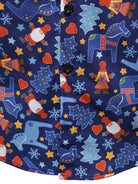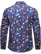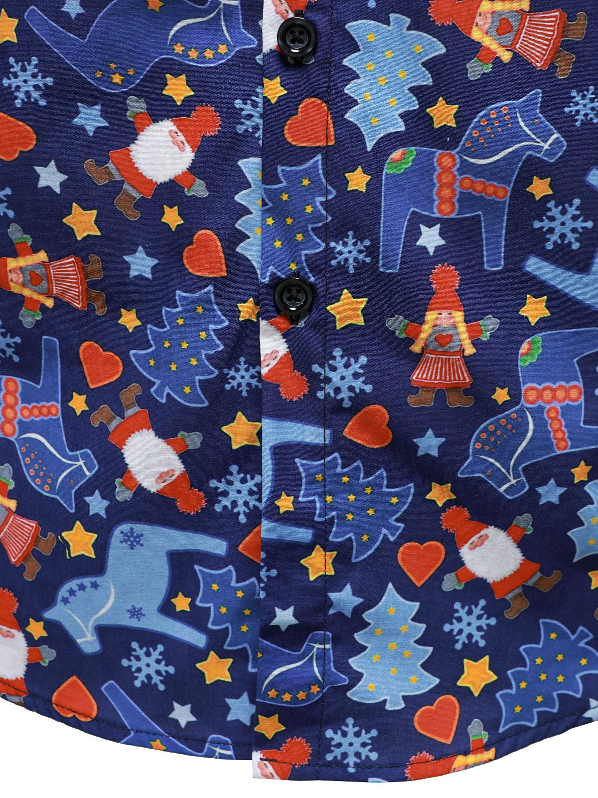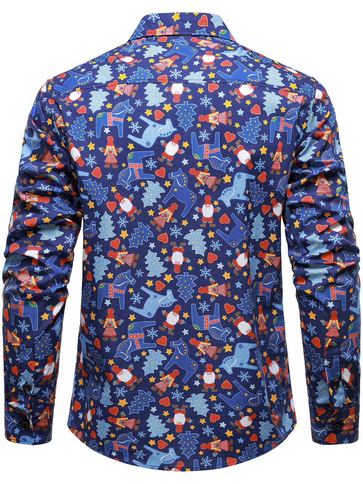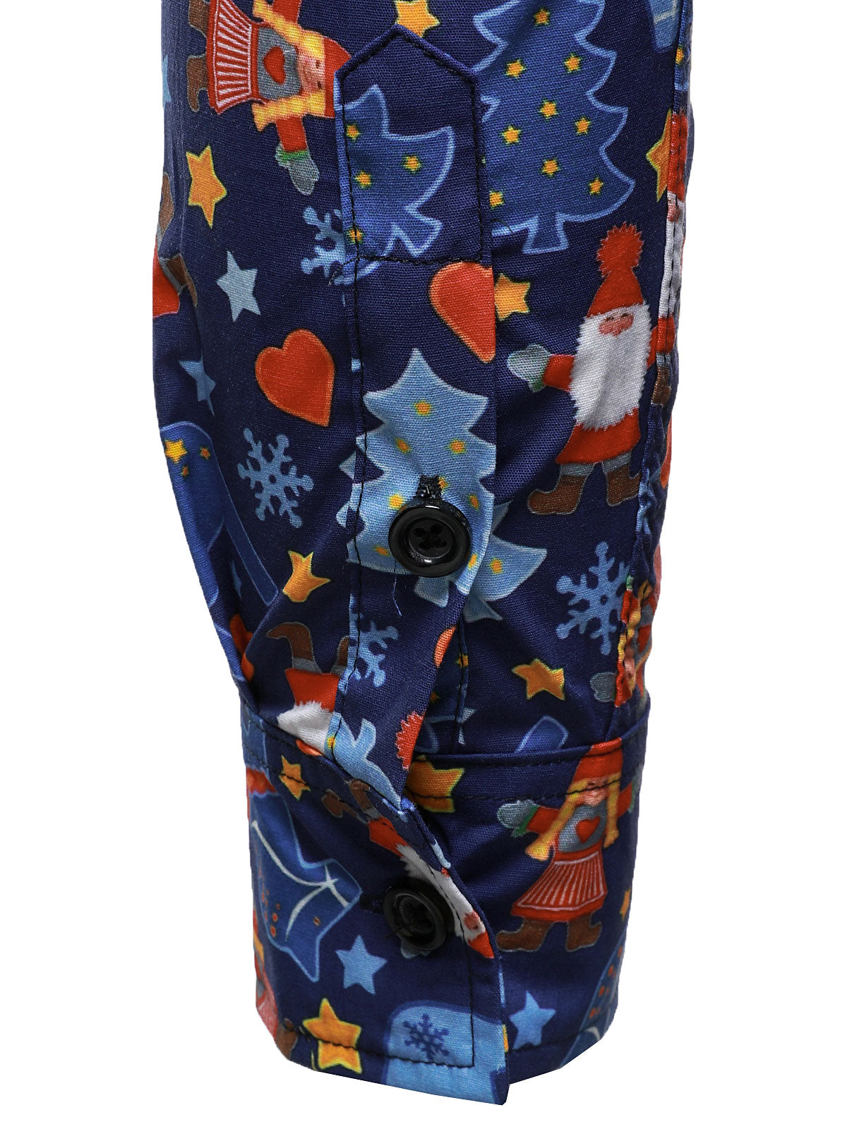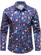 Chemise bleue à manches longues pour homme, imprimé festif et humoristique sur le thème de Noël