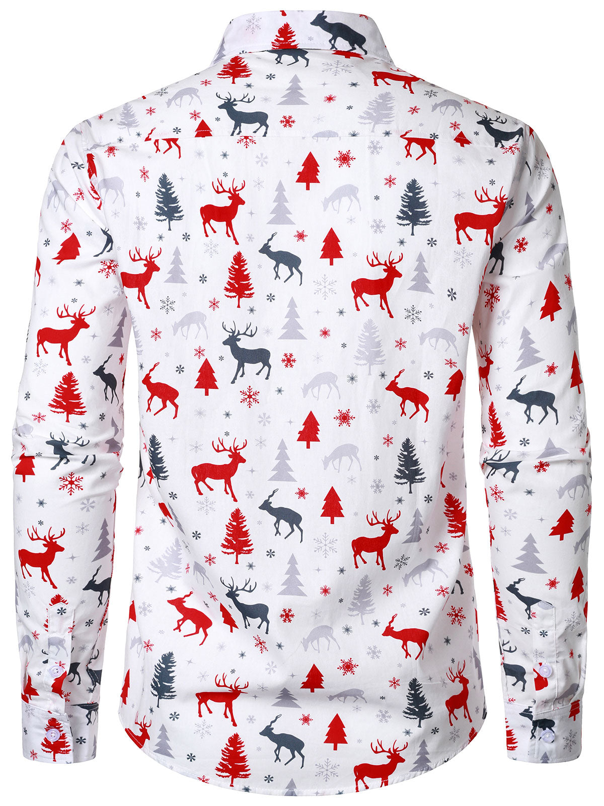 Chemise de Noël en coton pour homme à manches longues motif renne festif