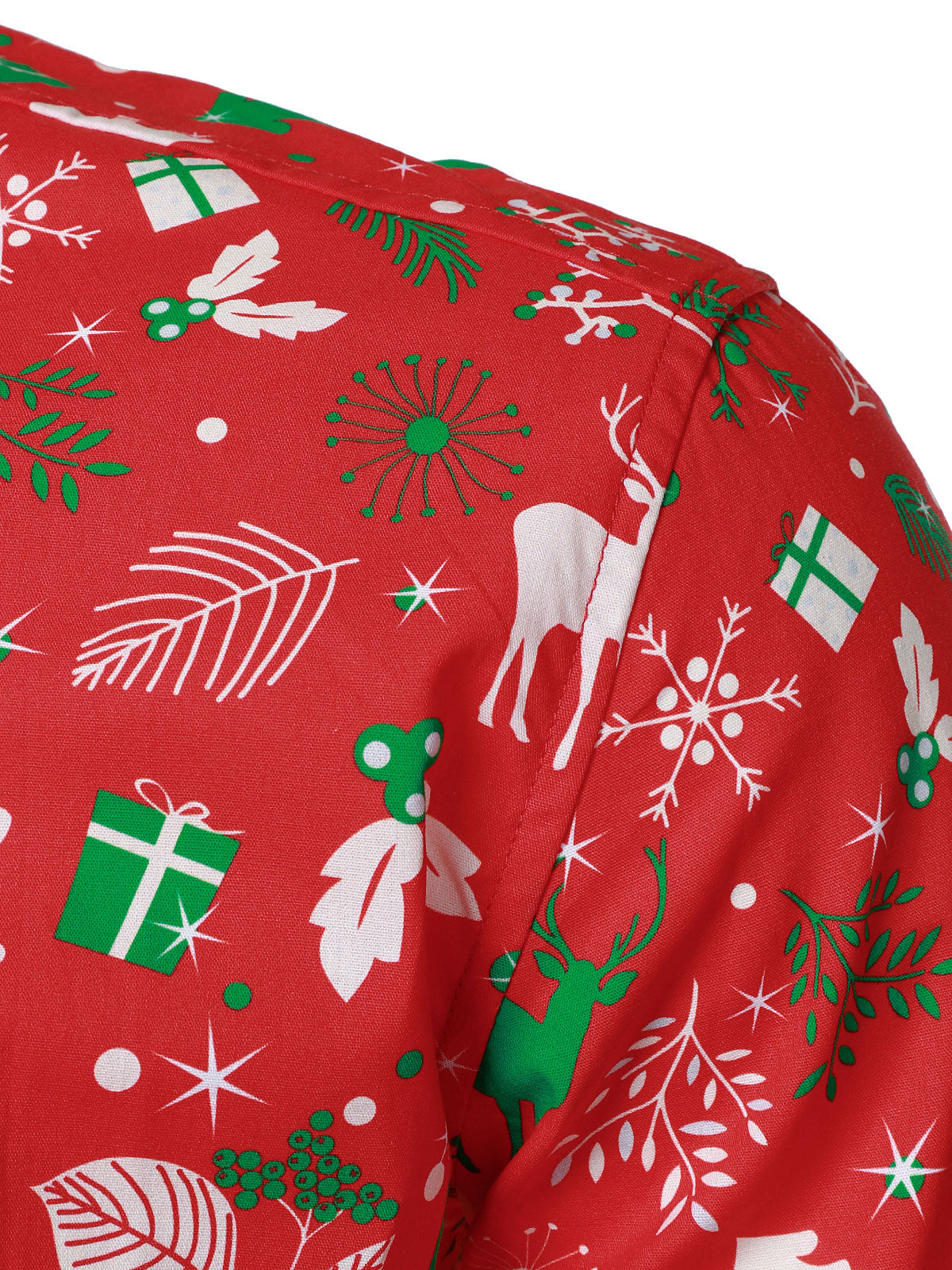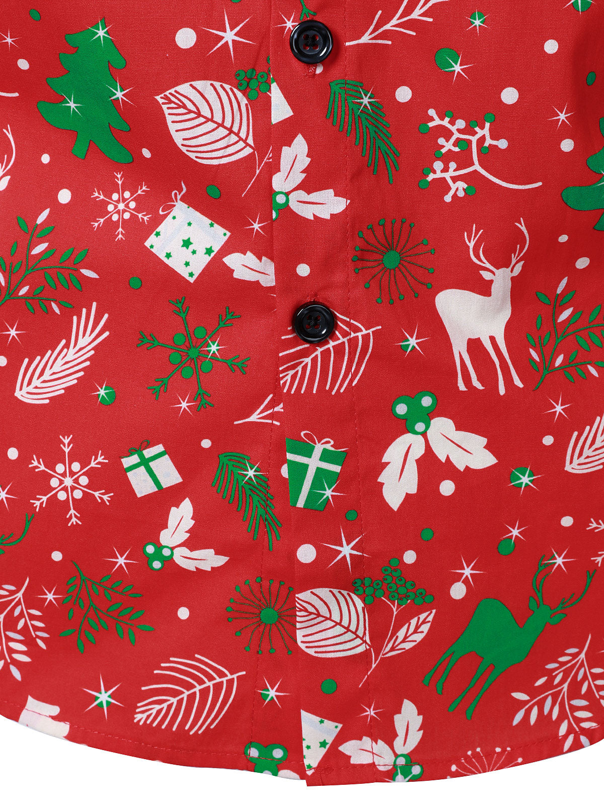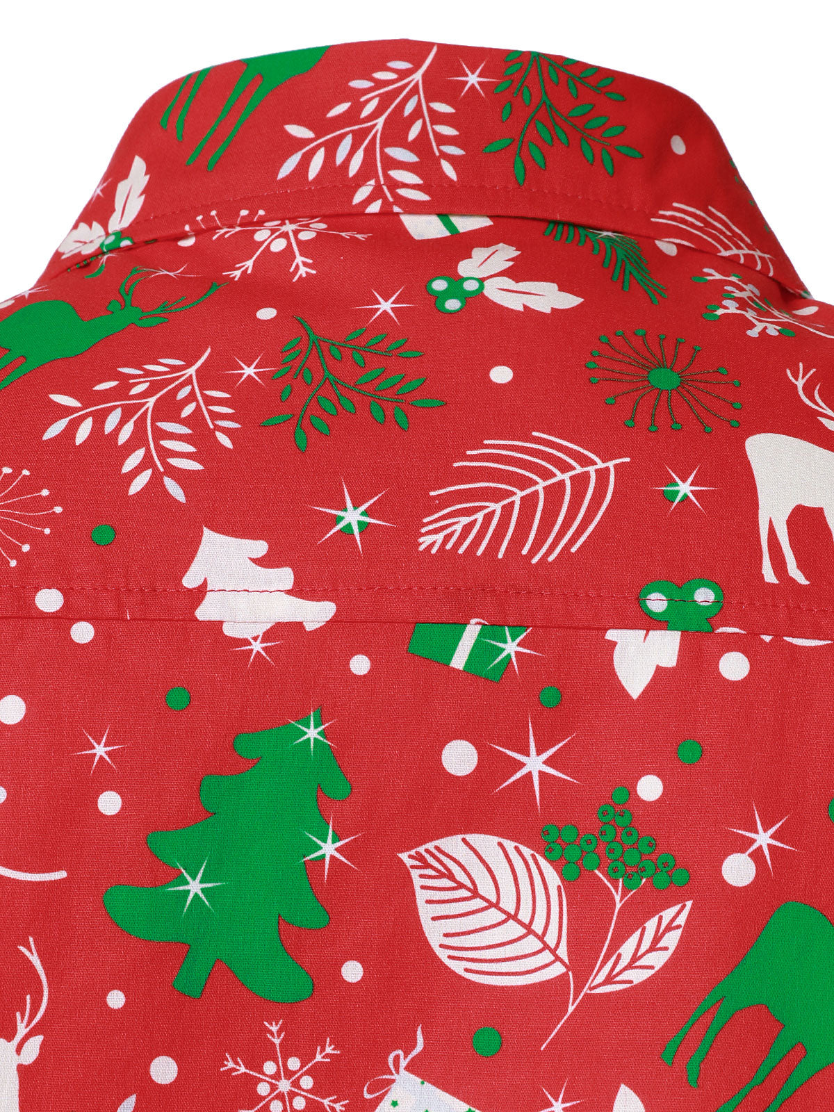 Haut à thème de Noël pour homme rouge drôle tenue vacances chemise à manches longues boutonnée
