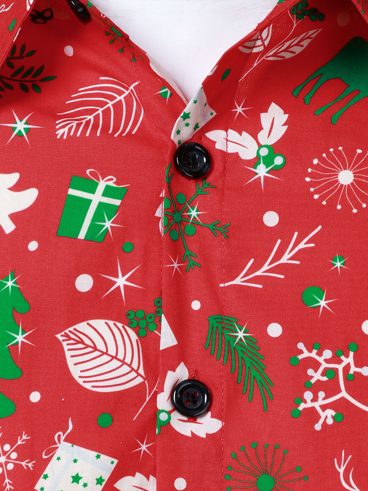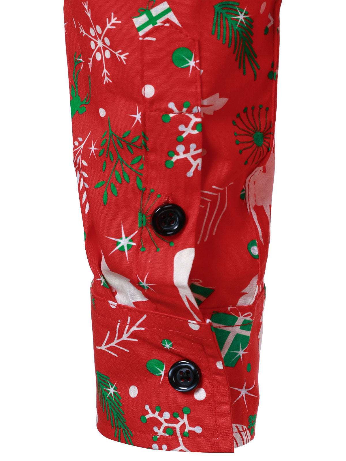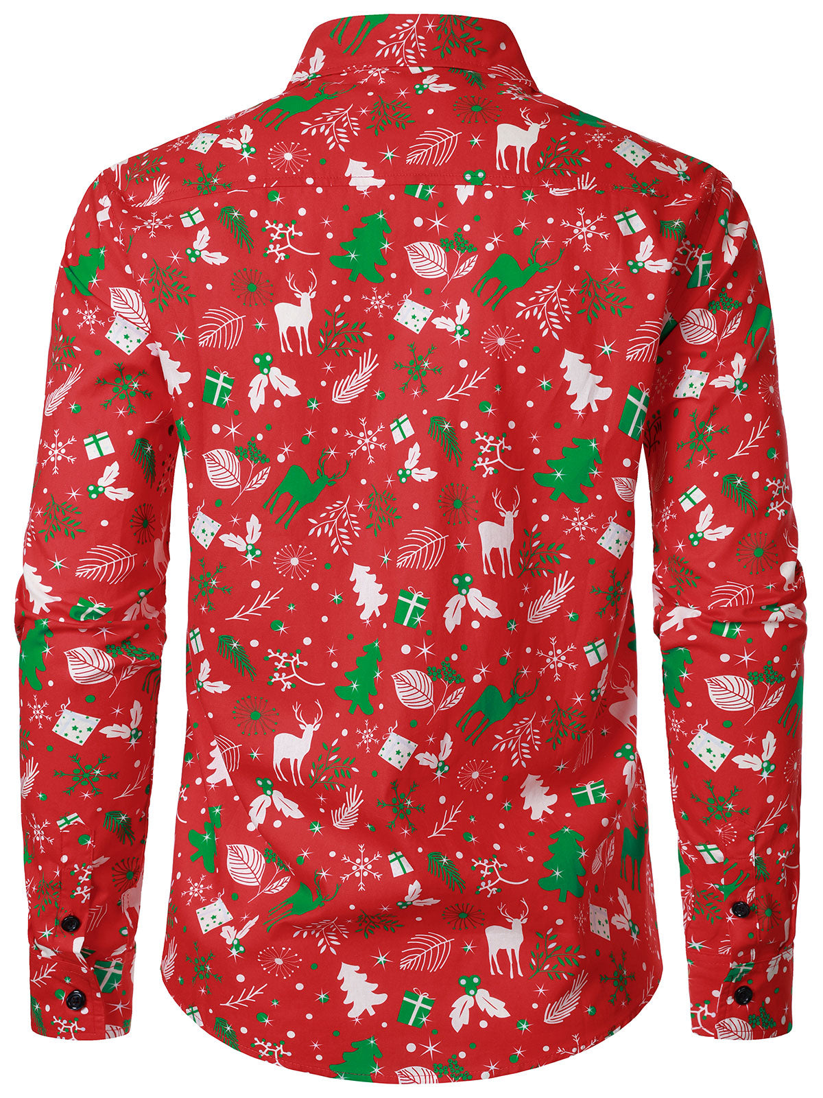 Haut à thème de Noël pour homme rouge drôle tenue vacances chemise à manches longues boutonnée