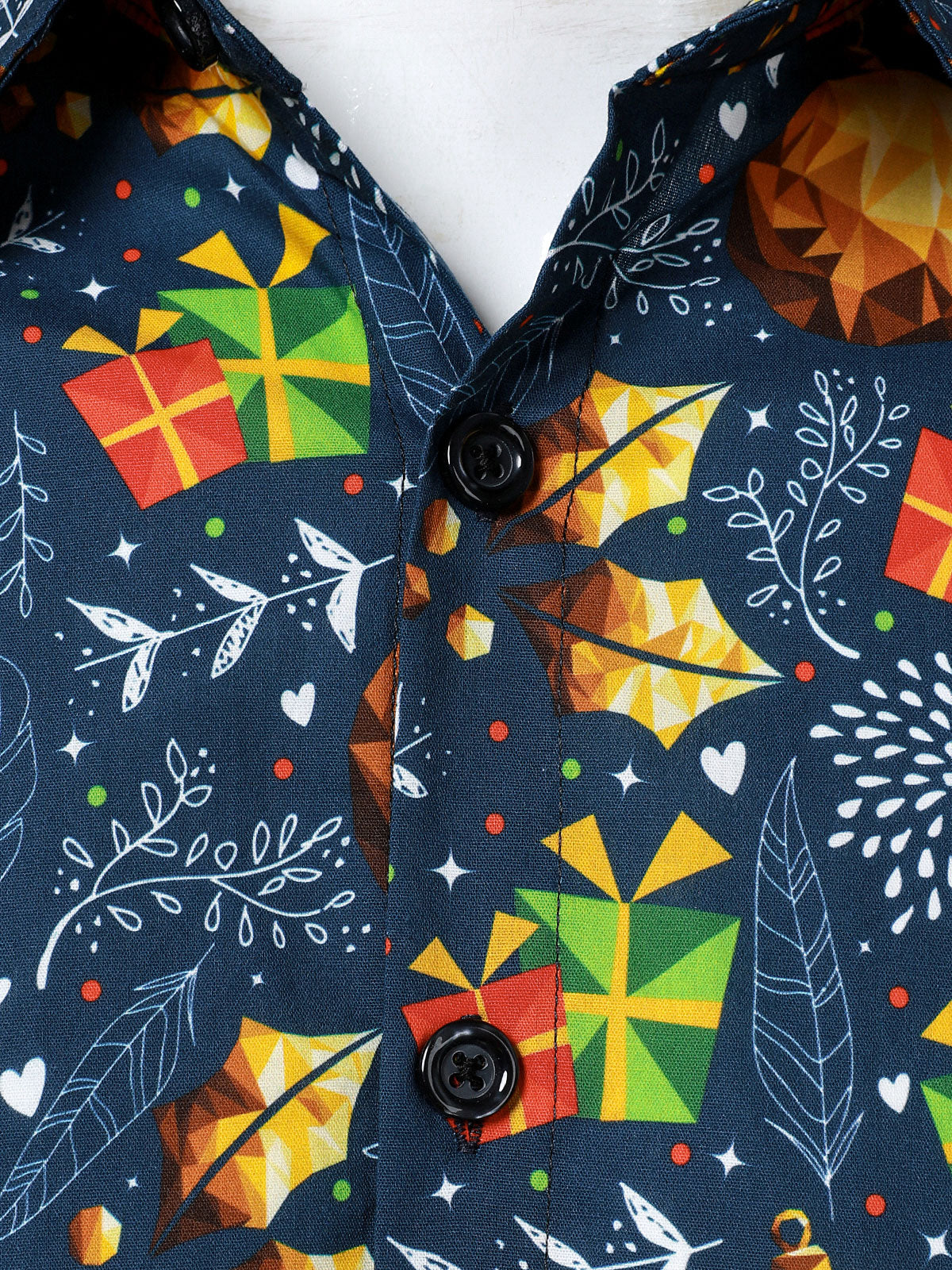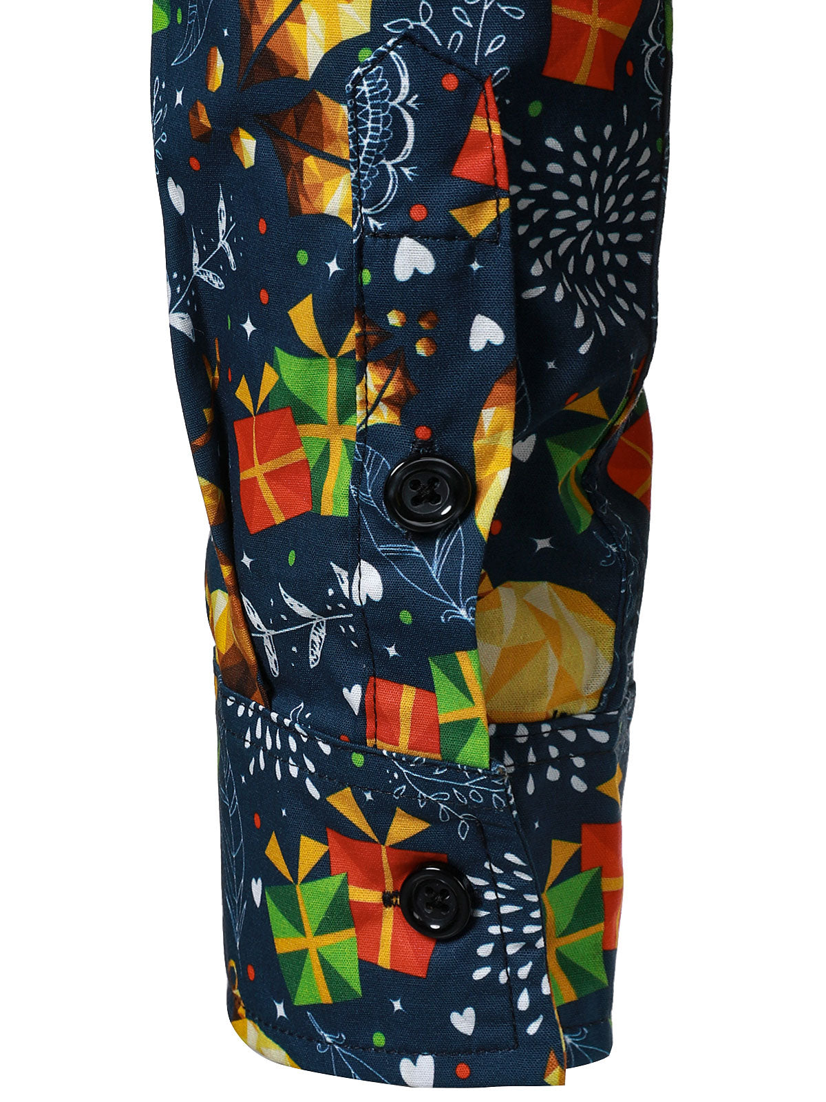 Chemise bleue à manches longues boutonnée pour hommes, feux d'artifice, fête du nouvel an