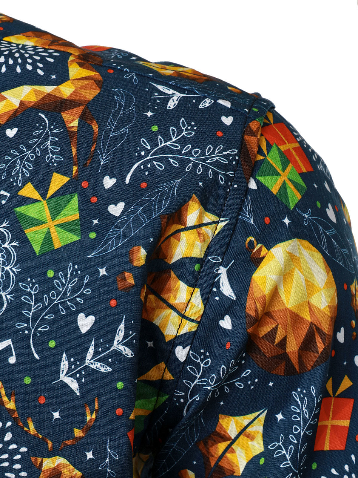 Chemise de Noël bleue pour homme à manches longues imprimé festif avec renne