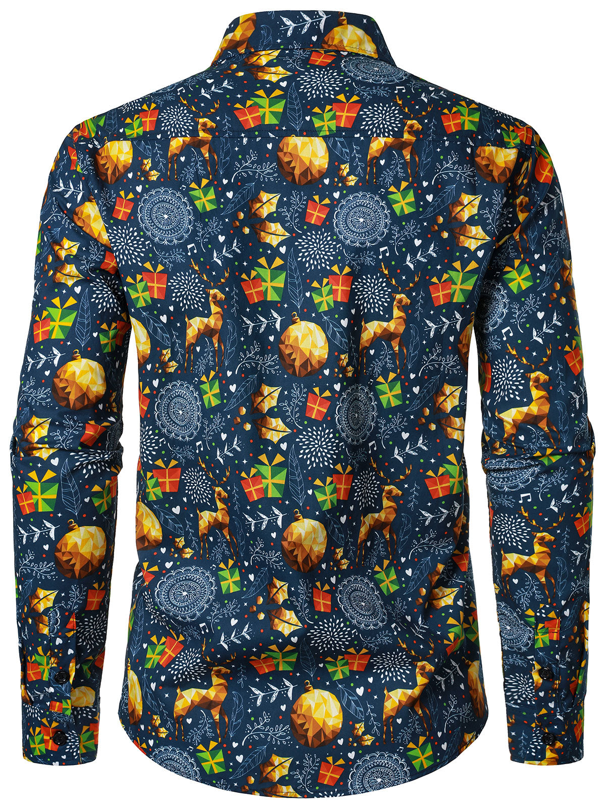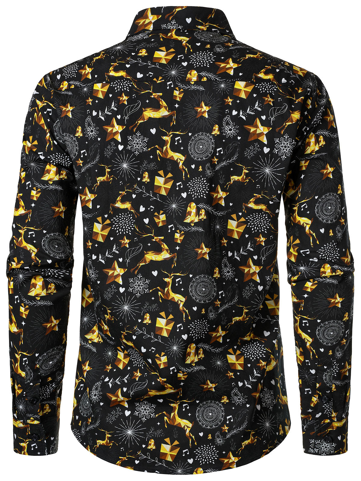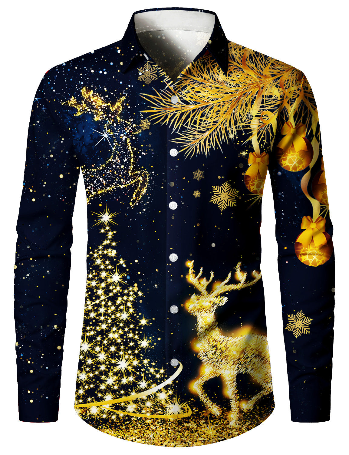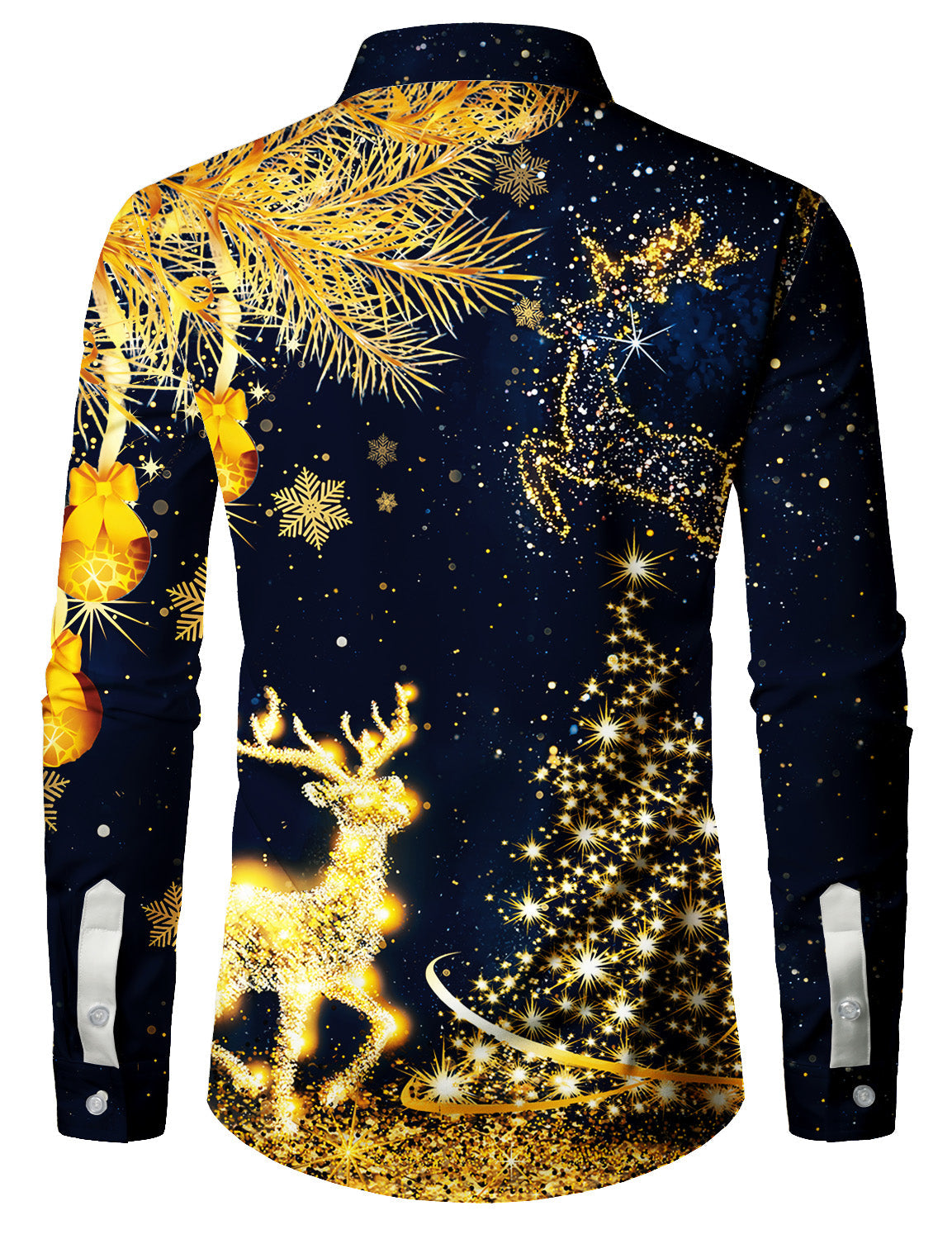 Chemise à manches longues pour homme avec imprimé renne et sapin de Noël doré