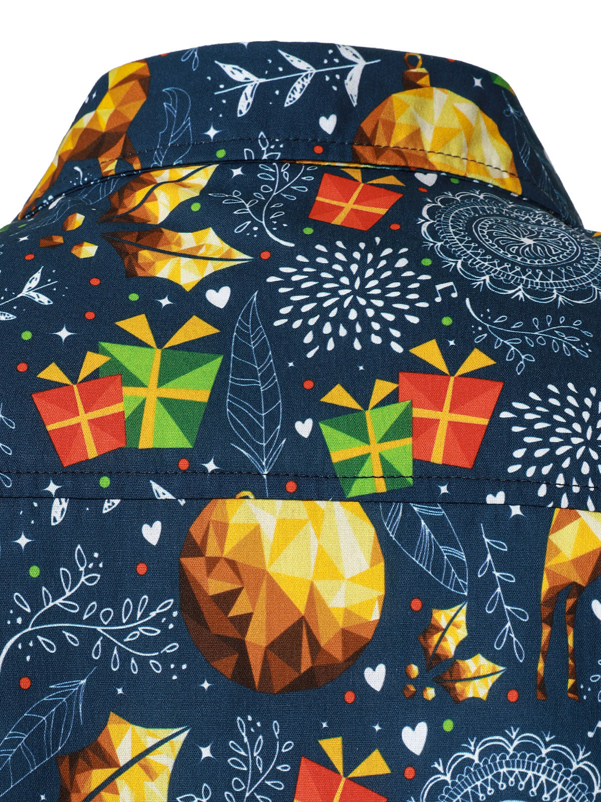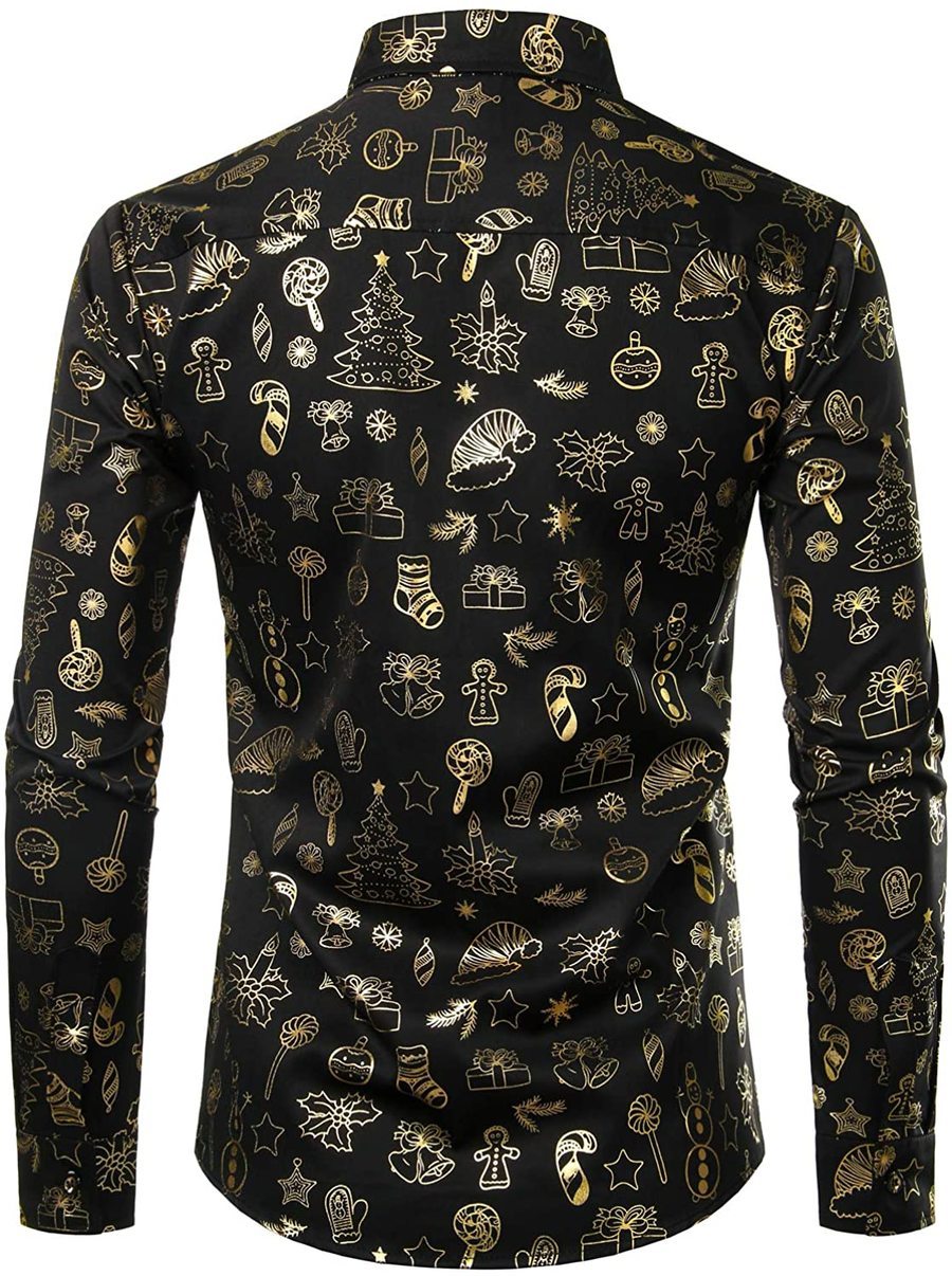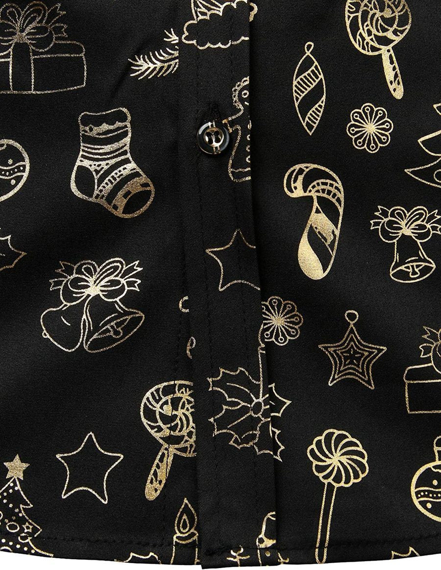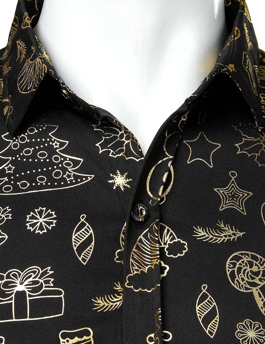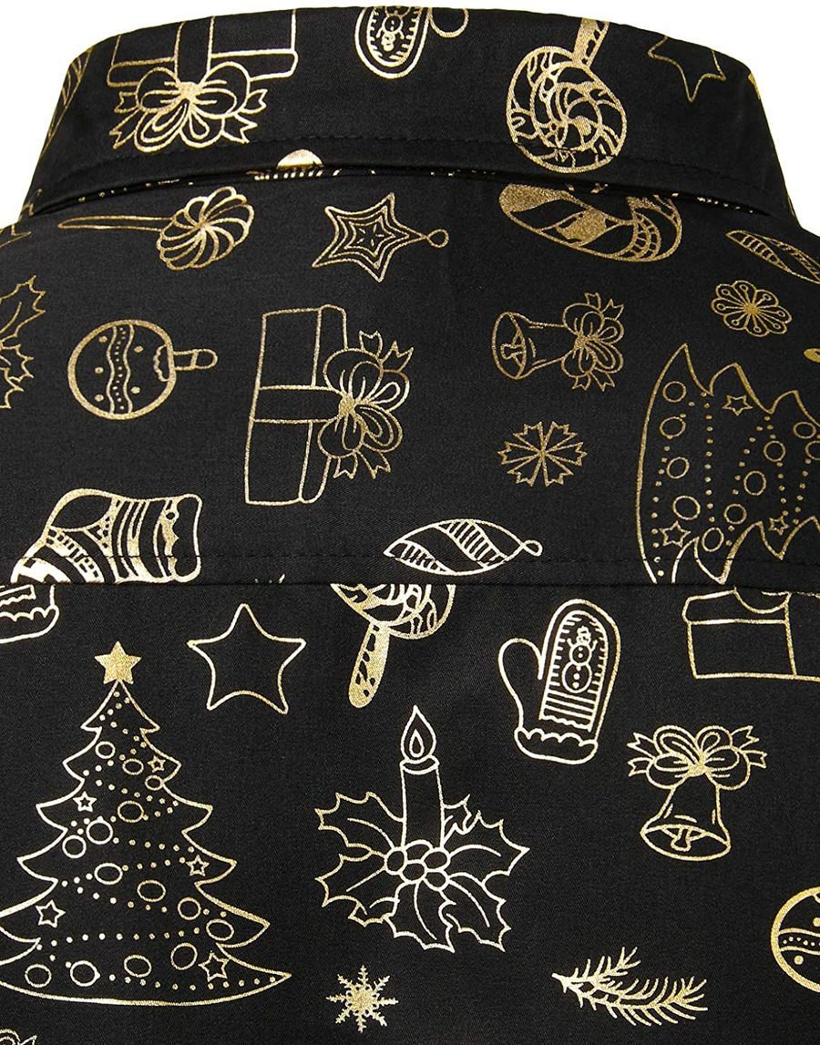 Chemise de Noël à manches longues pour homme avec imprimé joyeux Noël doré