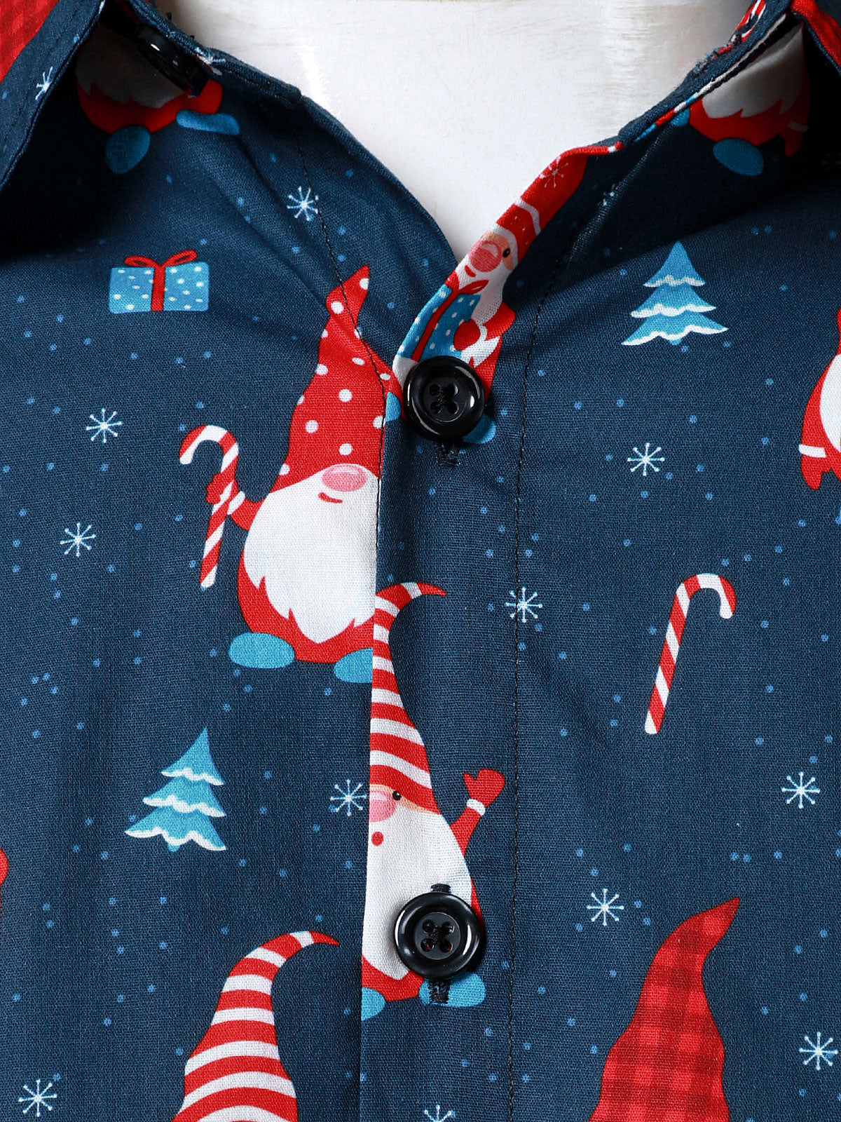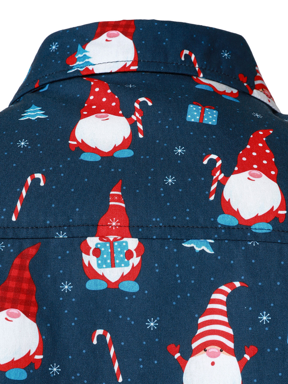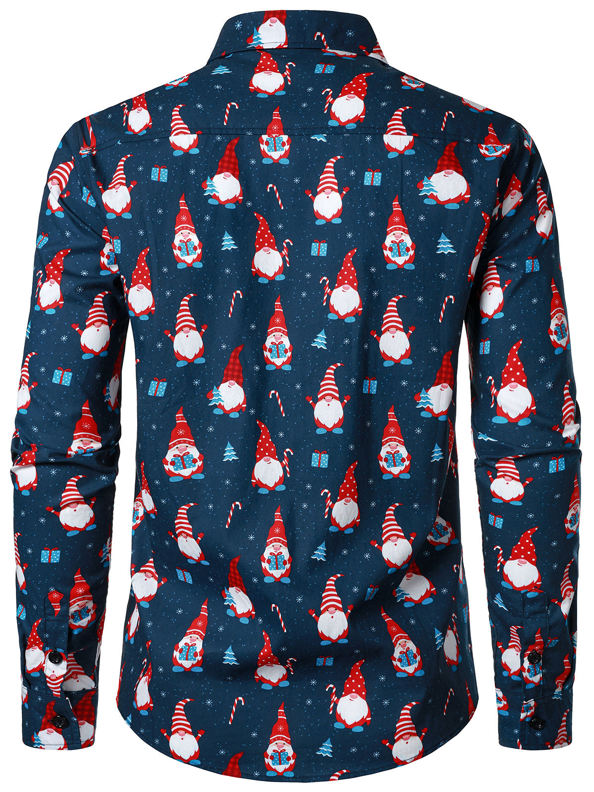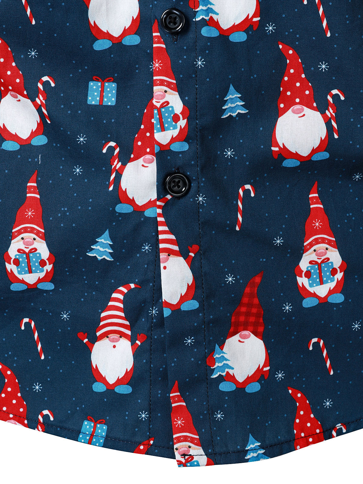 Chemise de Noël en coton pour homme à manches longues motif mignon de lutin gnome