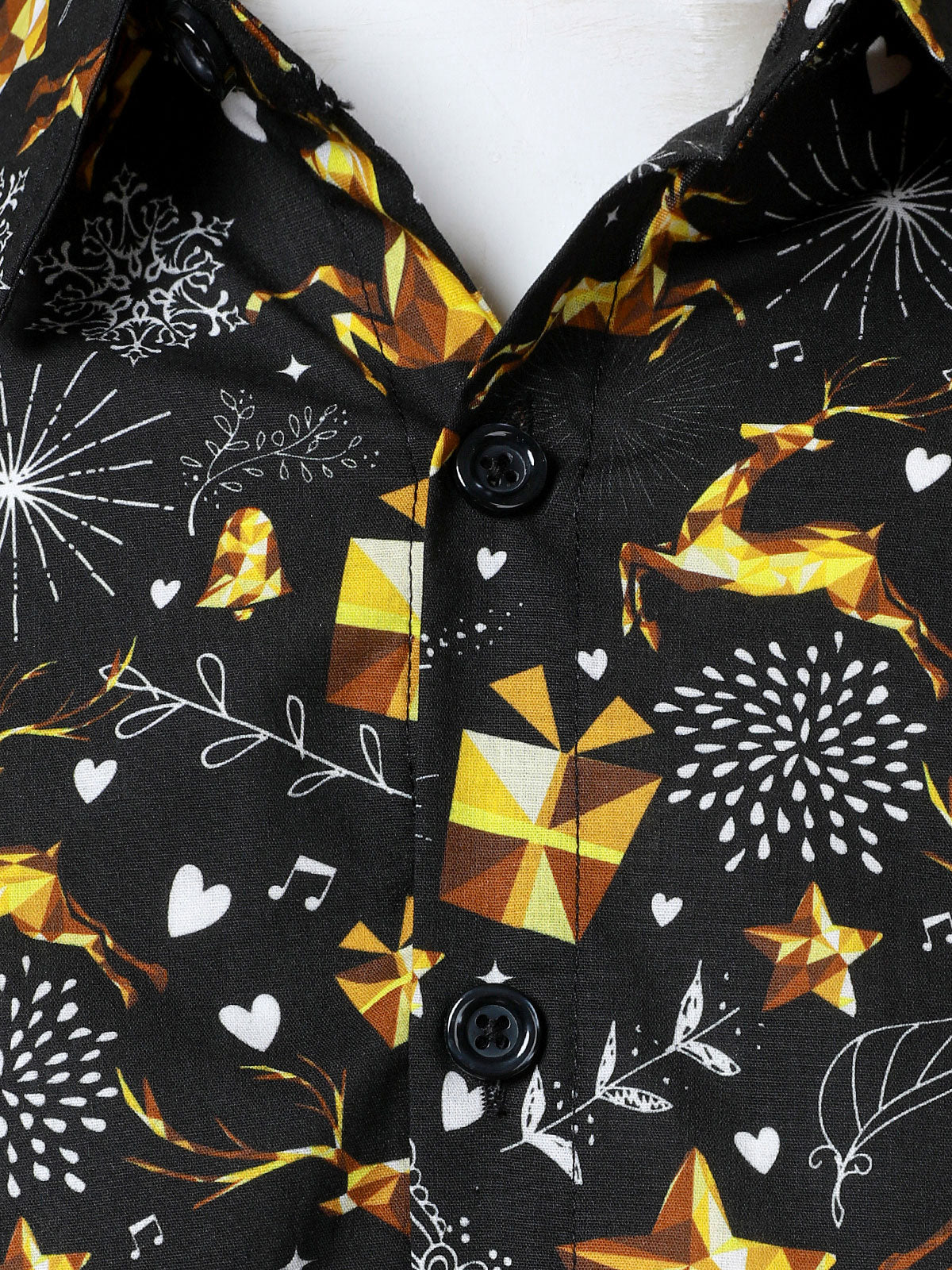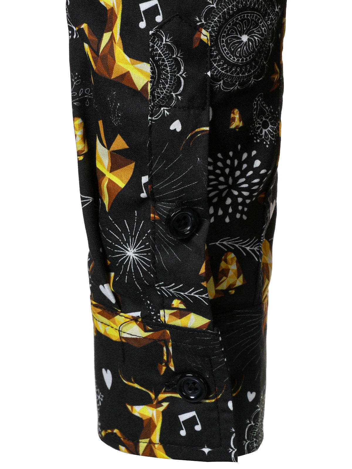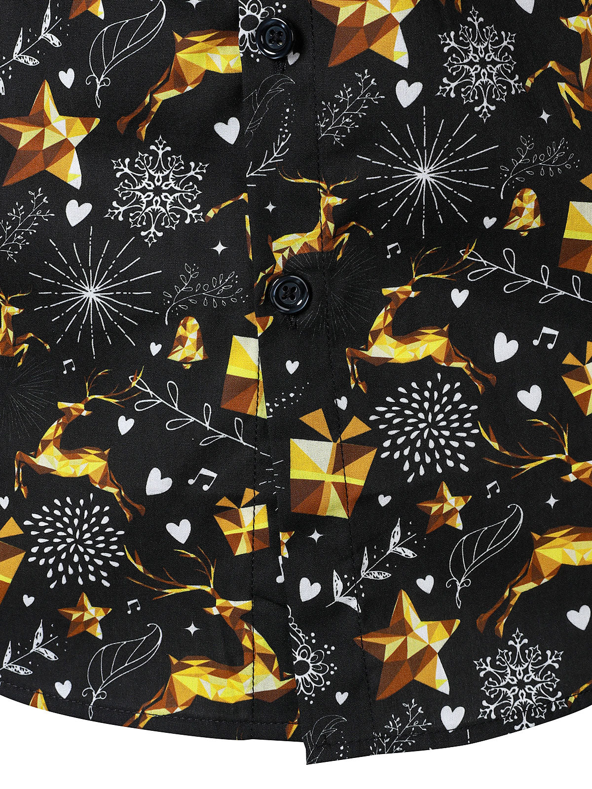 Chemise de Noël en coton pour homme à manches longues motif renne doré
