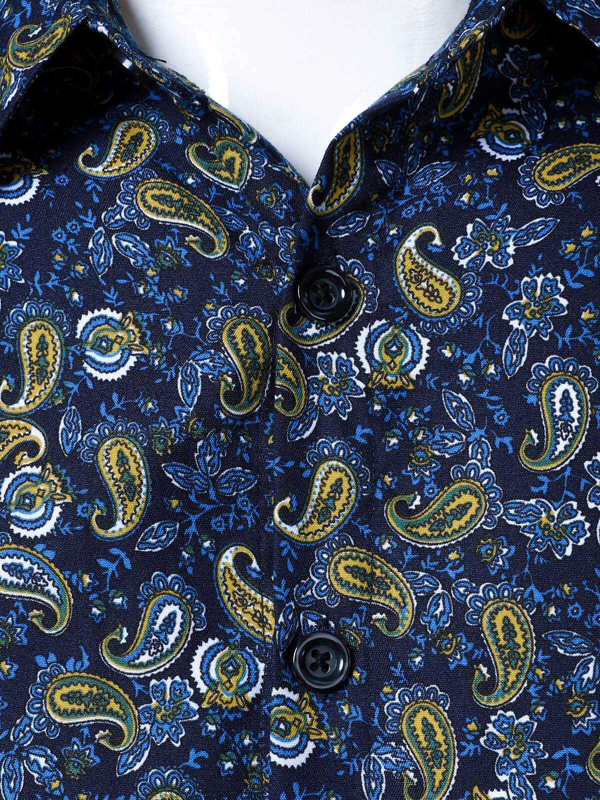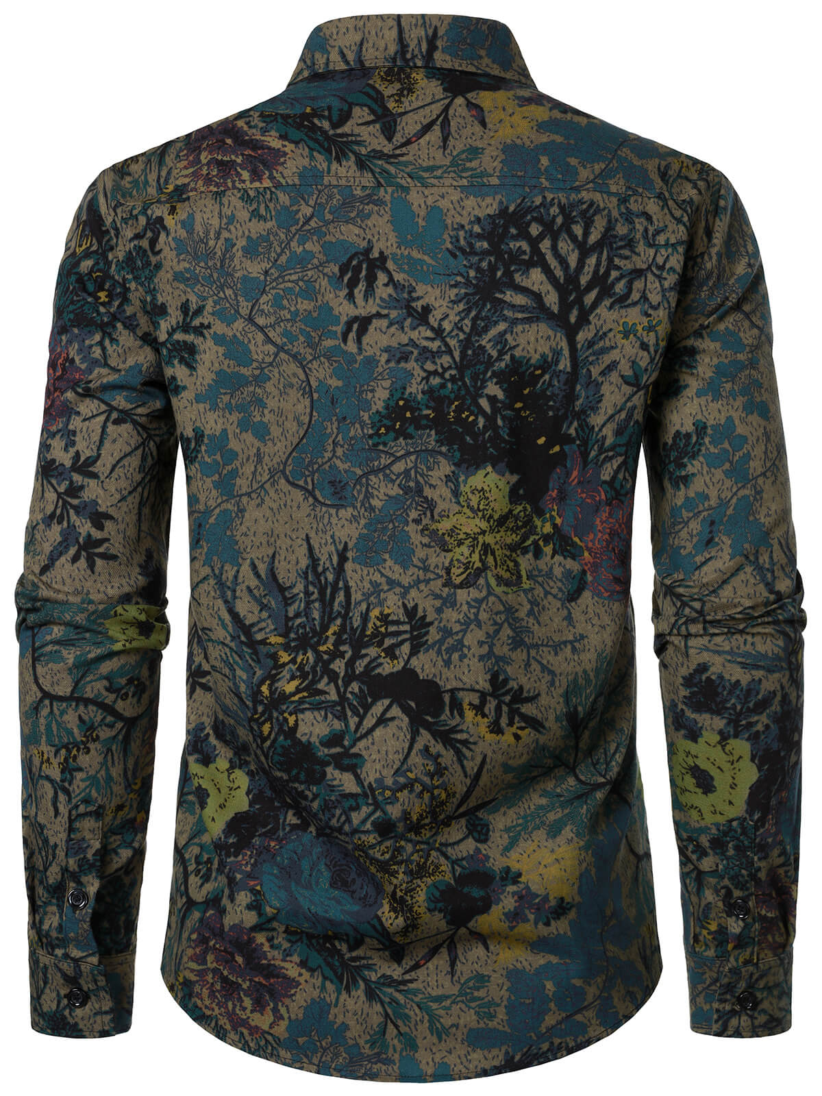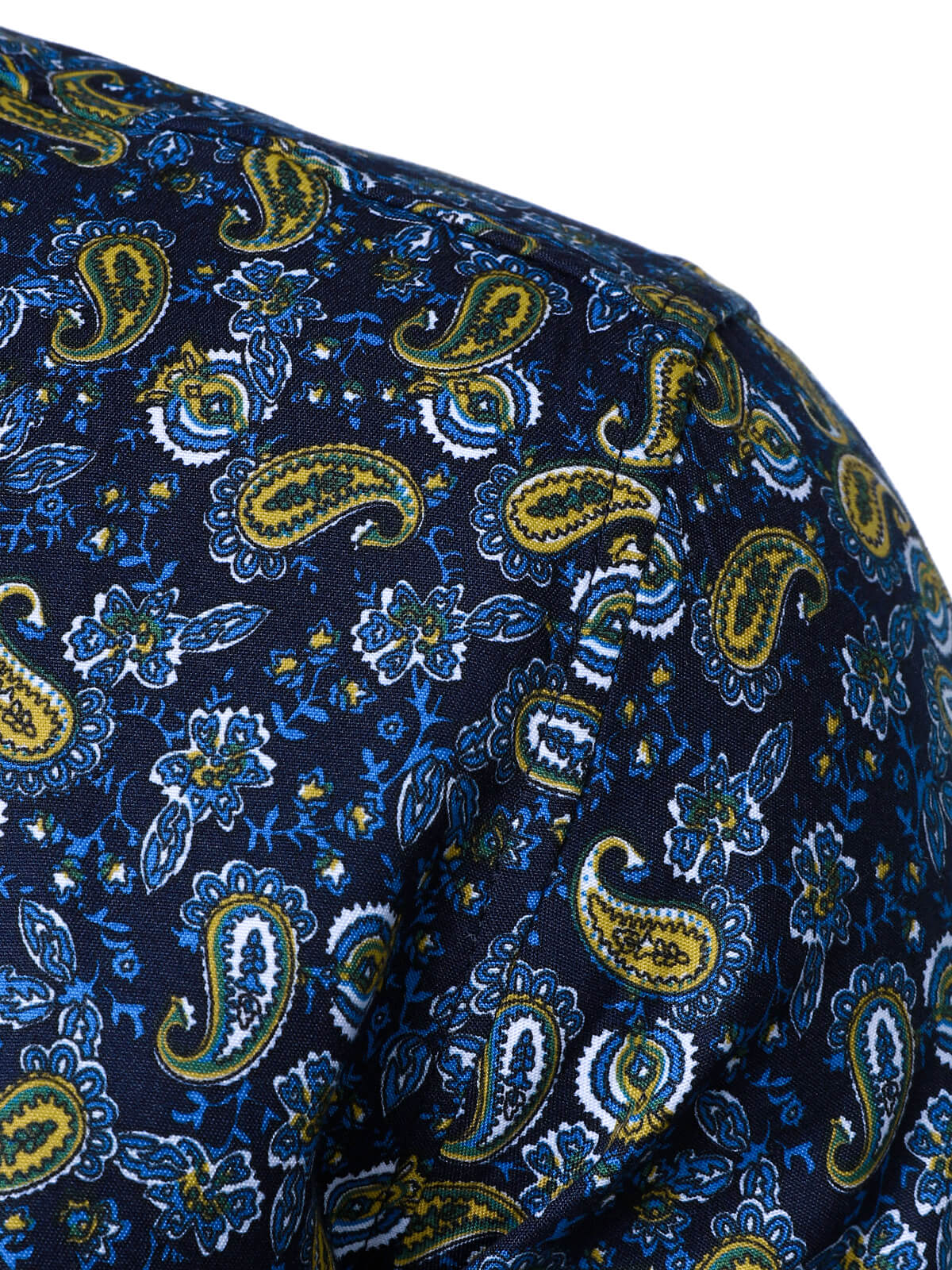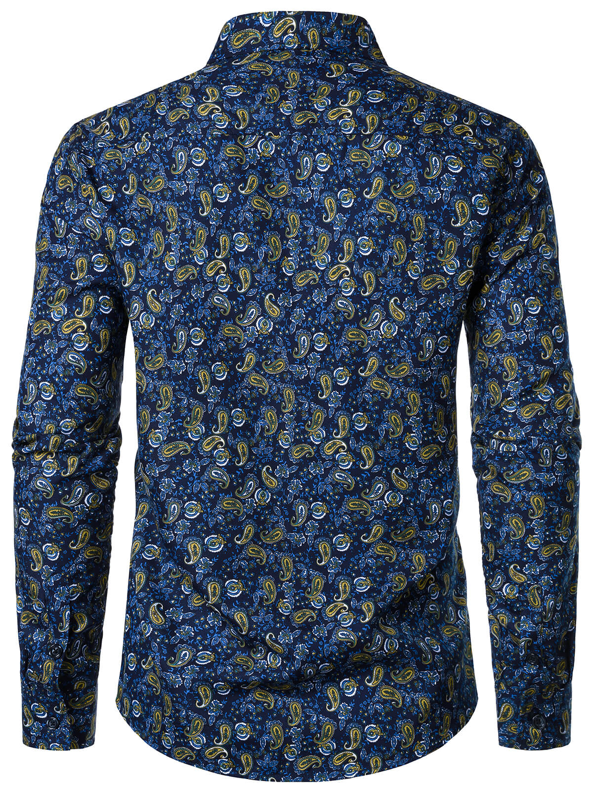 Chemise décontractée à manches longues en coton à imprimé cachemire pour homme