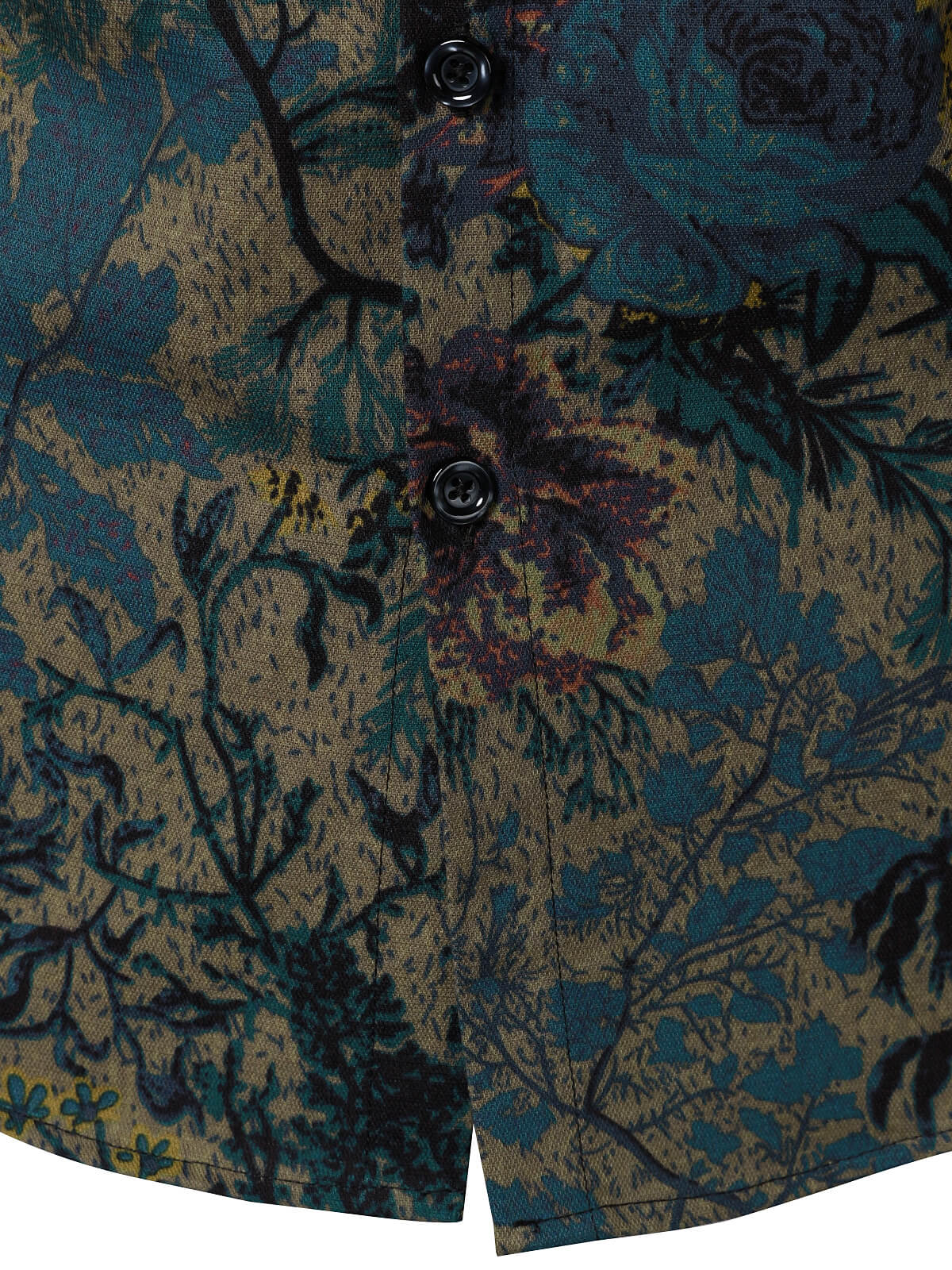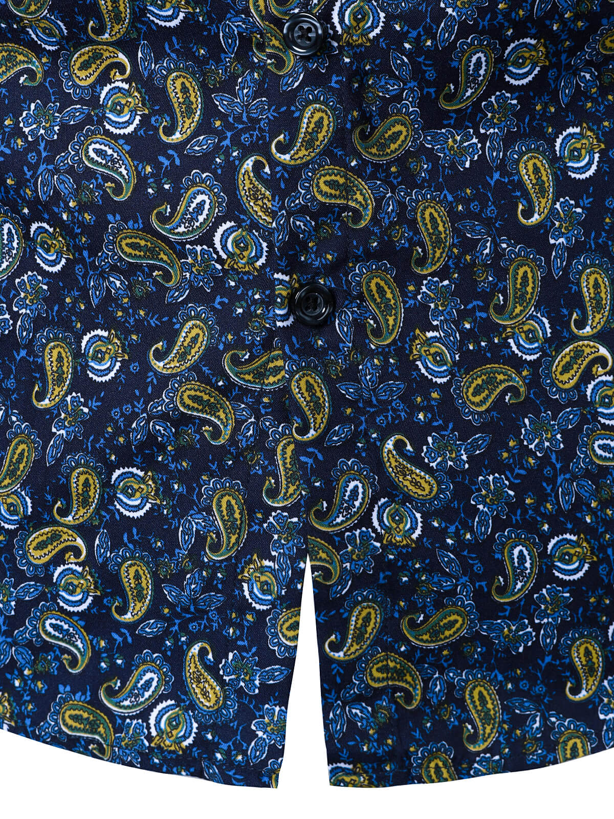 Chemise boutonnée décontractée à manches longues en coton à imprimé cachemire pour hommes