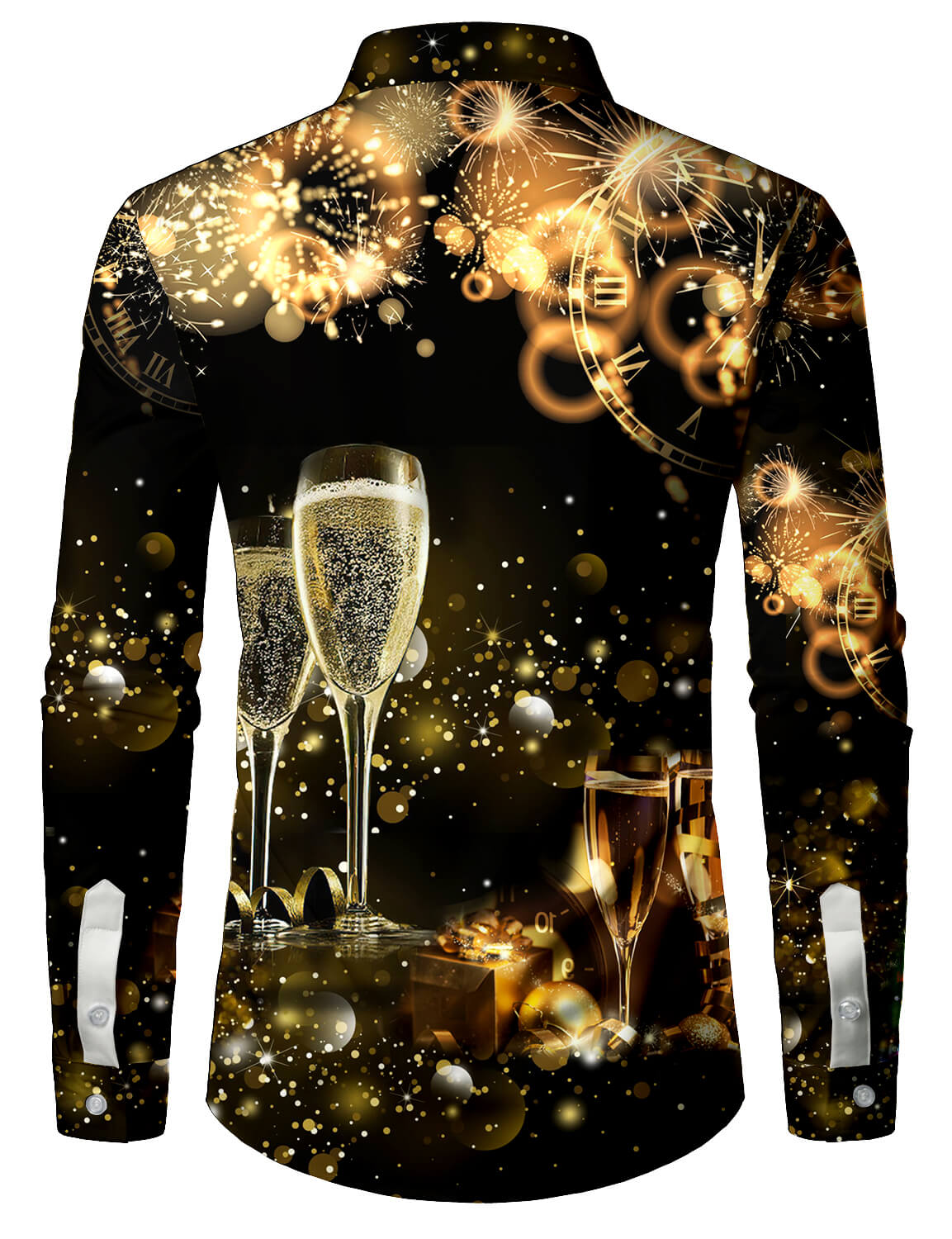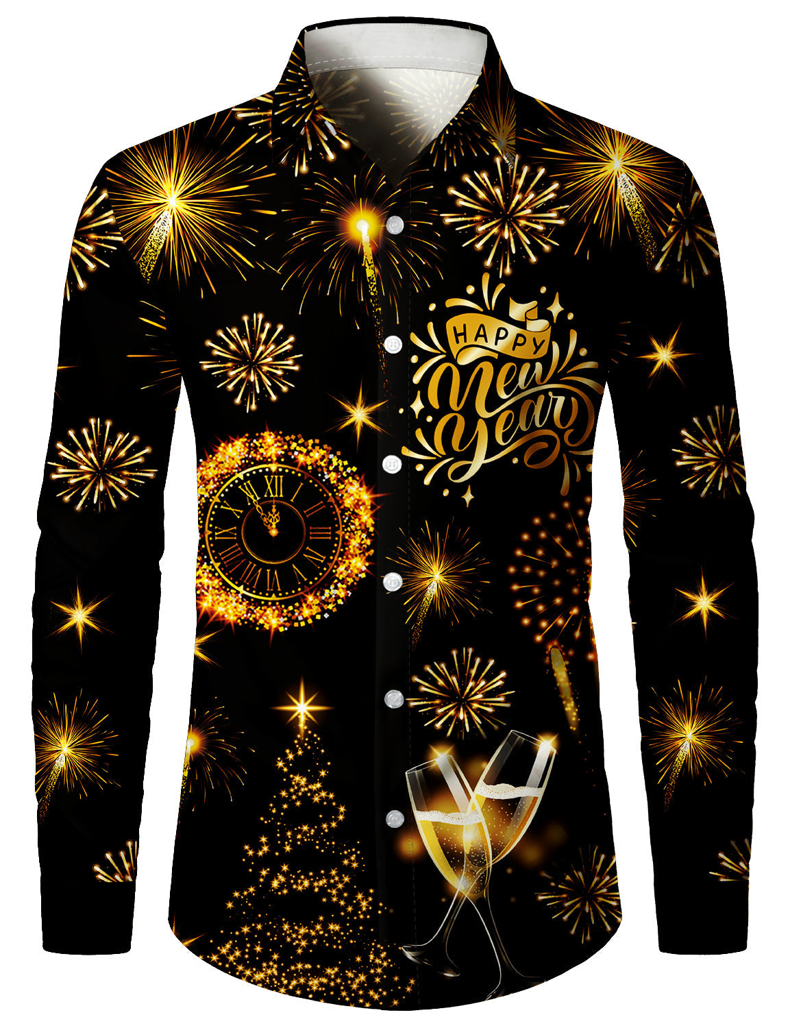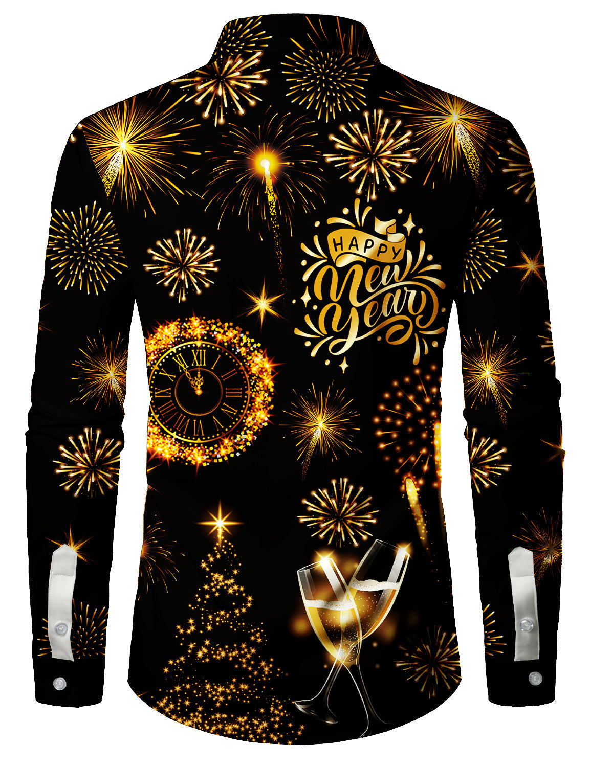 Chemise à manches longues pour hommes avec imprimé de feux d'artifice dorés pour le Nouvel An