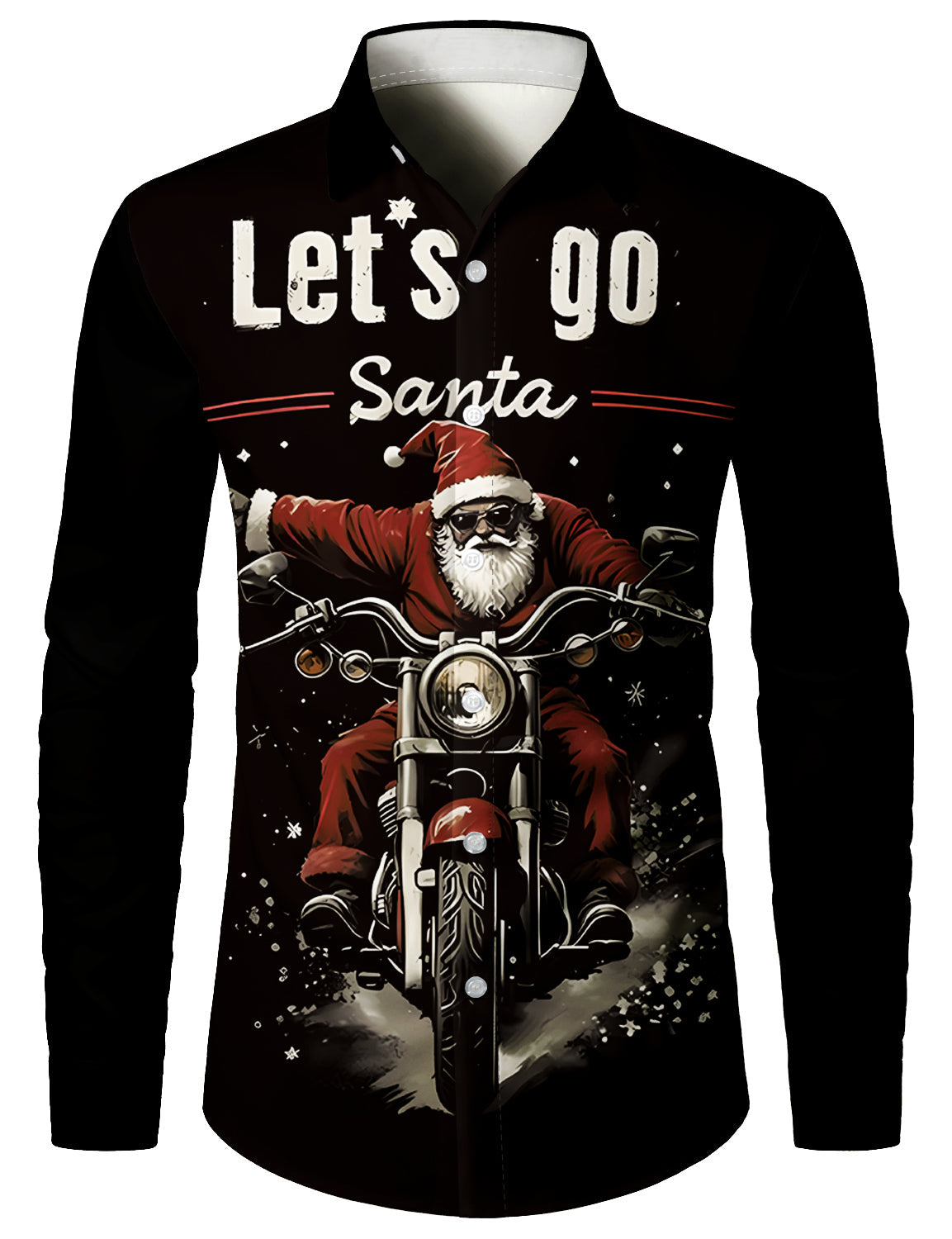 Chemise à manches longues pour hommes avec imprimé drôle de père Noël à moto pour Noël