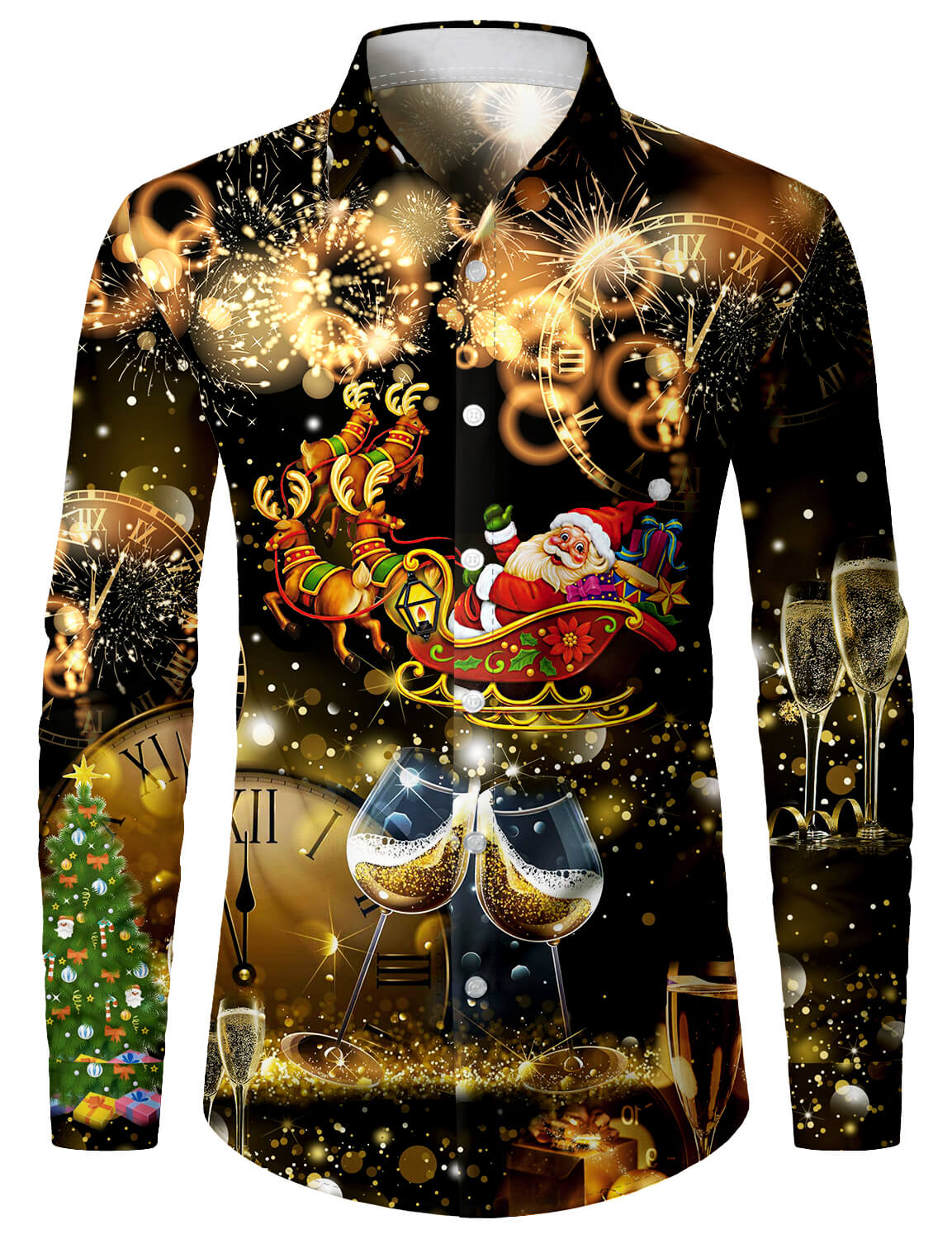 Chemise à manches longues pour homme avec imprimé champagne et joyeux Noël doré