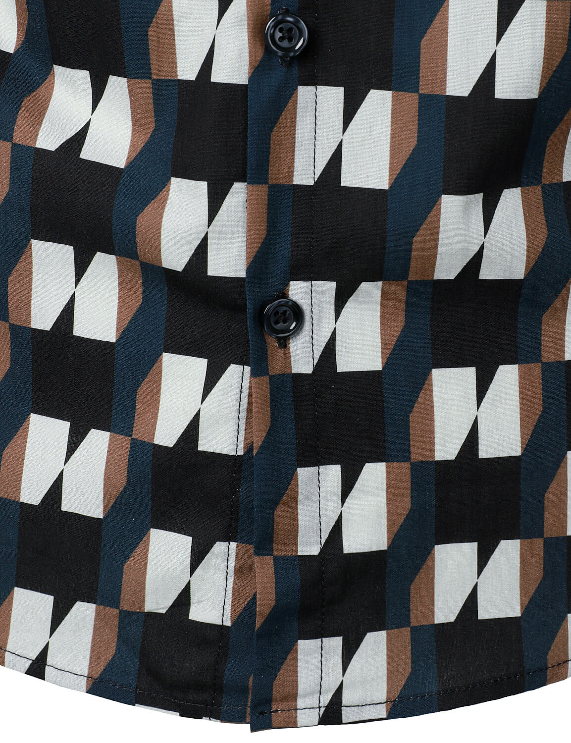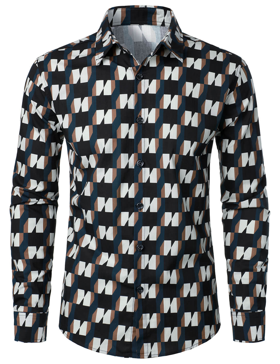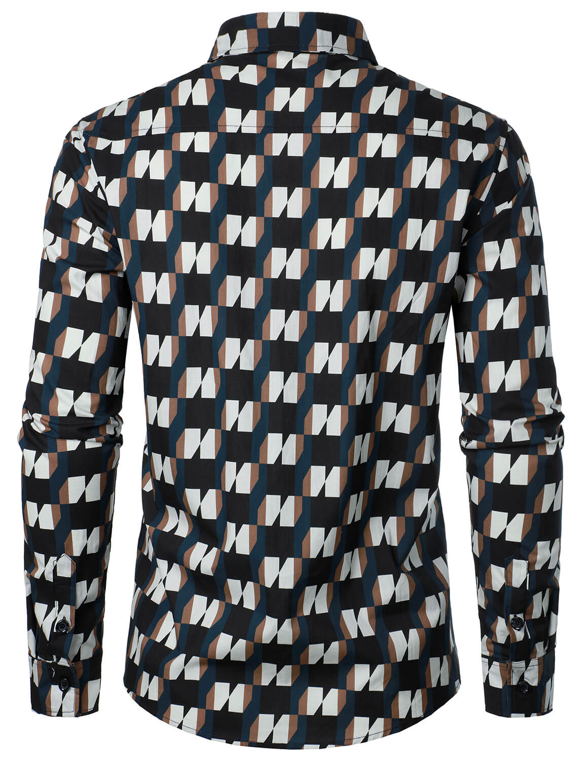 Chemise boutonnée décontractée à manches longues en coton à motif géométrique pour hommes