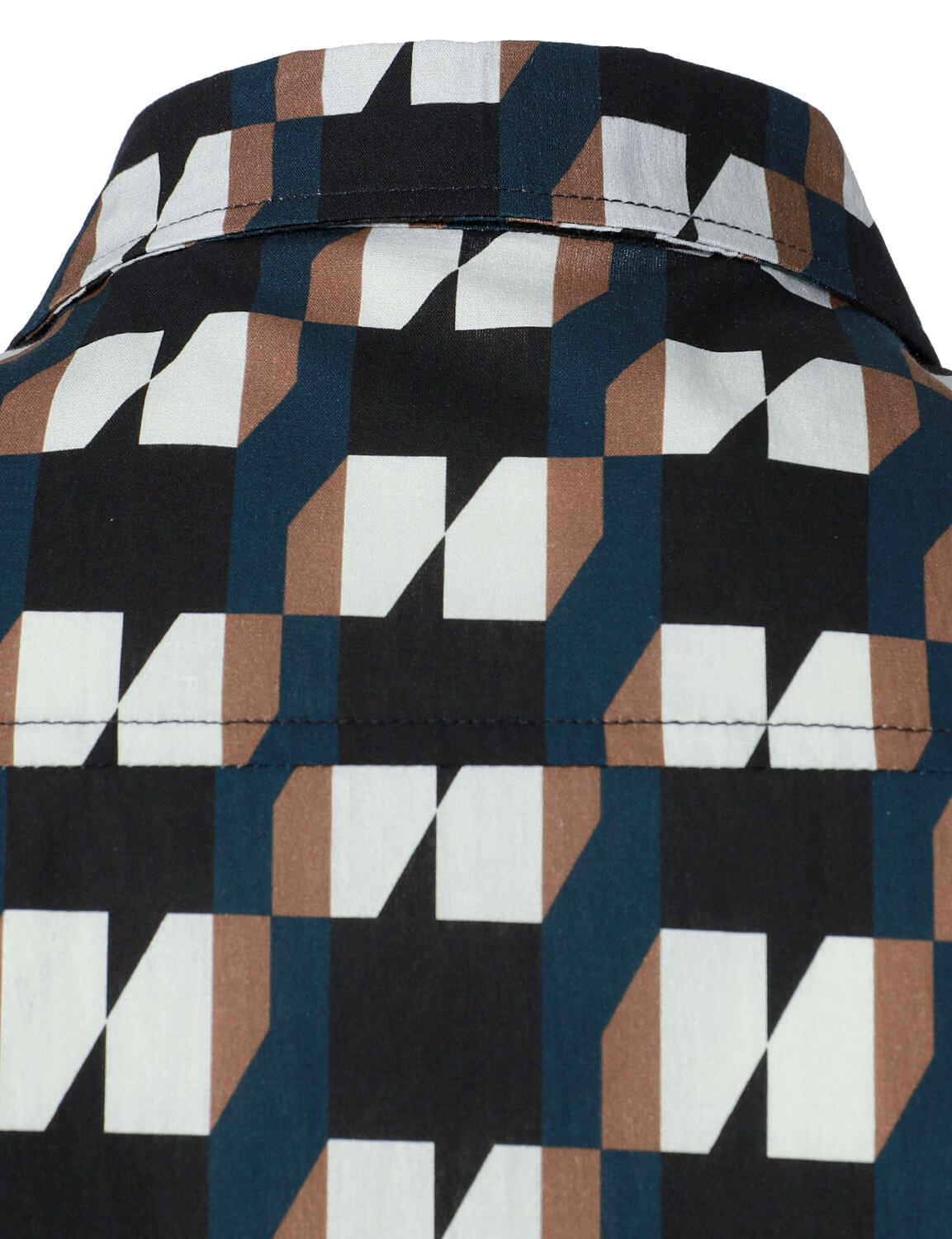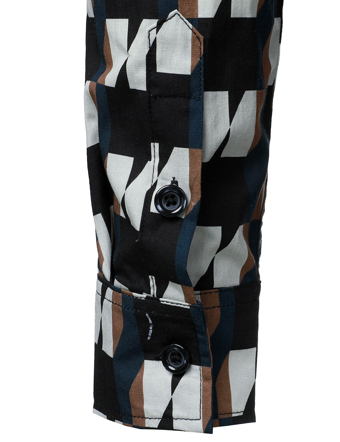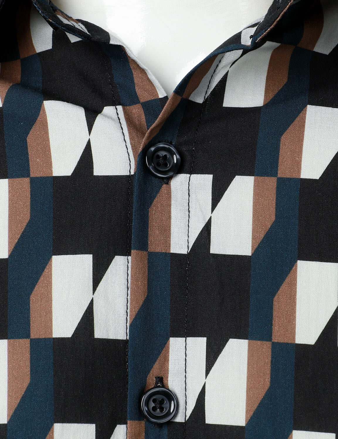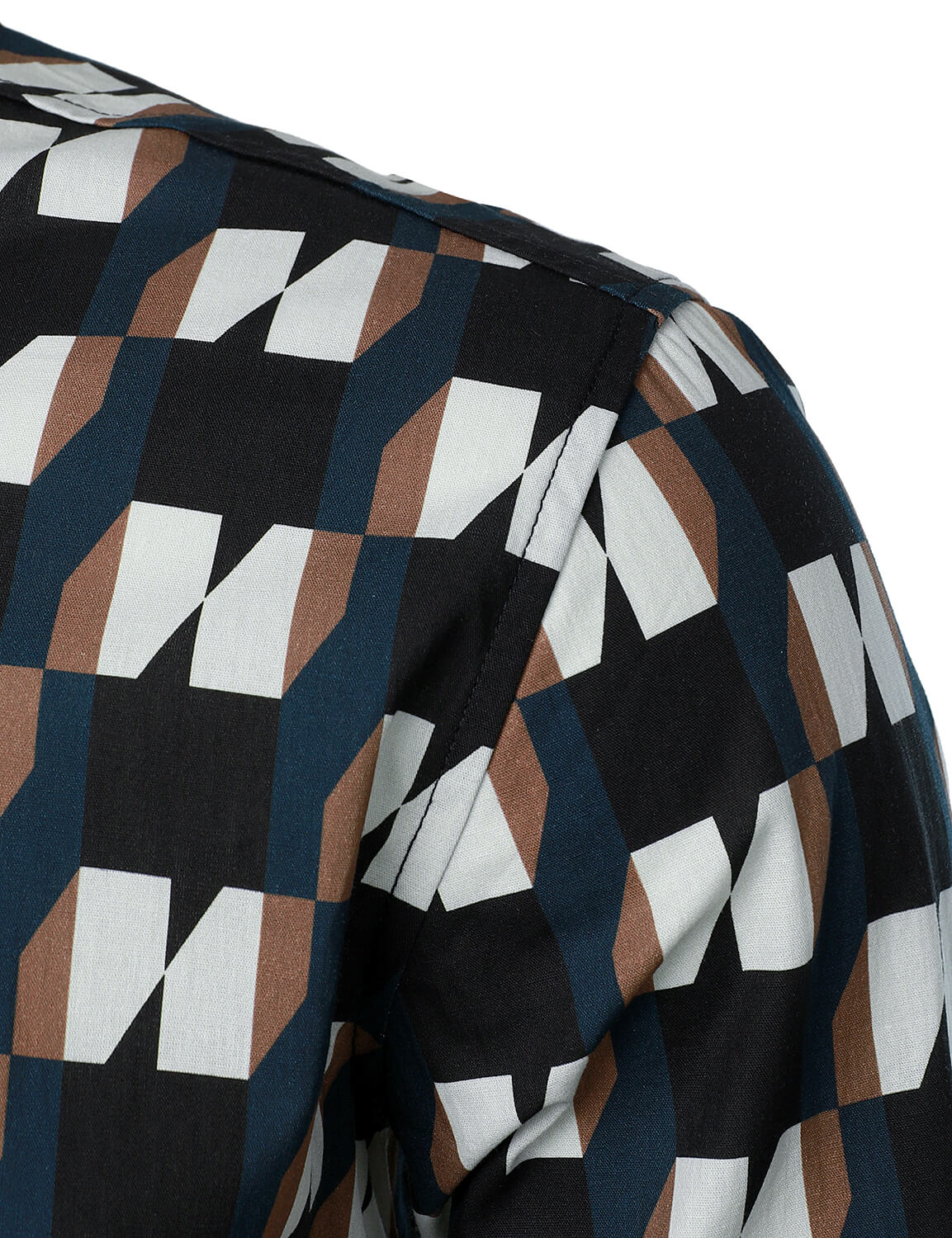 Chemise boutonnée décontractée à manches longues en coton à motif géométrique pour hommes