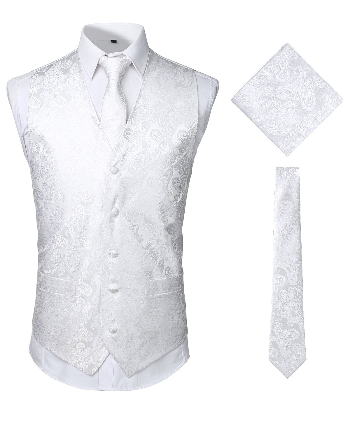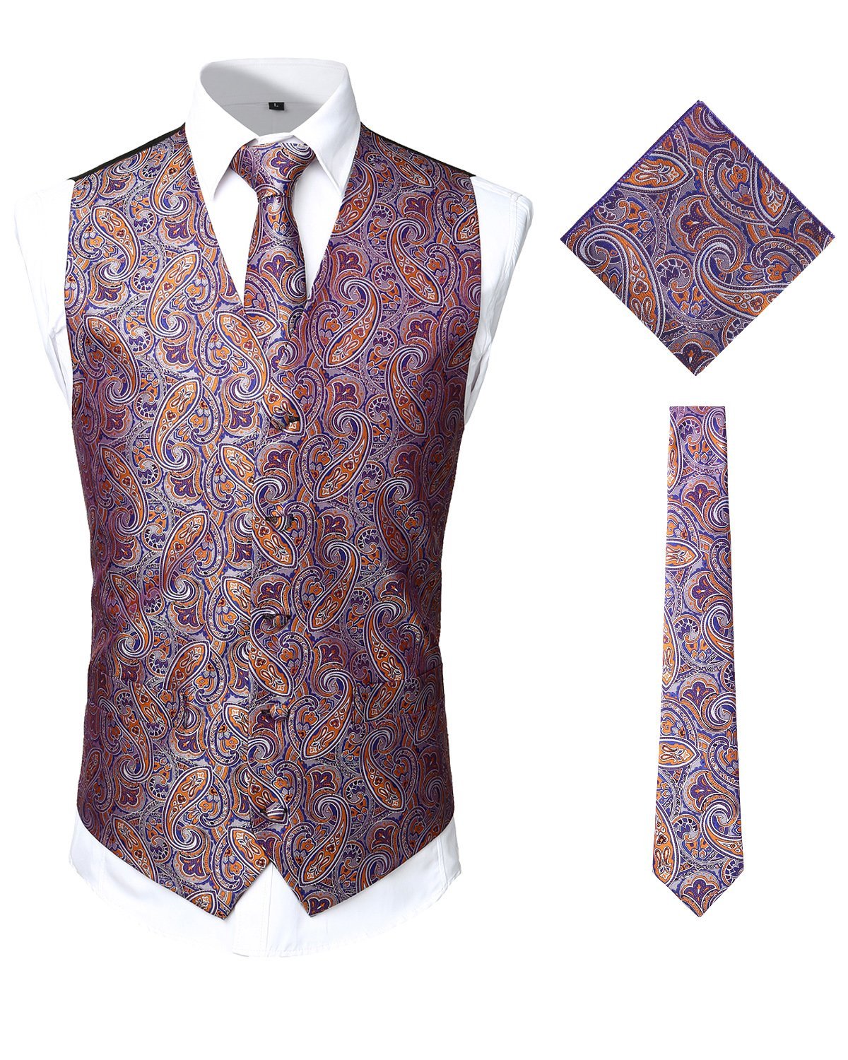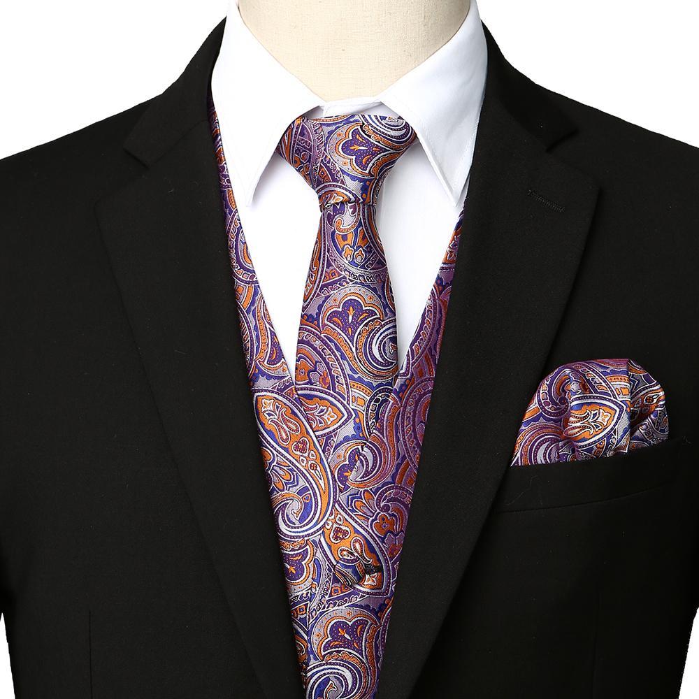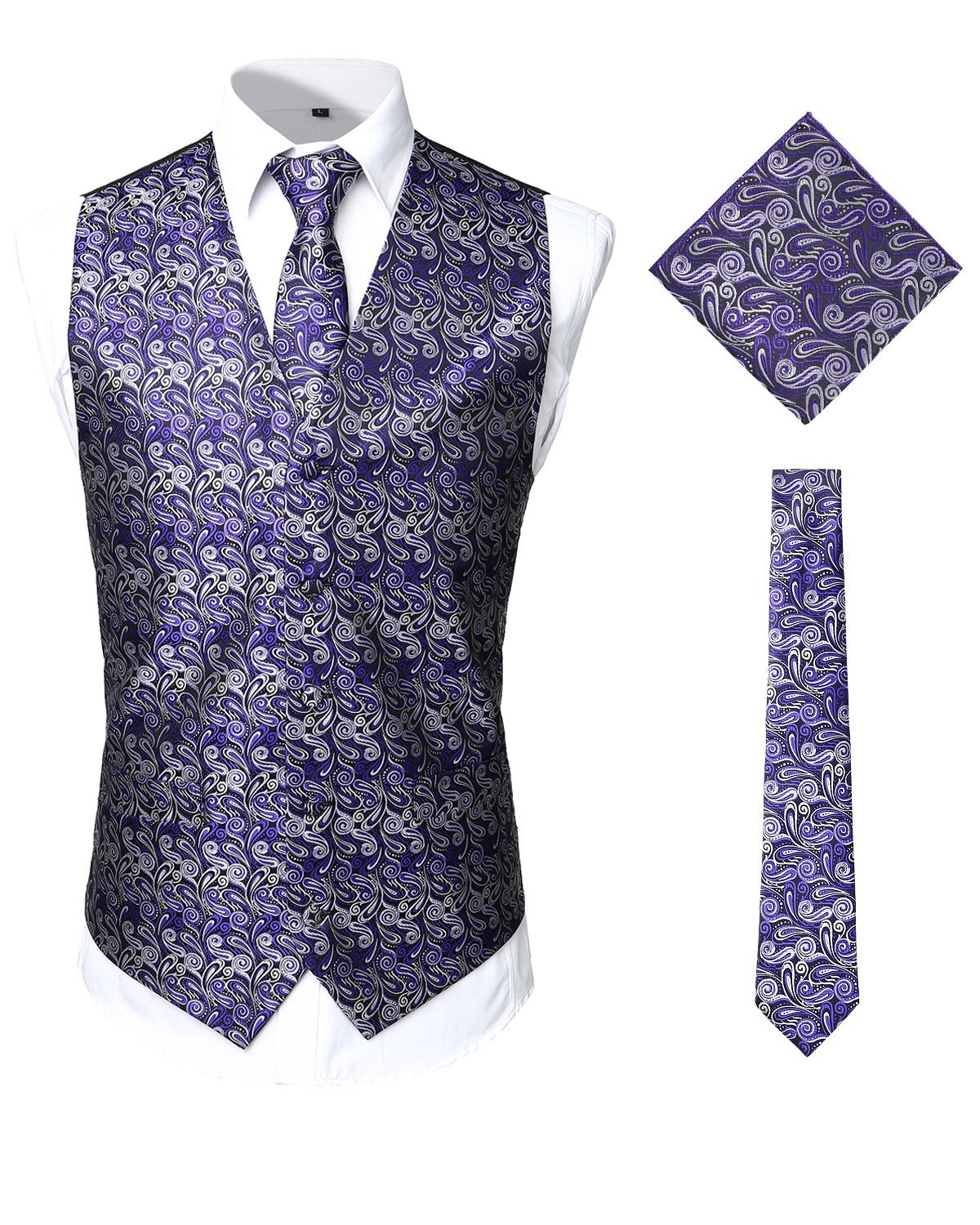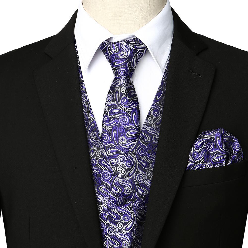 - Ensemble de 3 pièces de gilet de robe comprend: gilet, cravate, mouchoir. Cravate: 2,8 "x 57", mouchoir: 8,8 "x 8,8" de dimension. Tous les accessoires sont dans le modèle Paisley assorti.