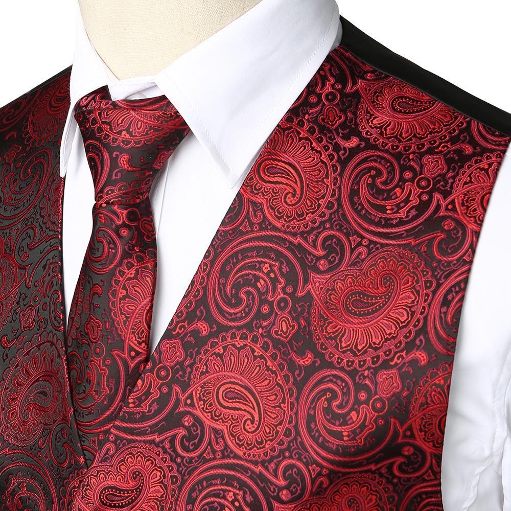 Ensemble de 3 pièces pour hommes Paisley Gilet cravate pour costume ou smoking