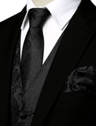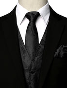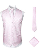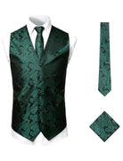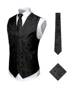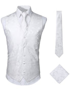 Homme 3pc Jacquard Paisley Gilet & Cravate Ensemble Classique Cravate Poche Carré Gilet pour Costume ou Smoking