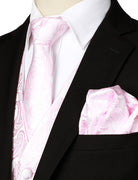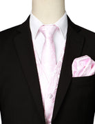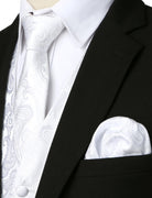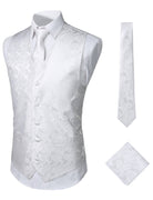 Hommes classique Jacquard Paisley gilet ensemble 3pc cravate poche carré gilet pour costume ou smoking