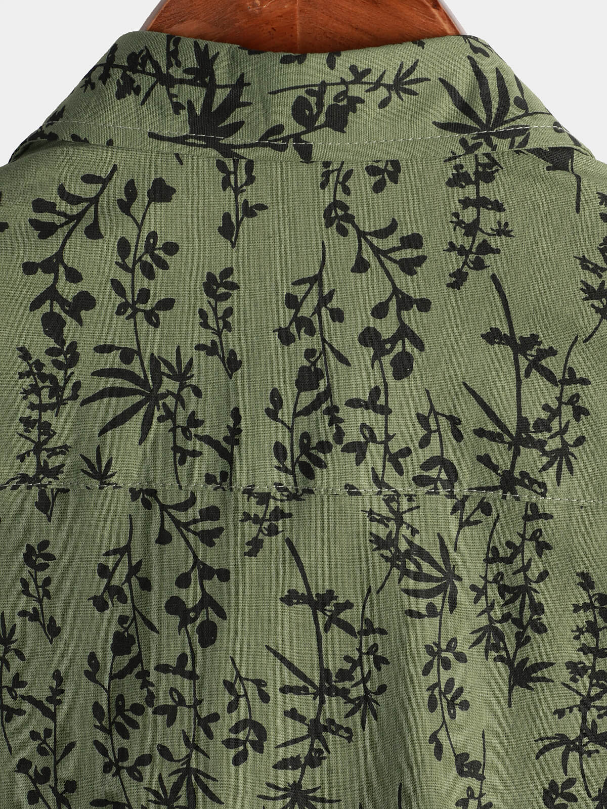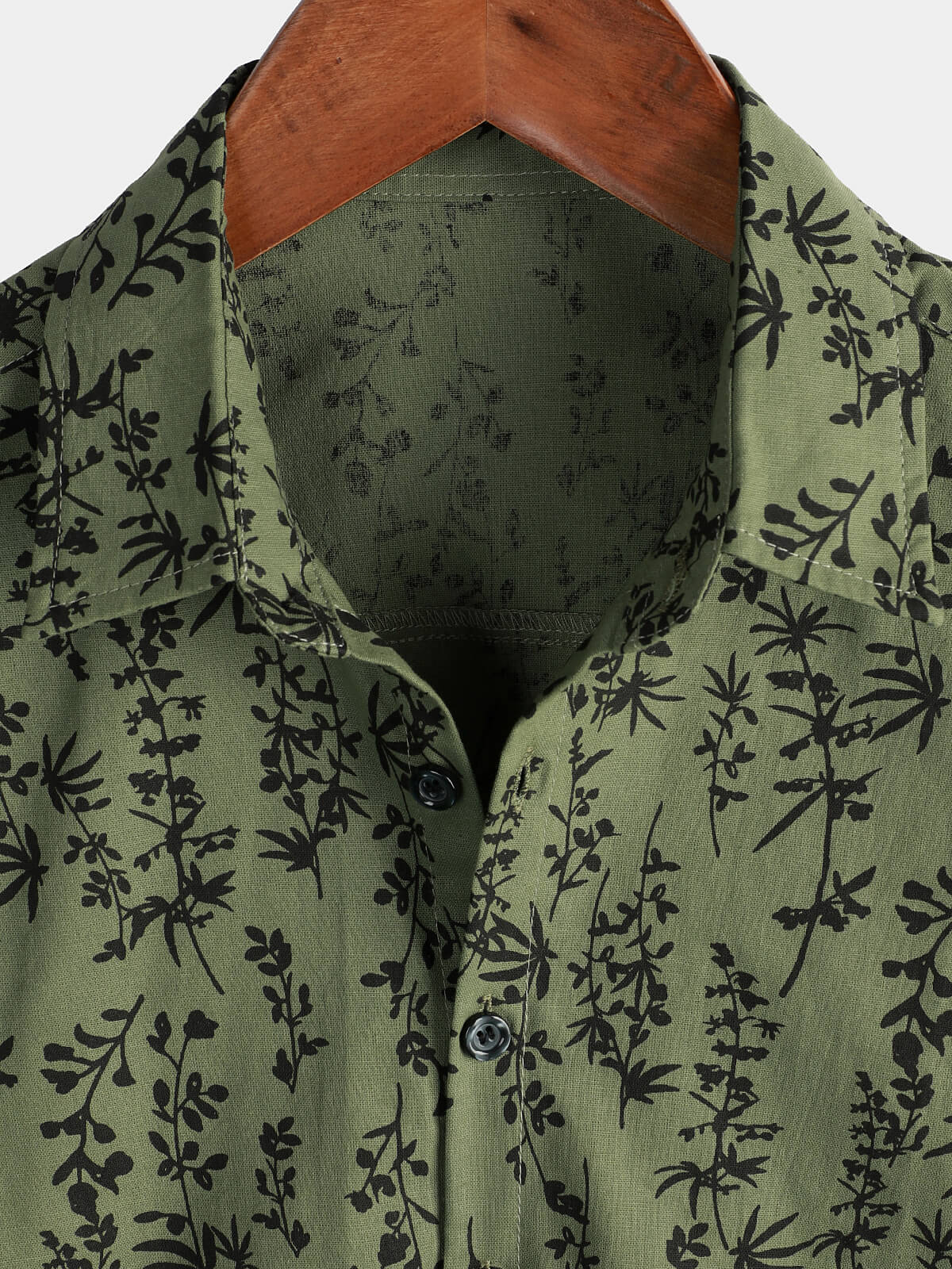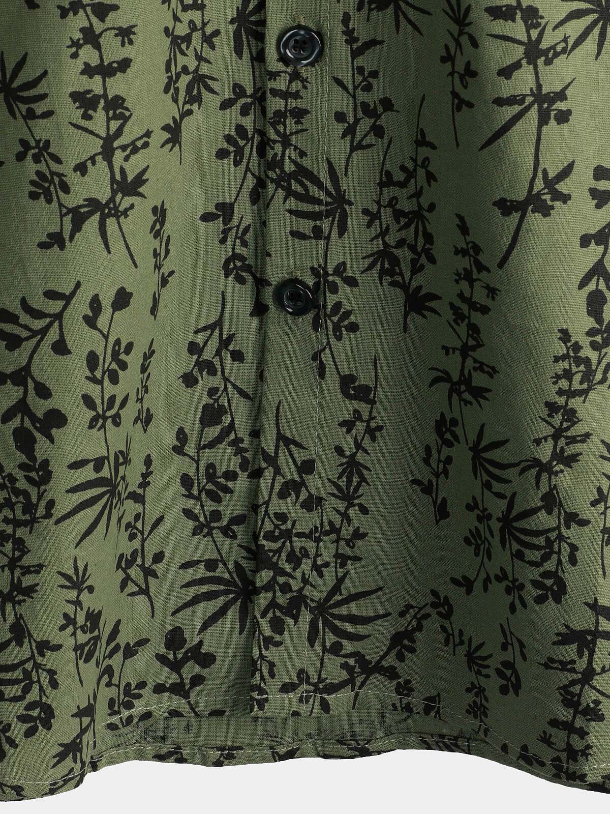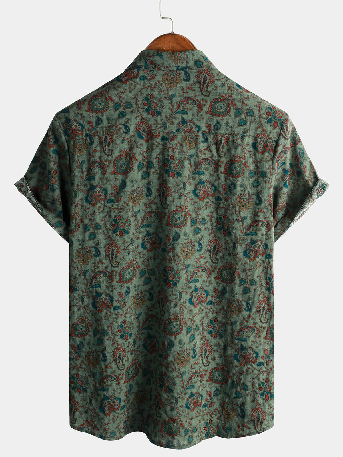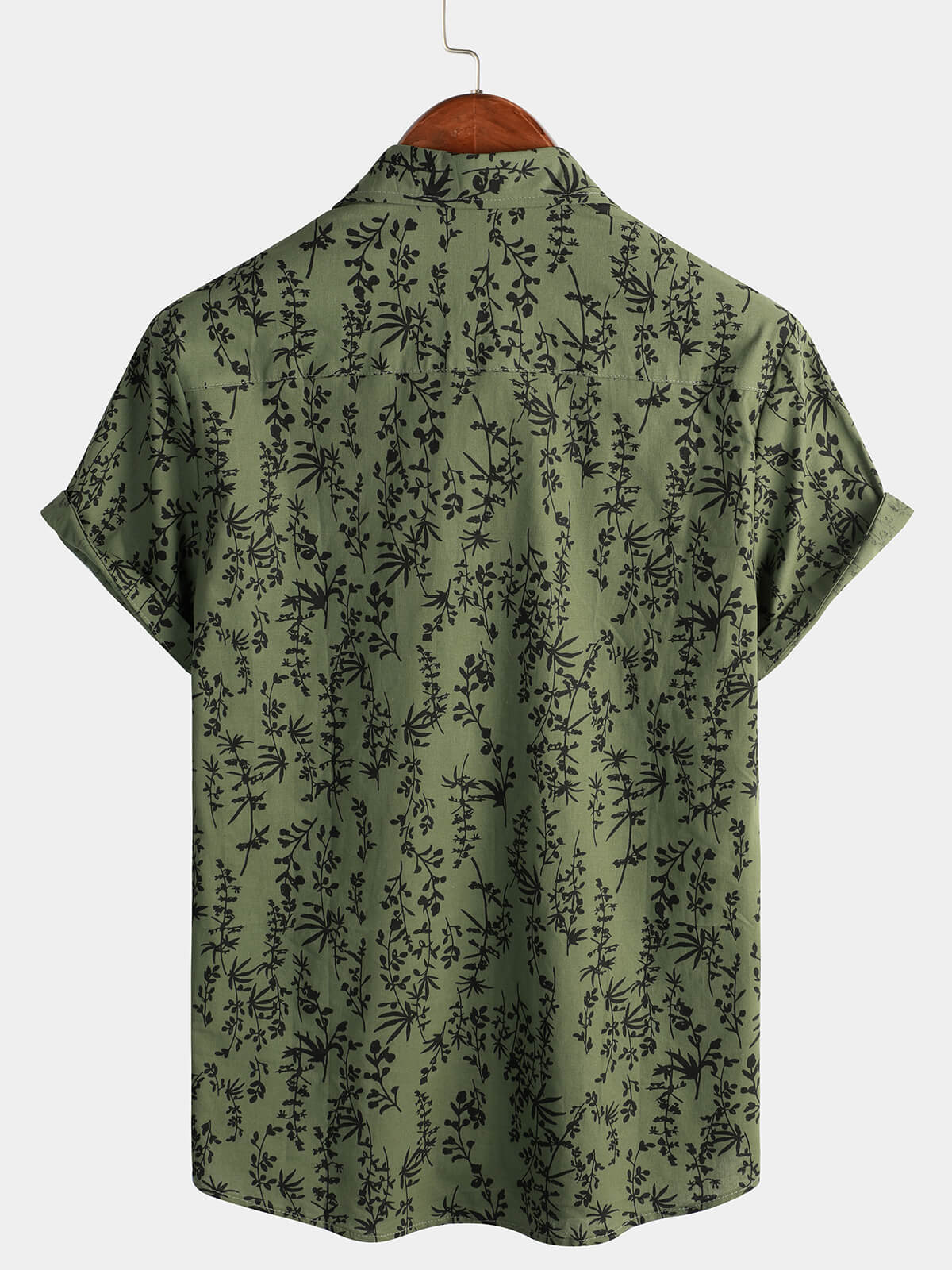 Chemise rétro à manches courtes en coton vert hawaïen pour homme idéale pour les vacances estivales avec motifs floraux boutonnée