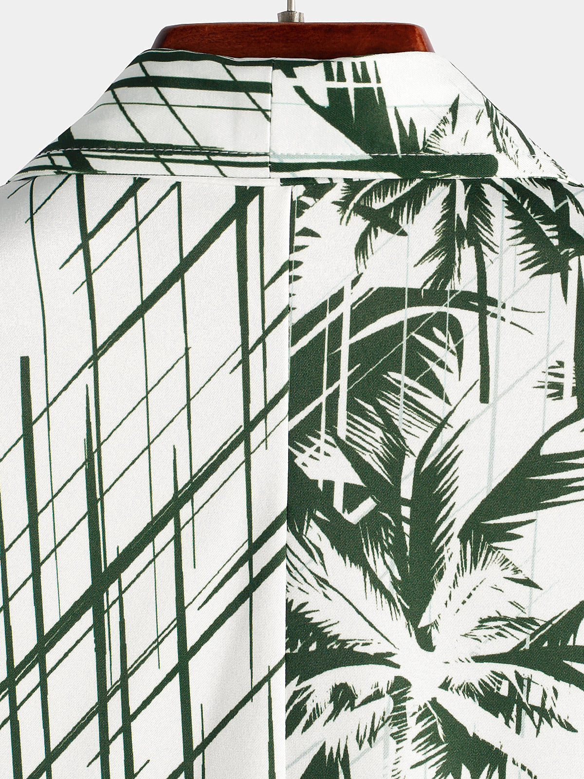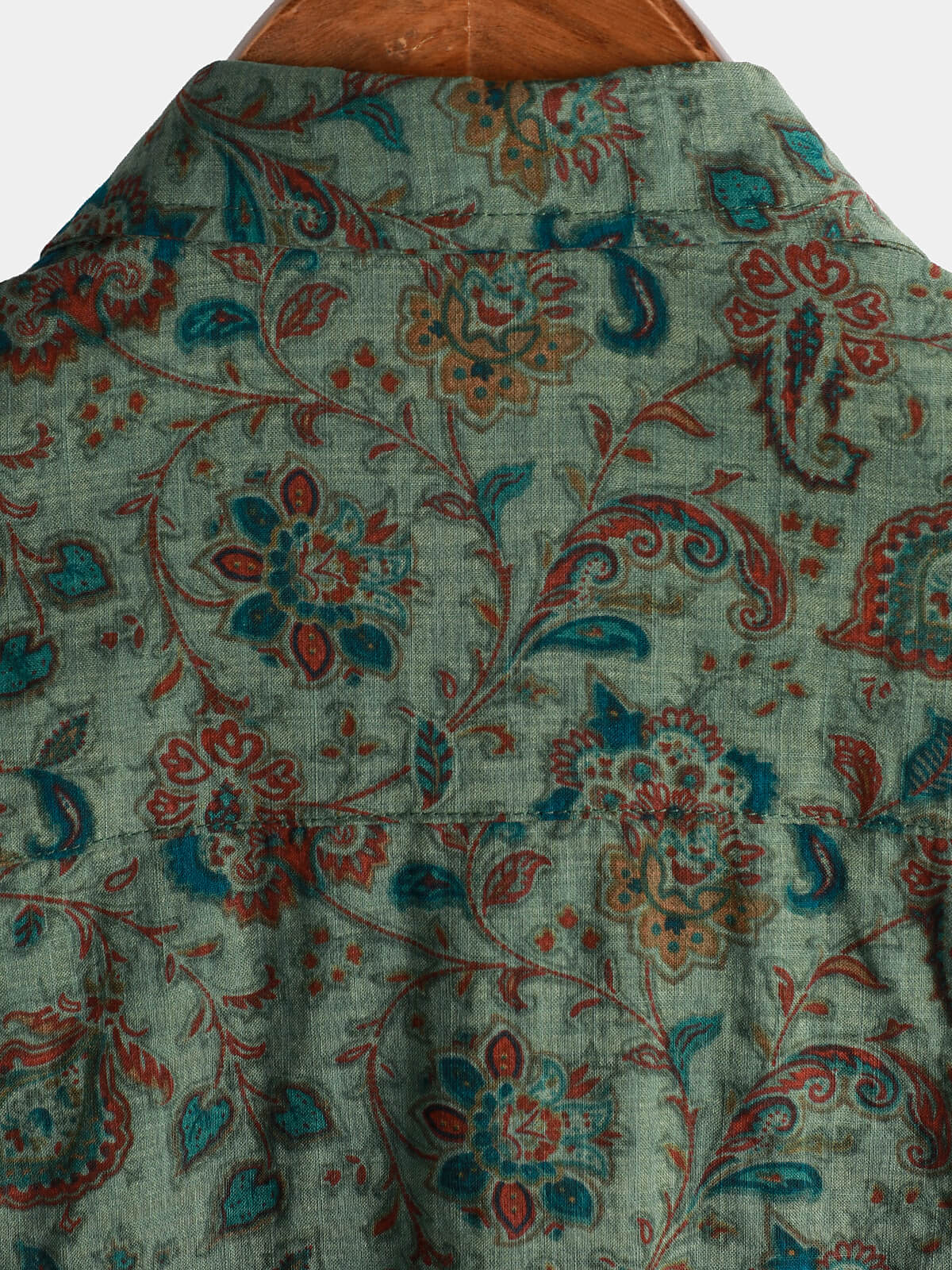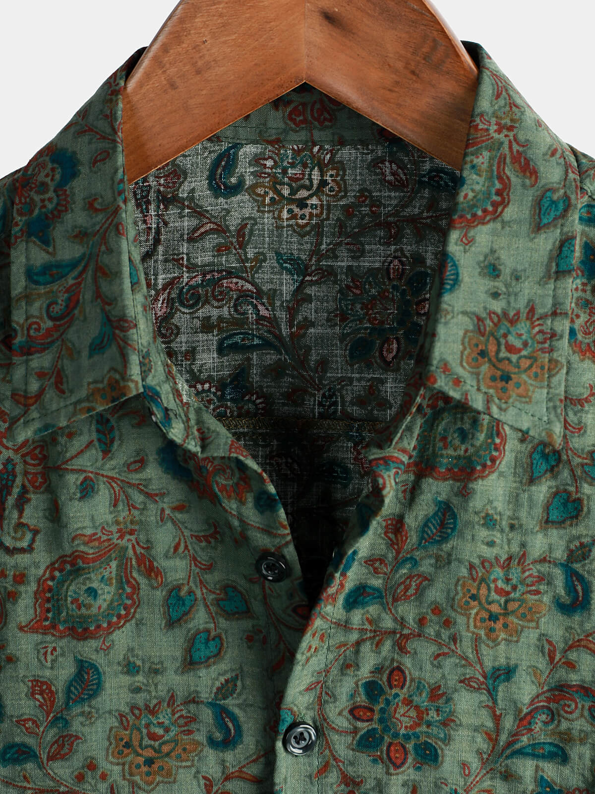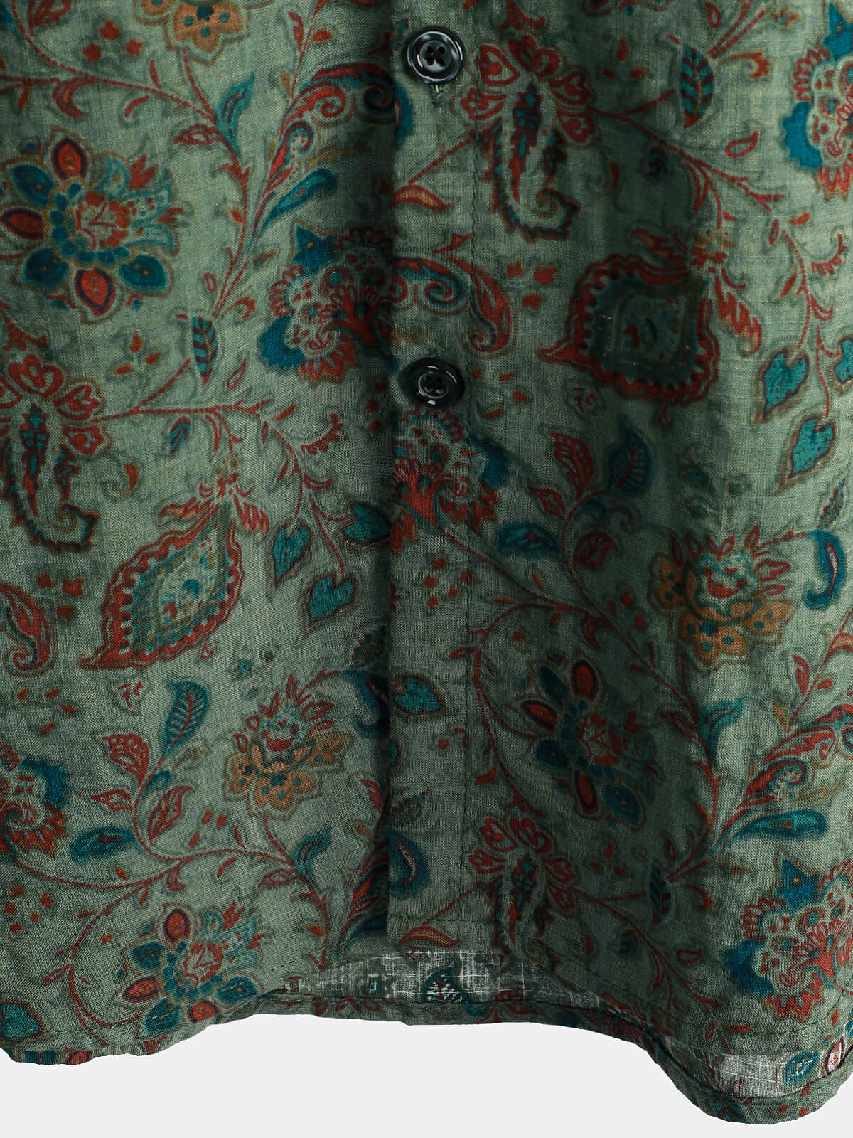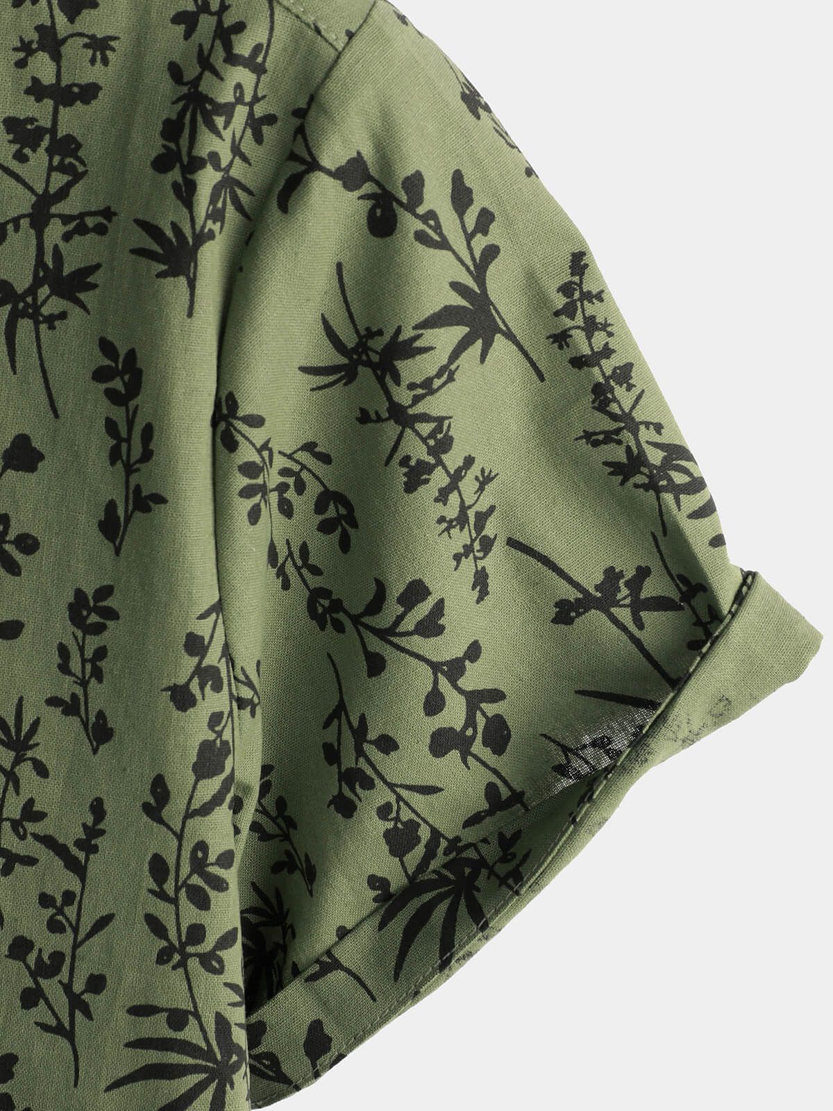 Chemise rétro à manches courtes en coton vert hawaïen pour homme idéale pour les vacances estivales avec motifs floraux boutonnée