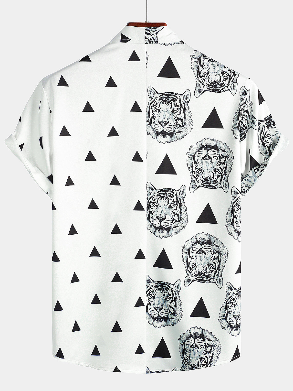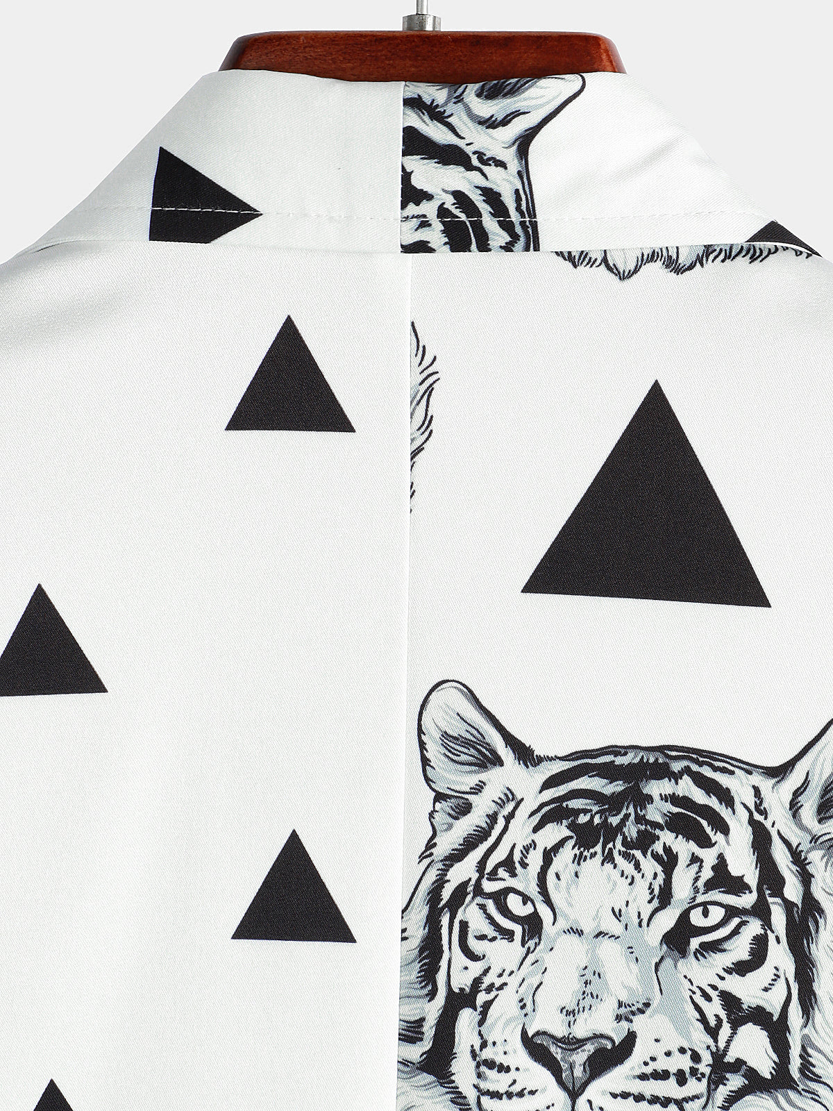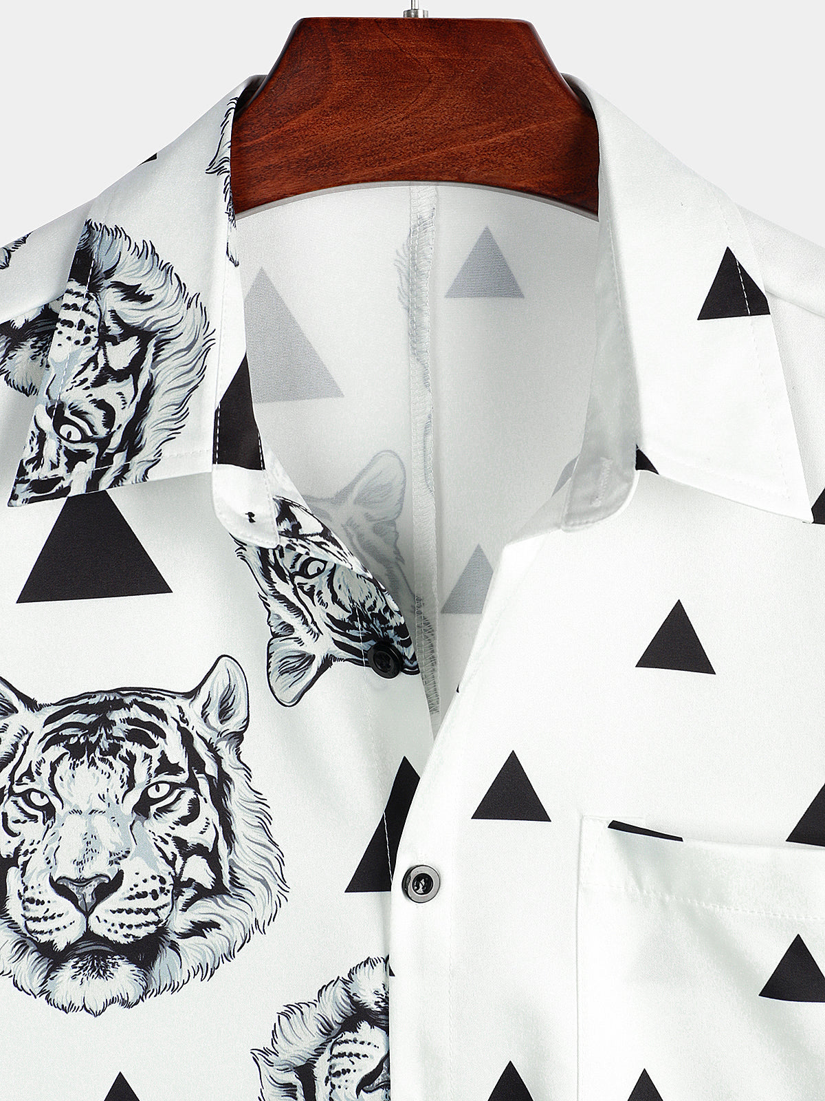 Chemise boutonnée à manches courtes à imprimé tigre d'été vintage pour hommes