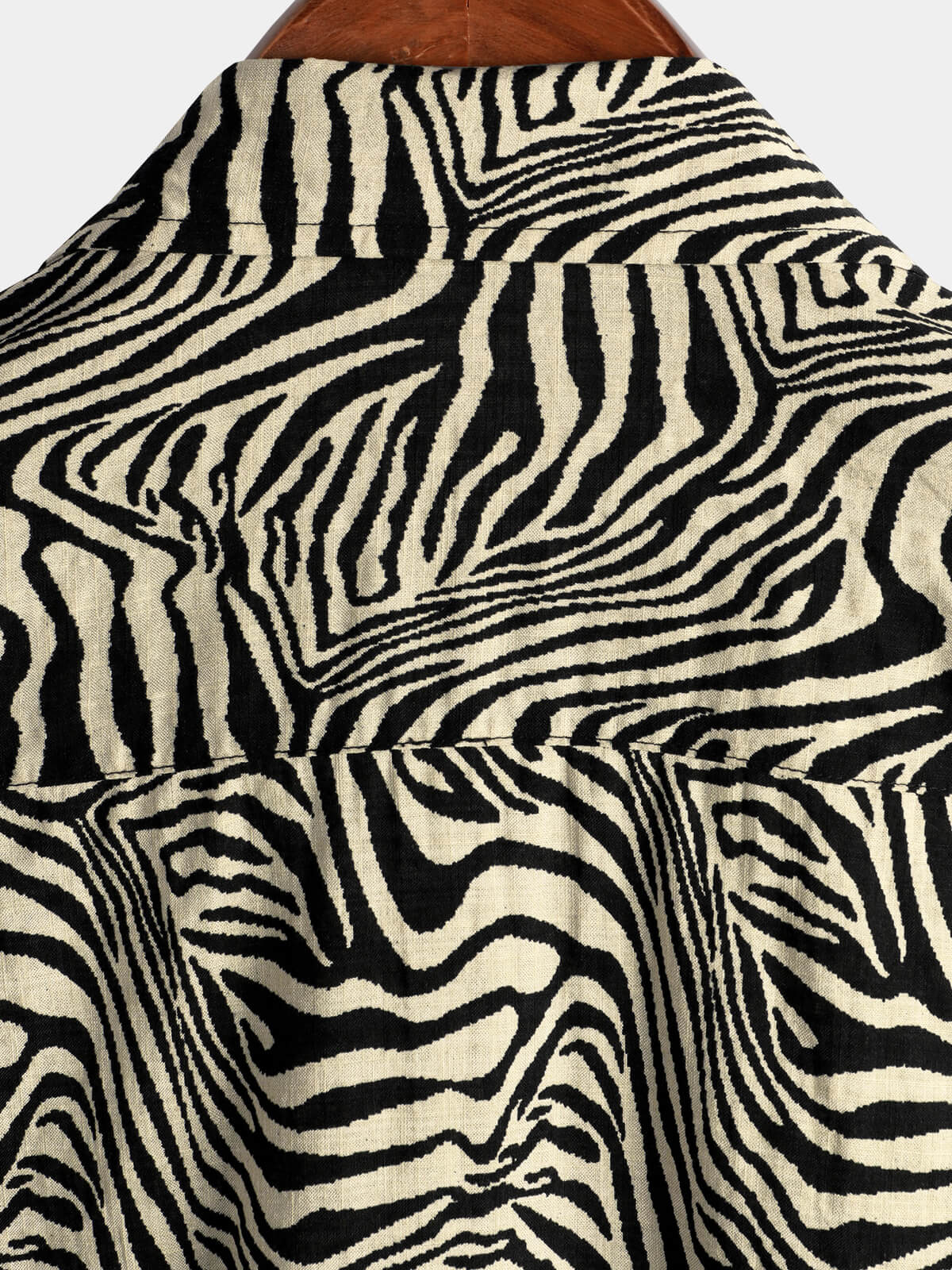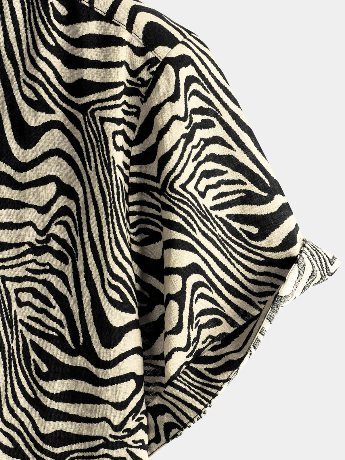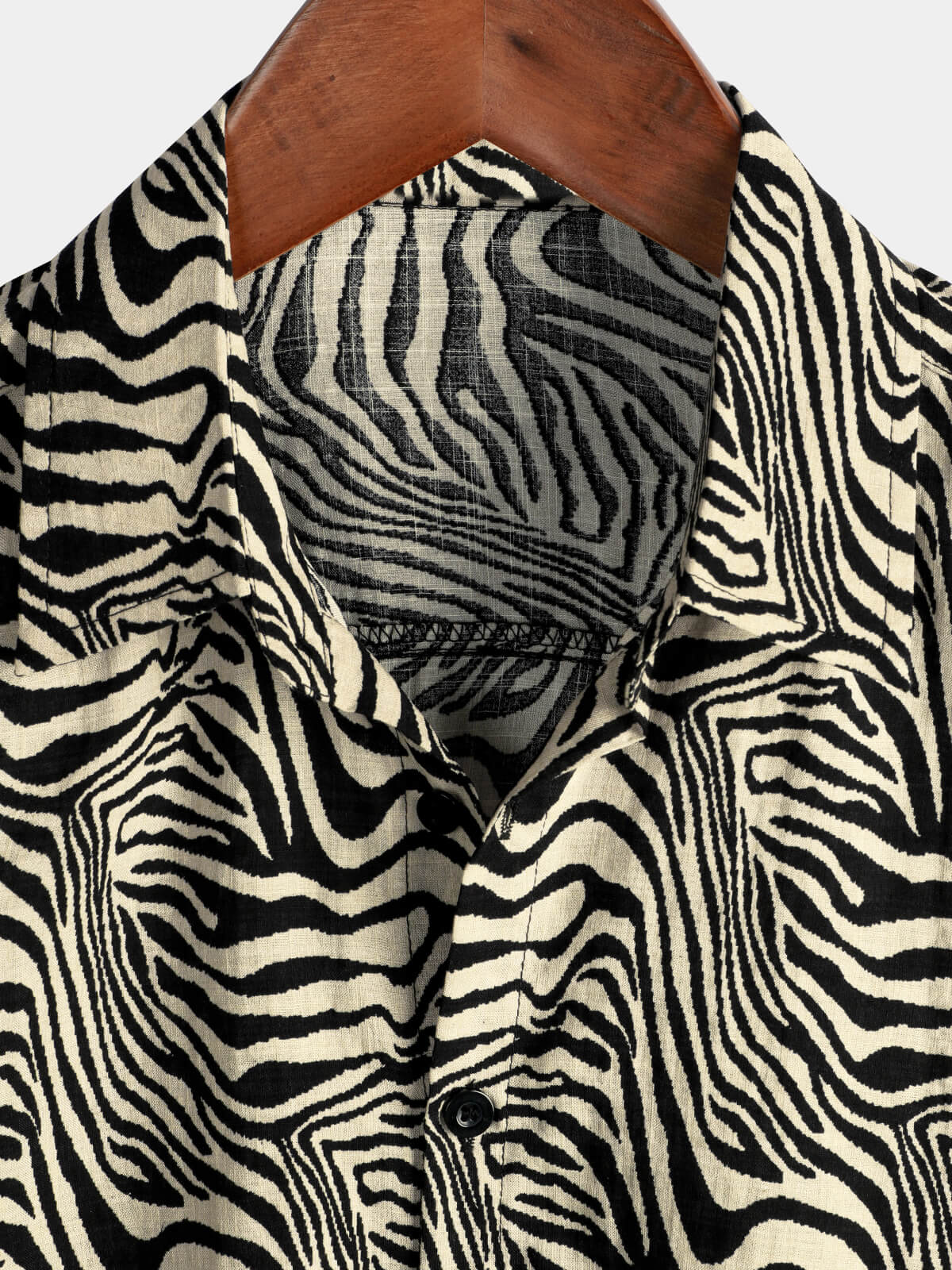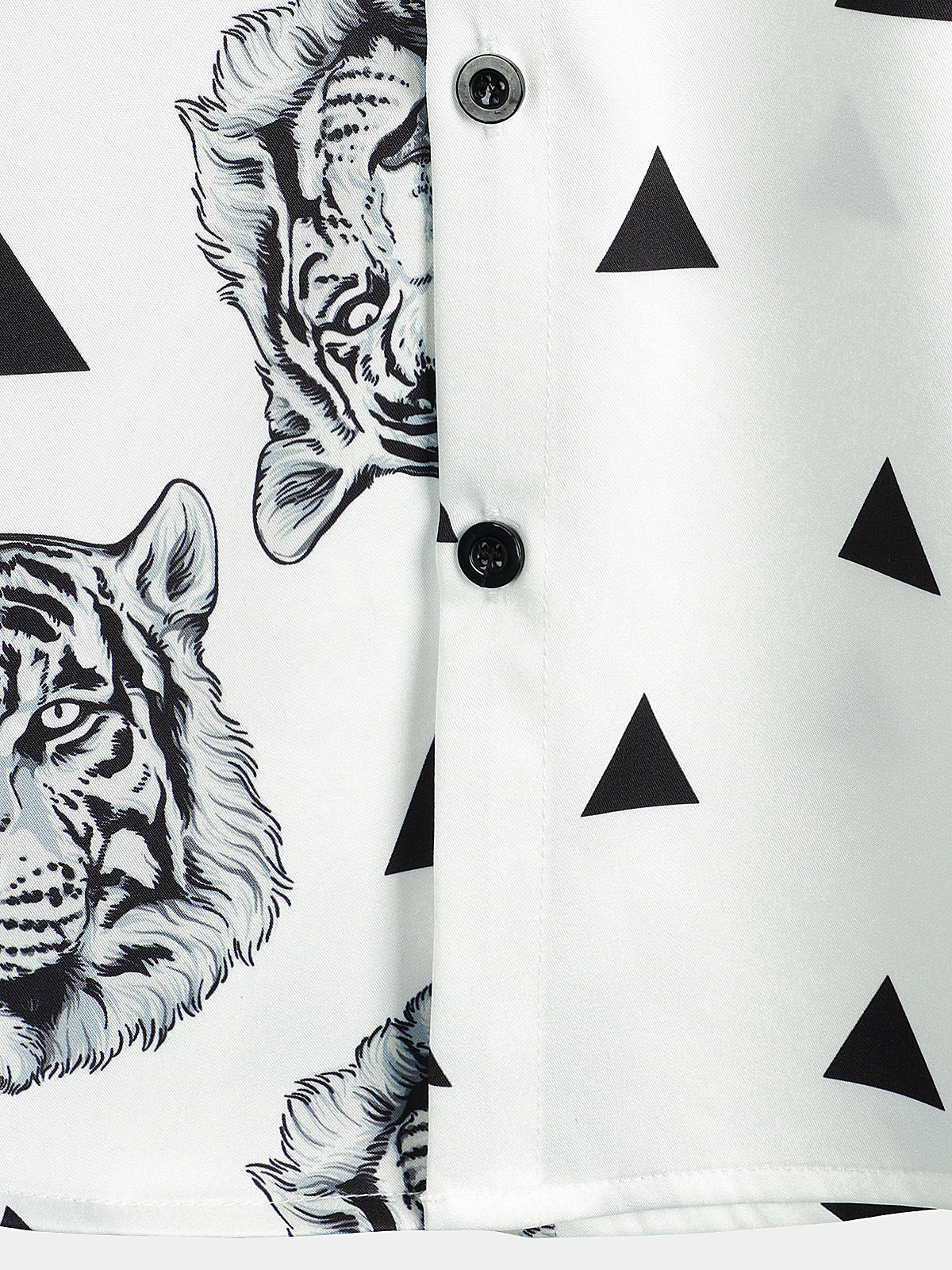 Chemise boutonnée à manches courtes à imprimé tigre d'été vintage pour hommes