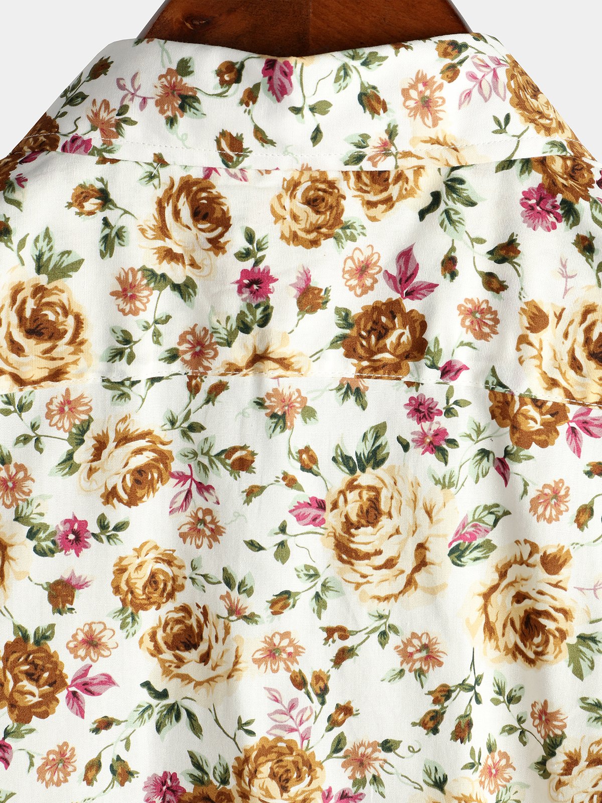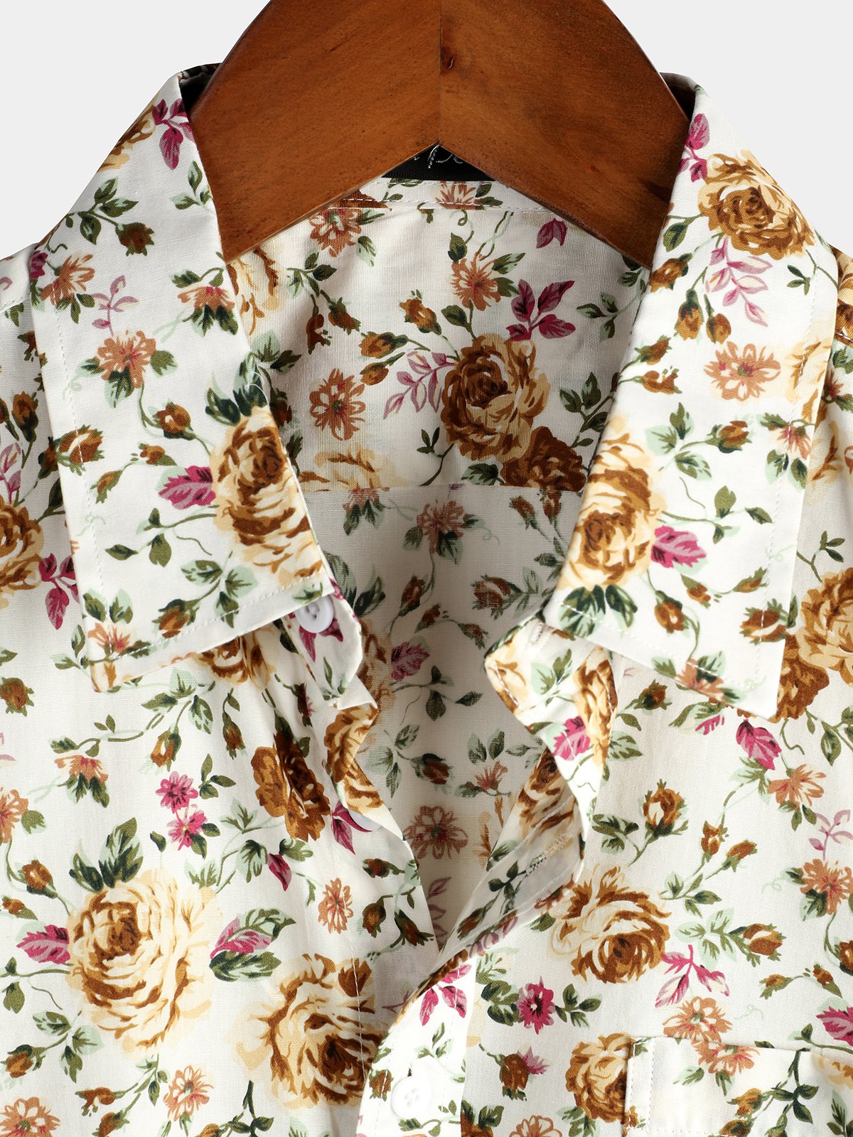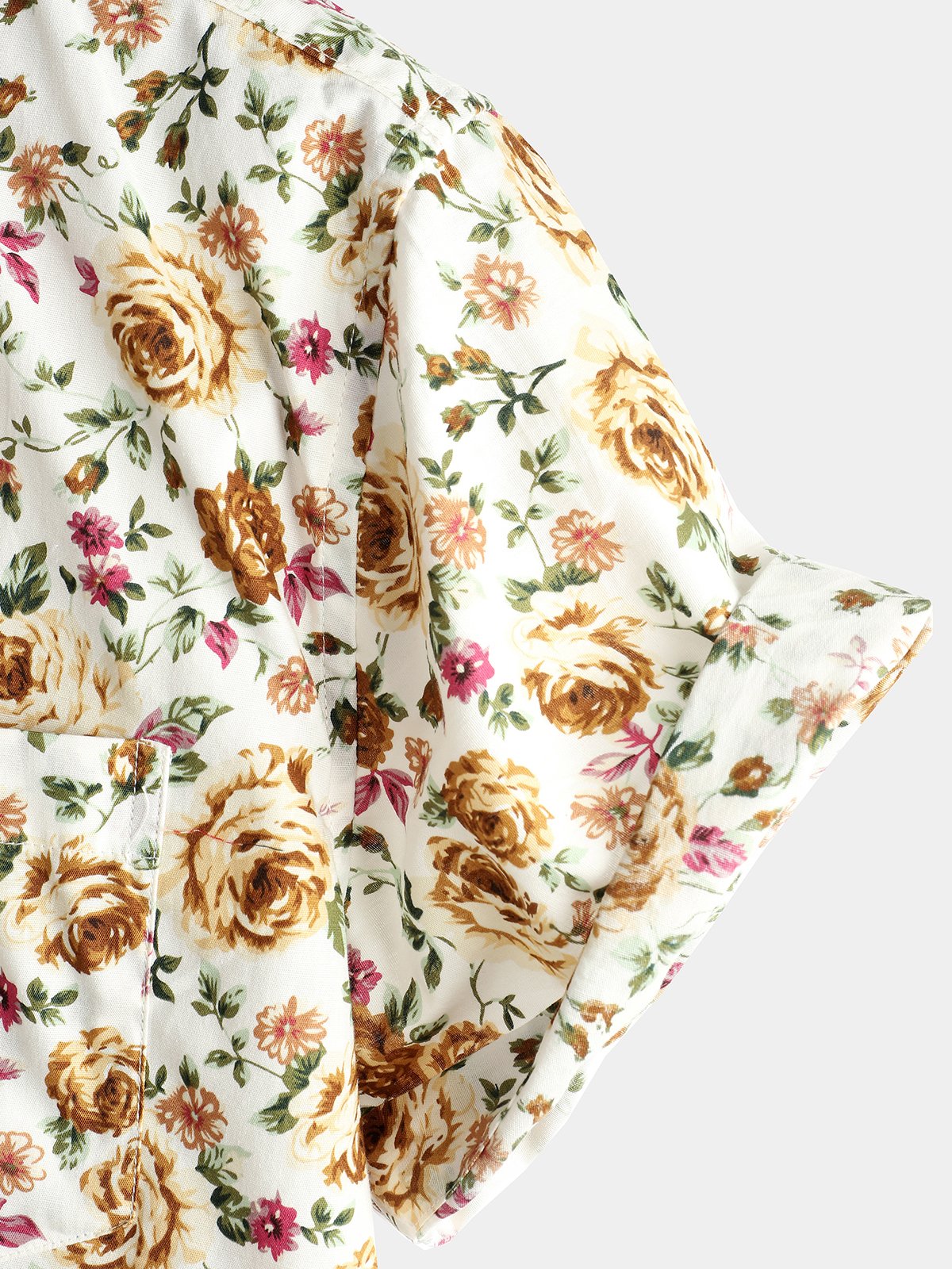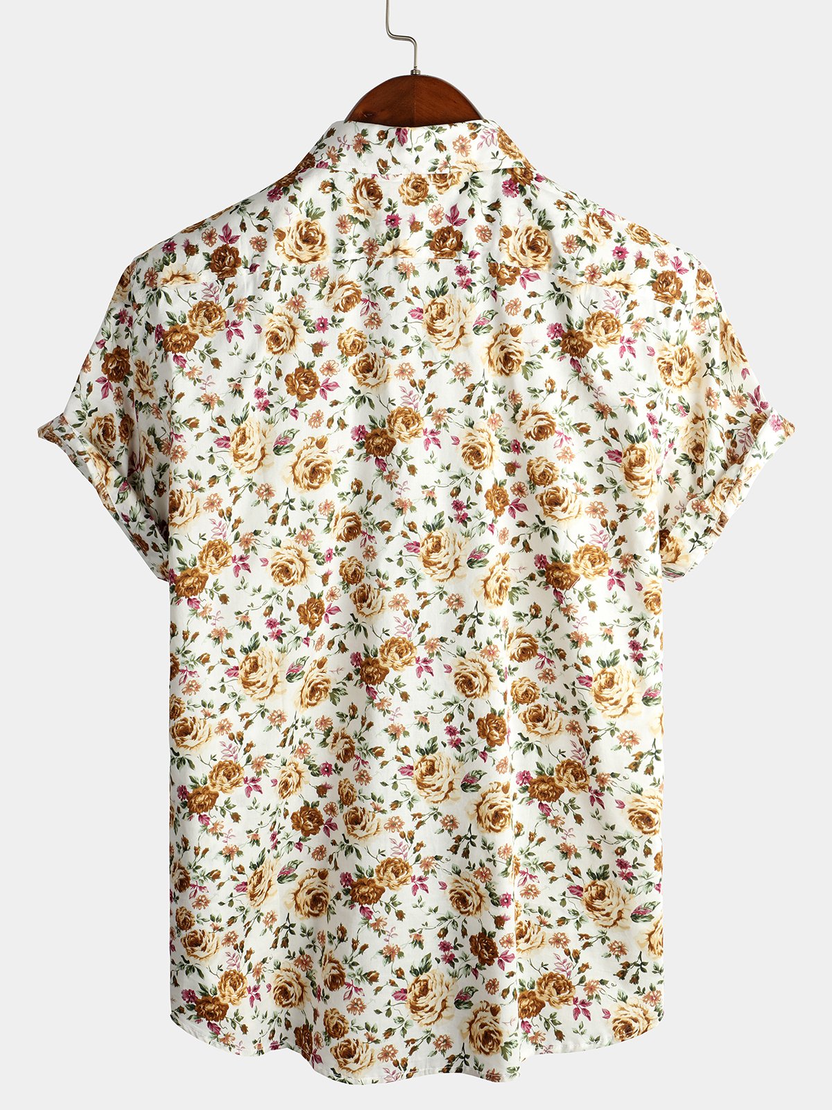 Chemise à manches courtes hawaïenne vintage florale d'été pour hommes