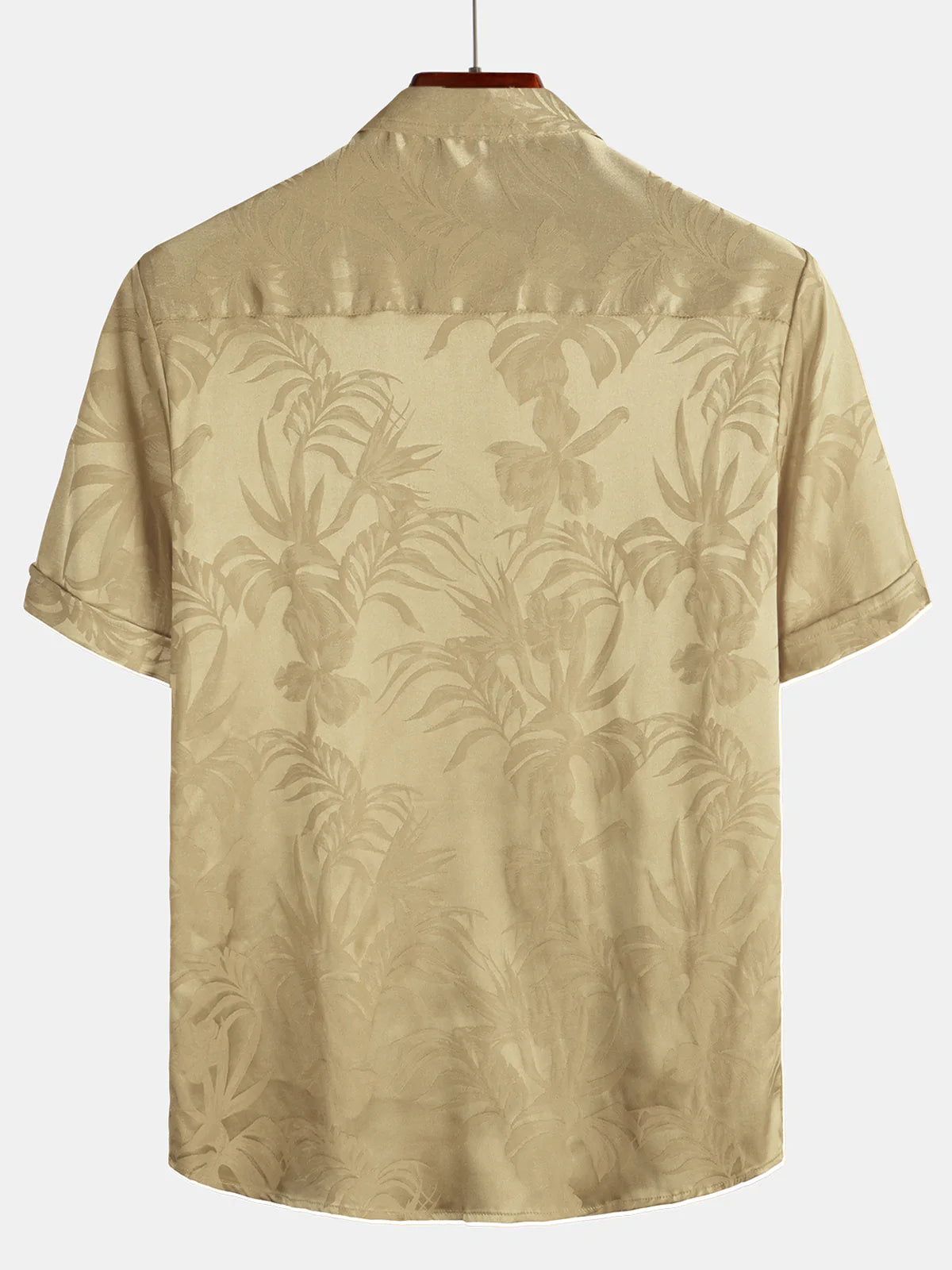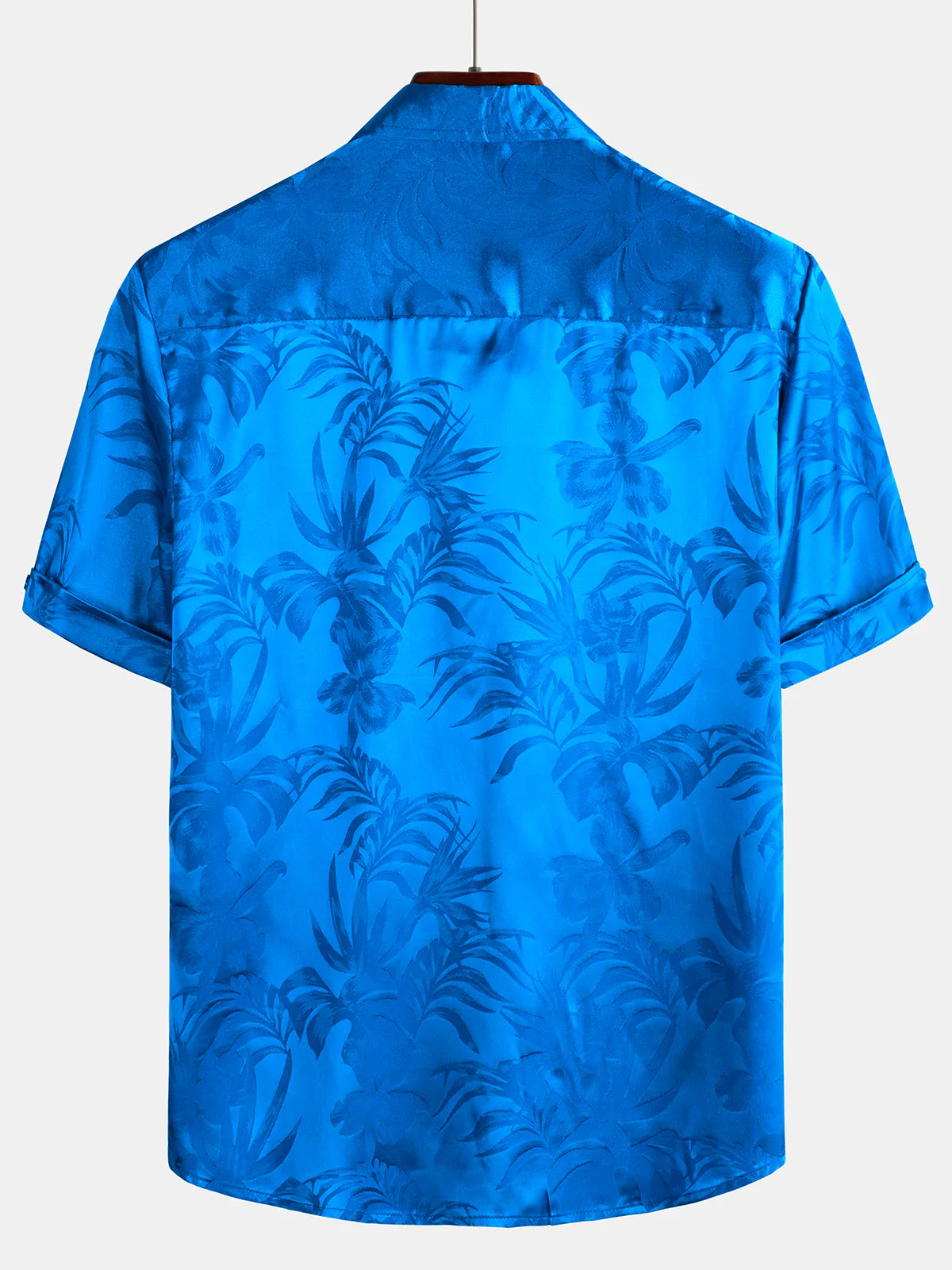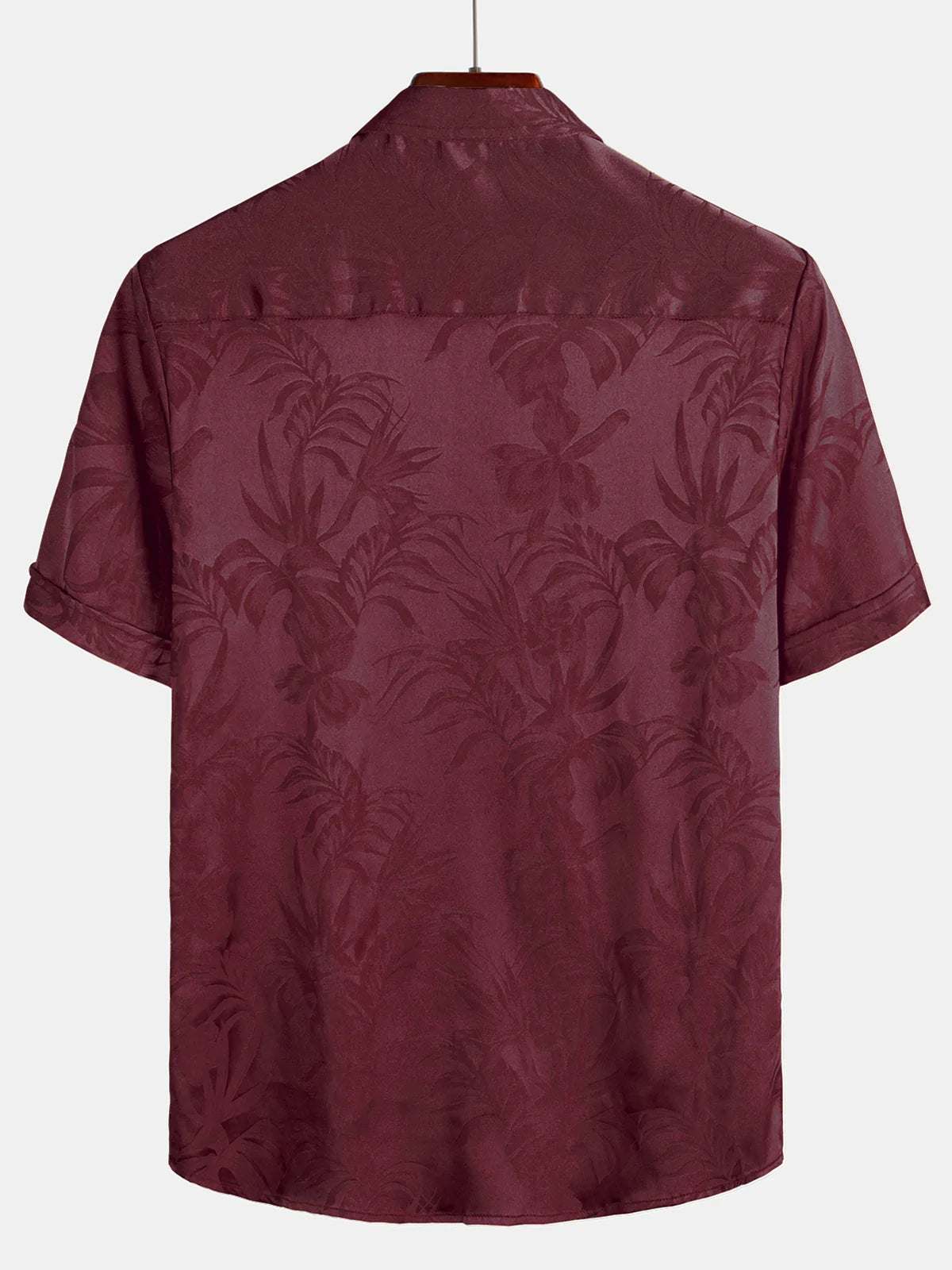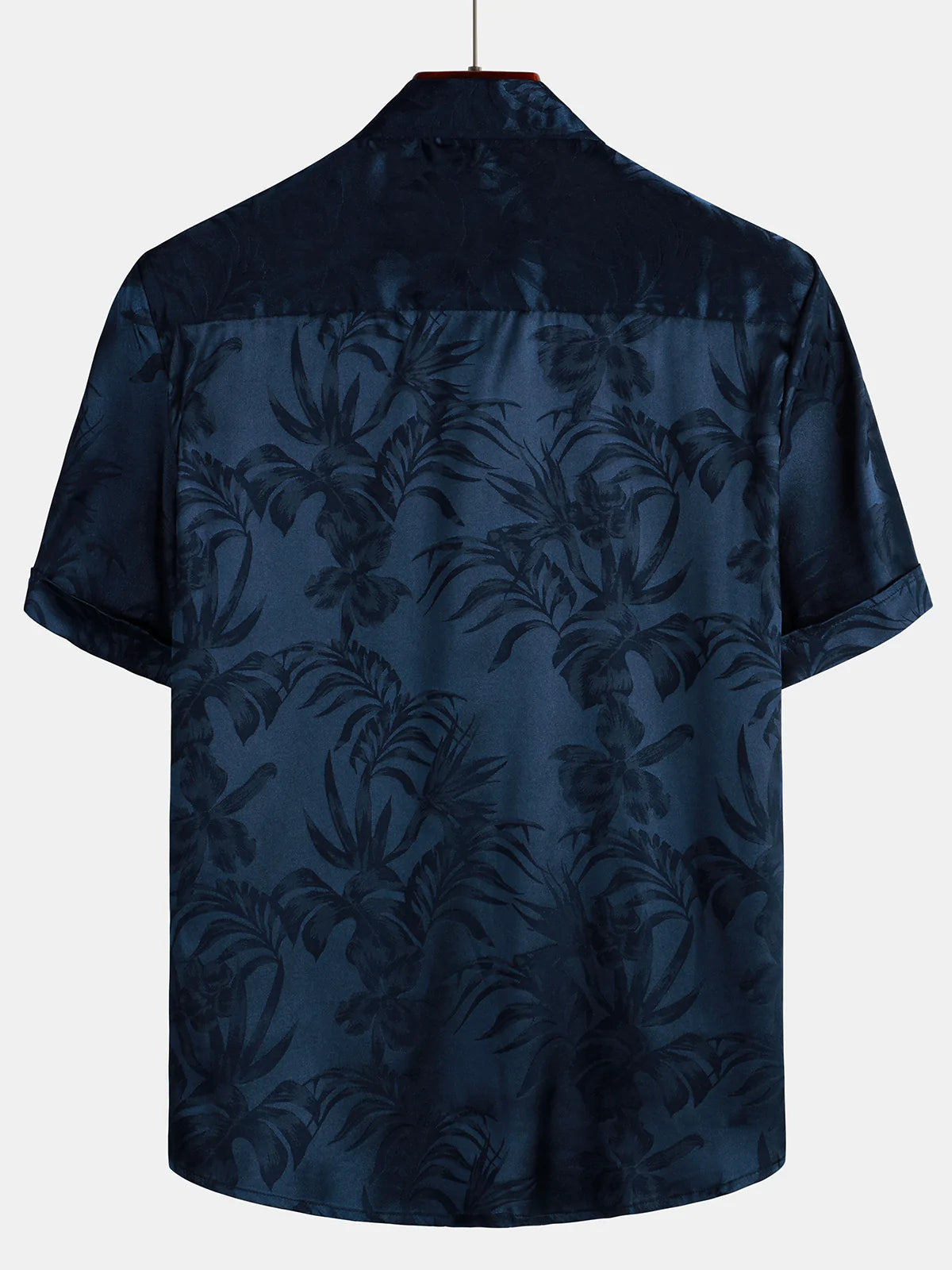 Hommes Jacquard Fleurs Bouton Up Poche Floral Été Cool À Manches Courtes Tops Plage Vacances Chemise