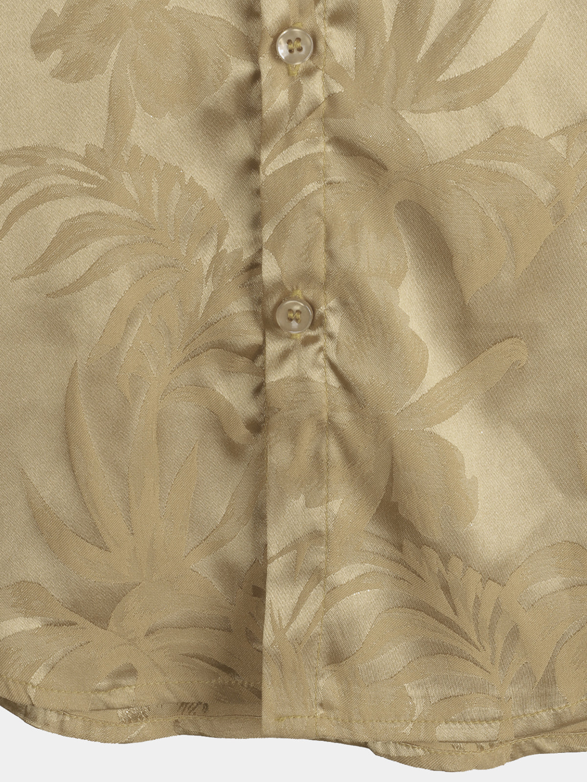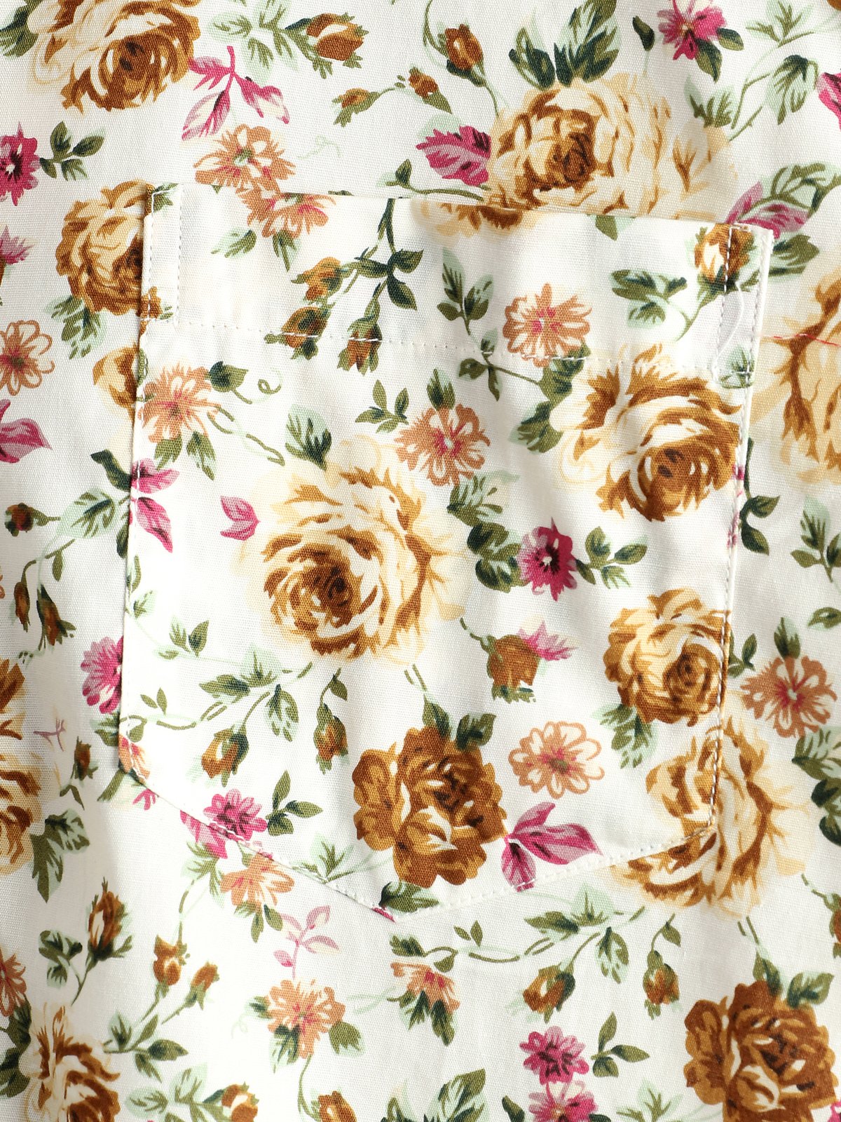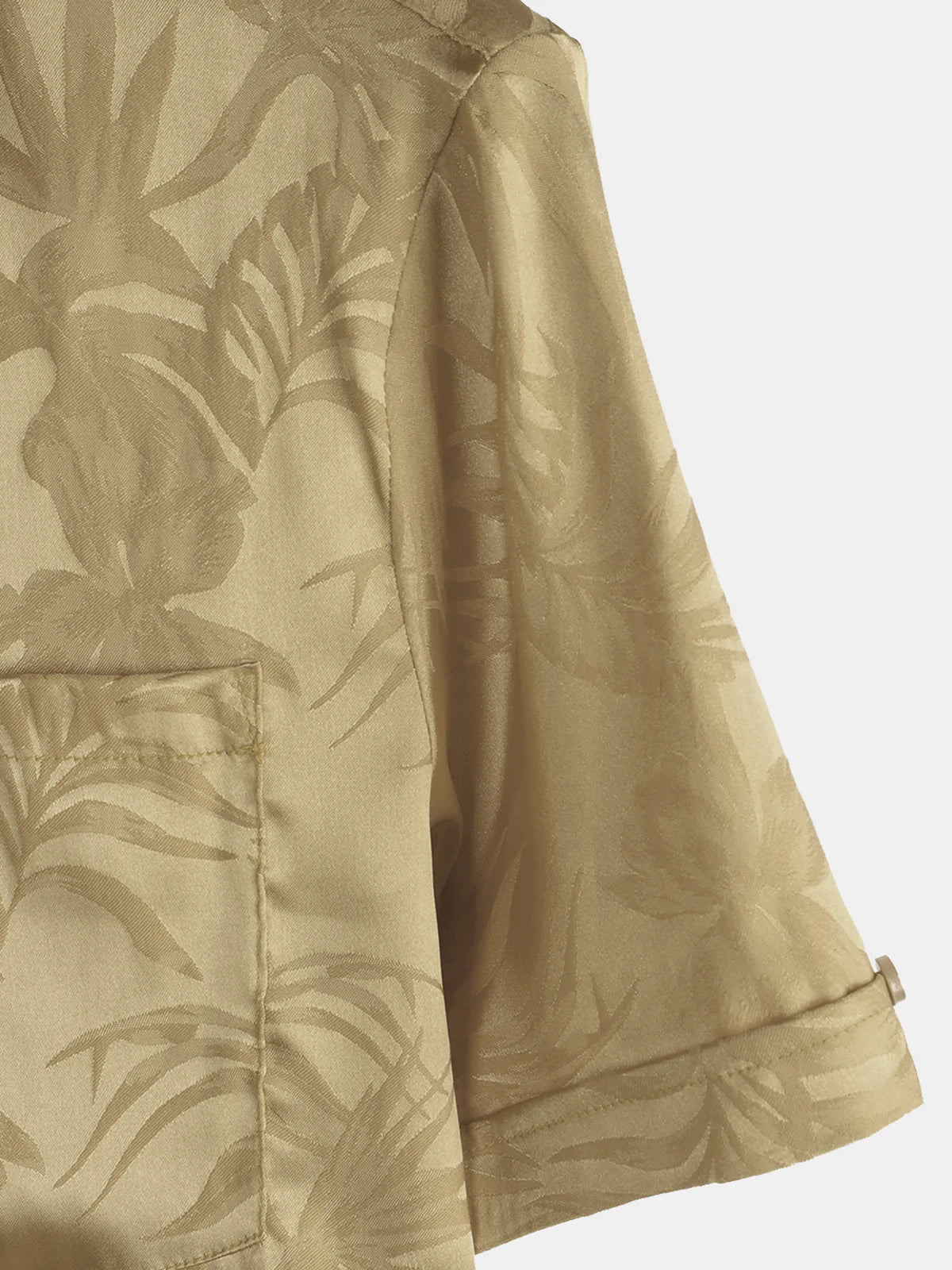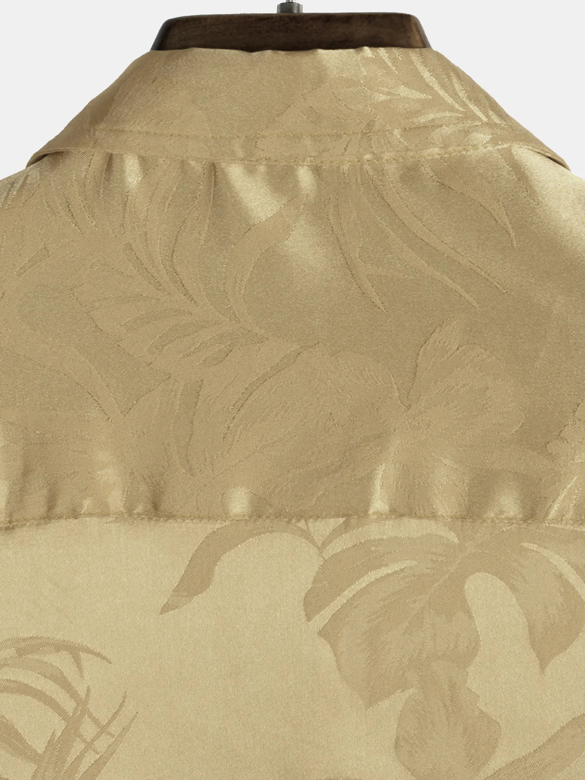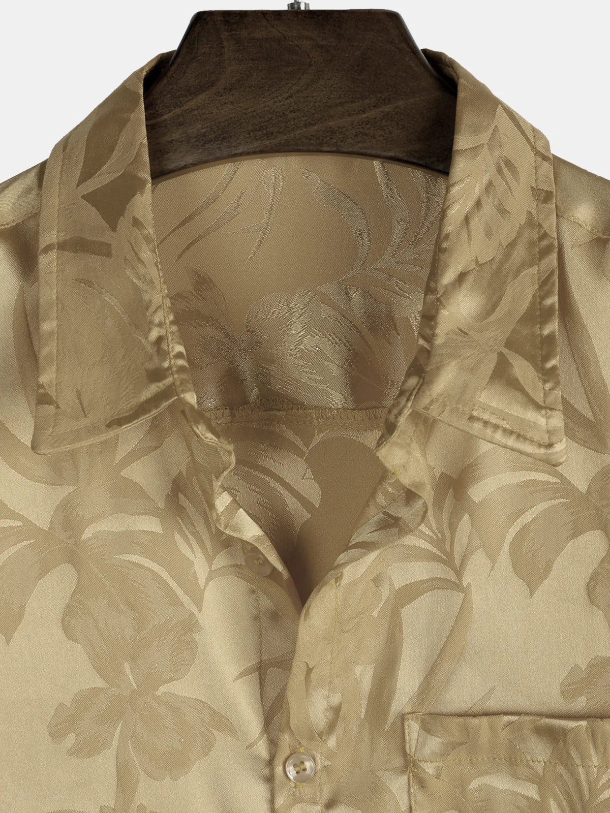 Hommes Jacquard Fleurs Bouton Up Poche Floral Été Cool À Manches Courtes Tops Plage Vacances Chemise