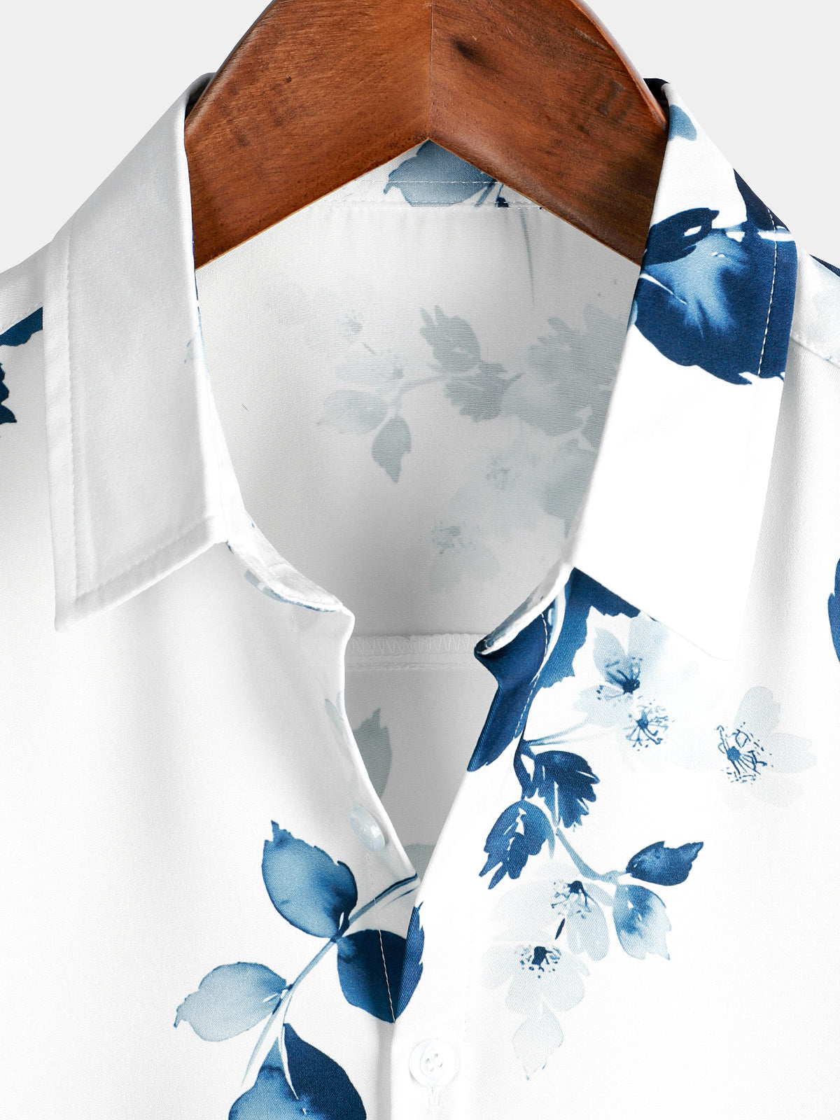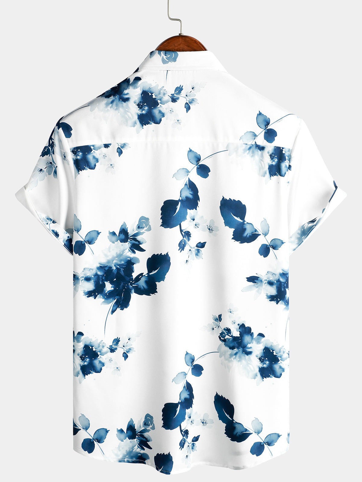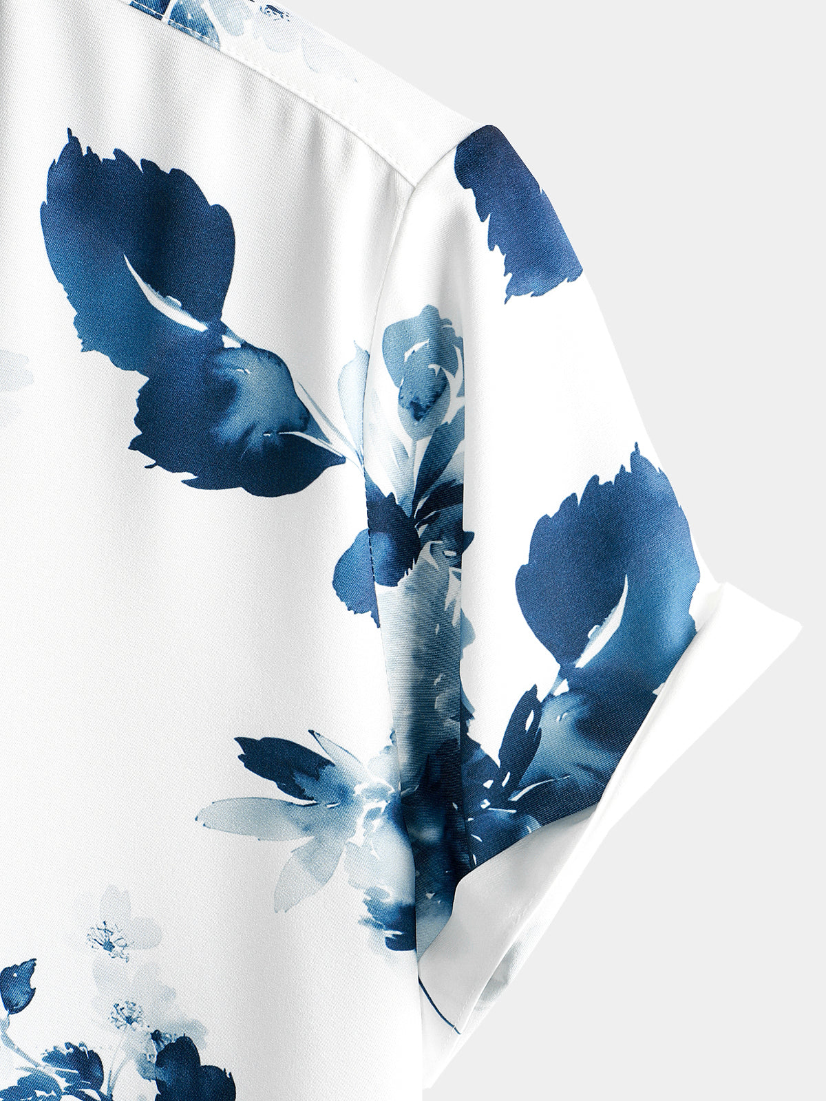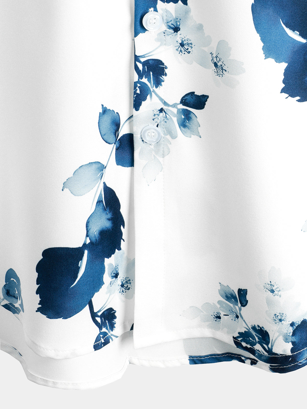 Chemise de croisière d'été boutonnée à manches courtes à imprimé fleuri pour hommes