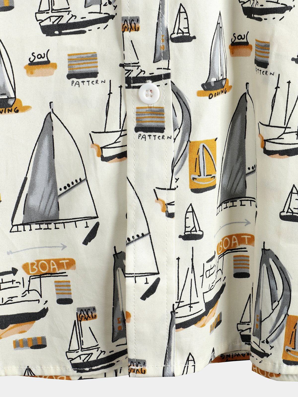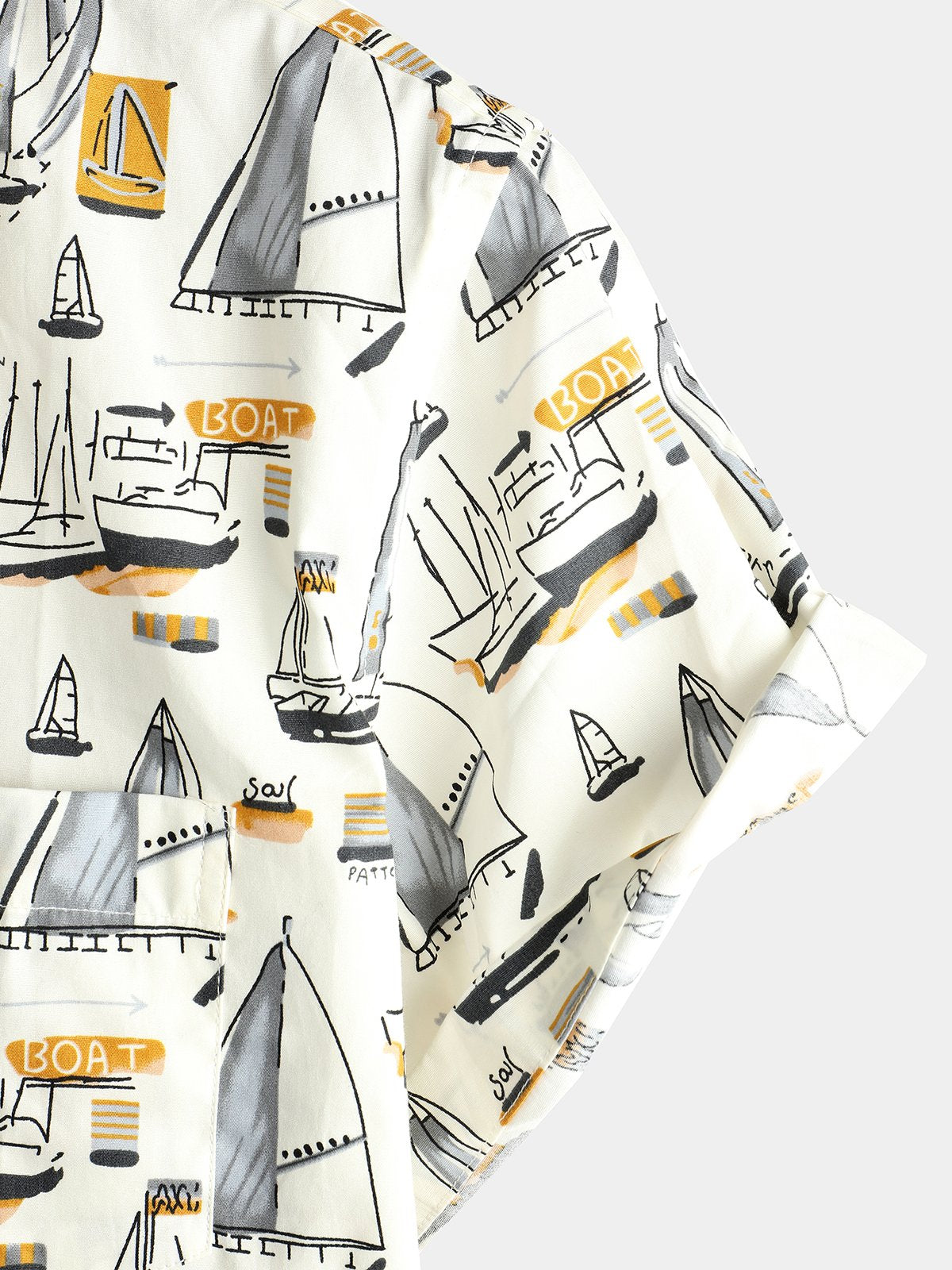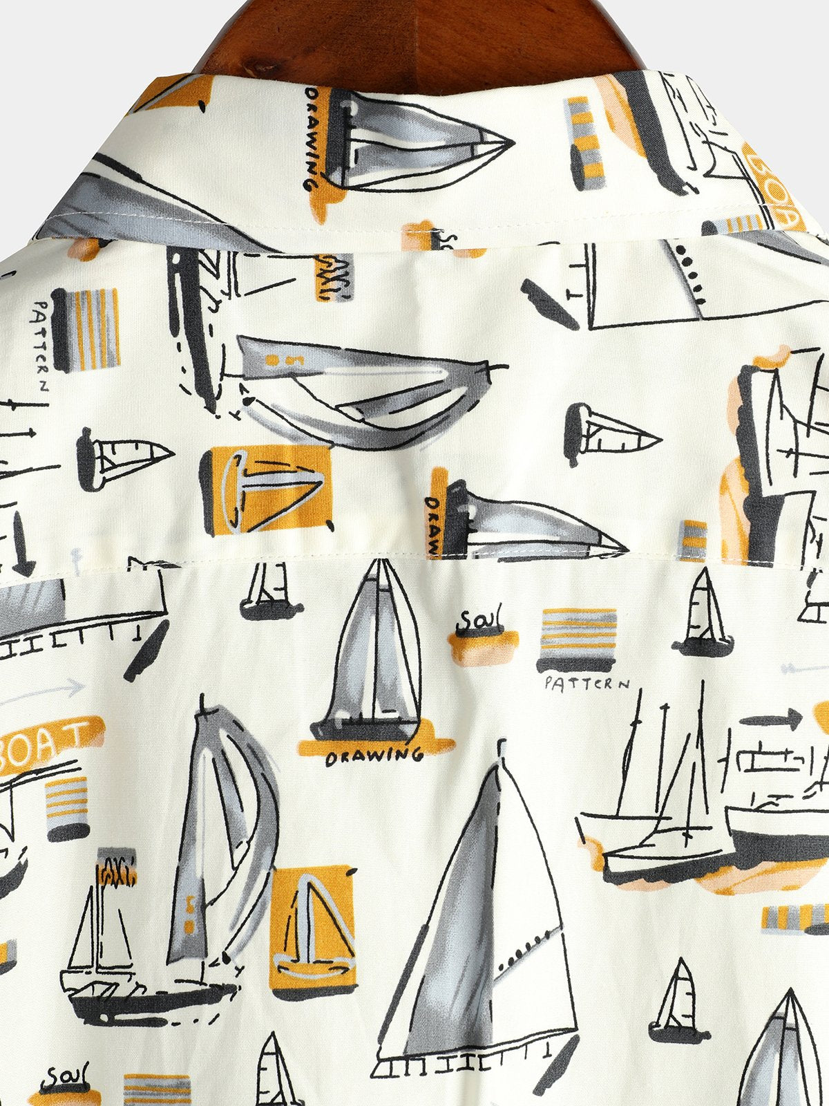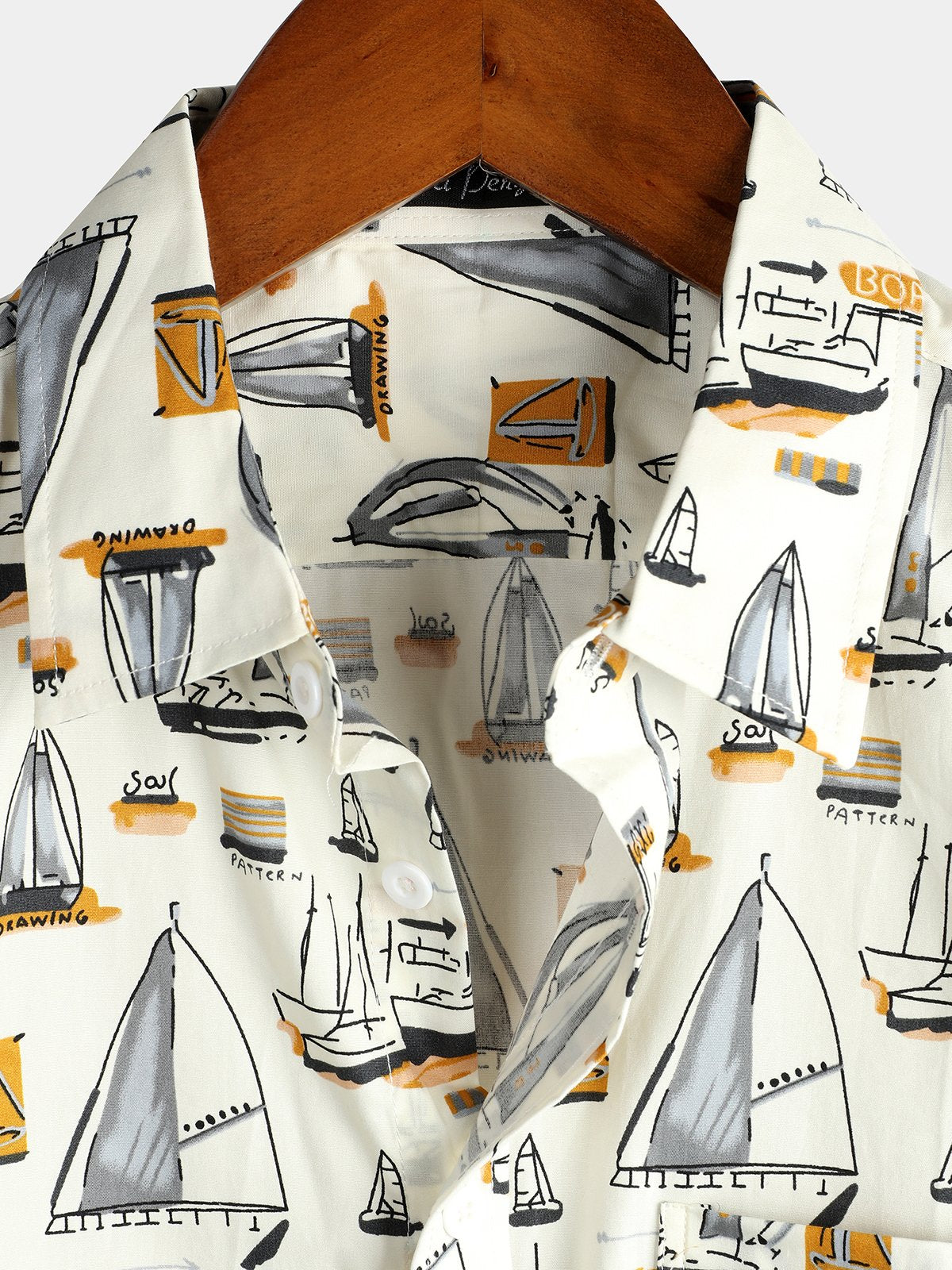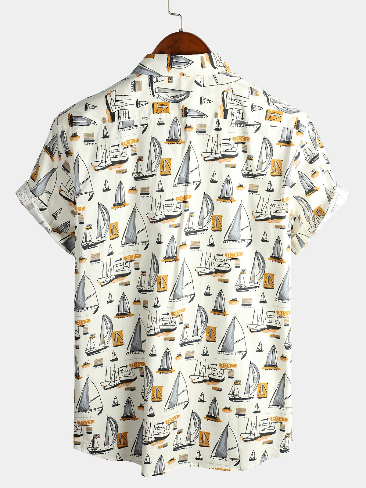 Chemise de croisière d'été boutonnée à manches courtes à imprimé fleuri pour hommes