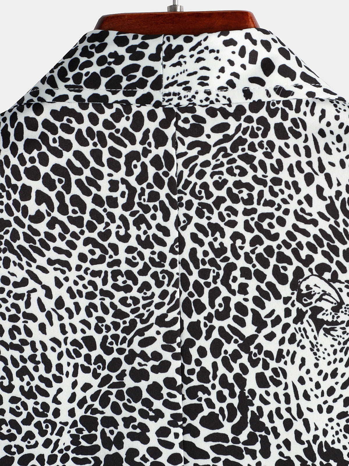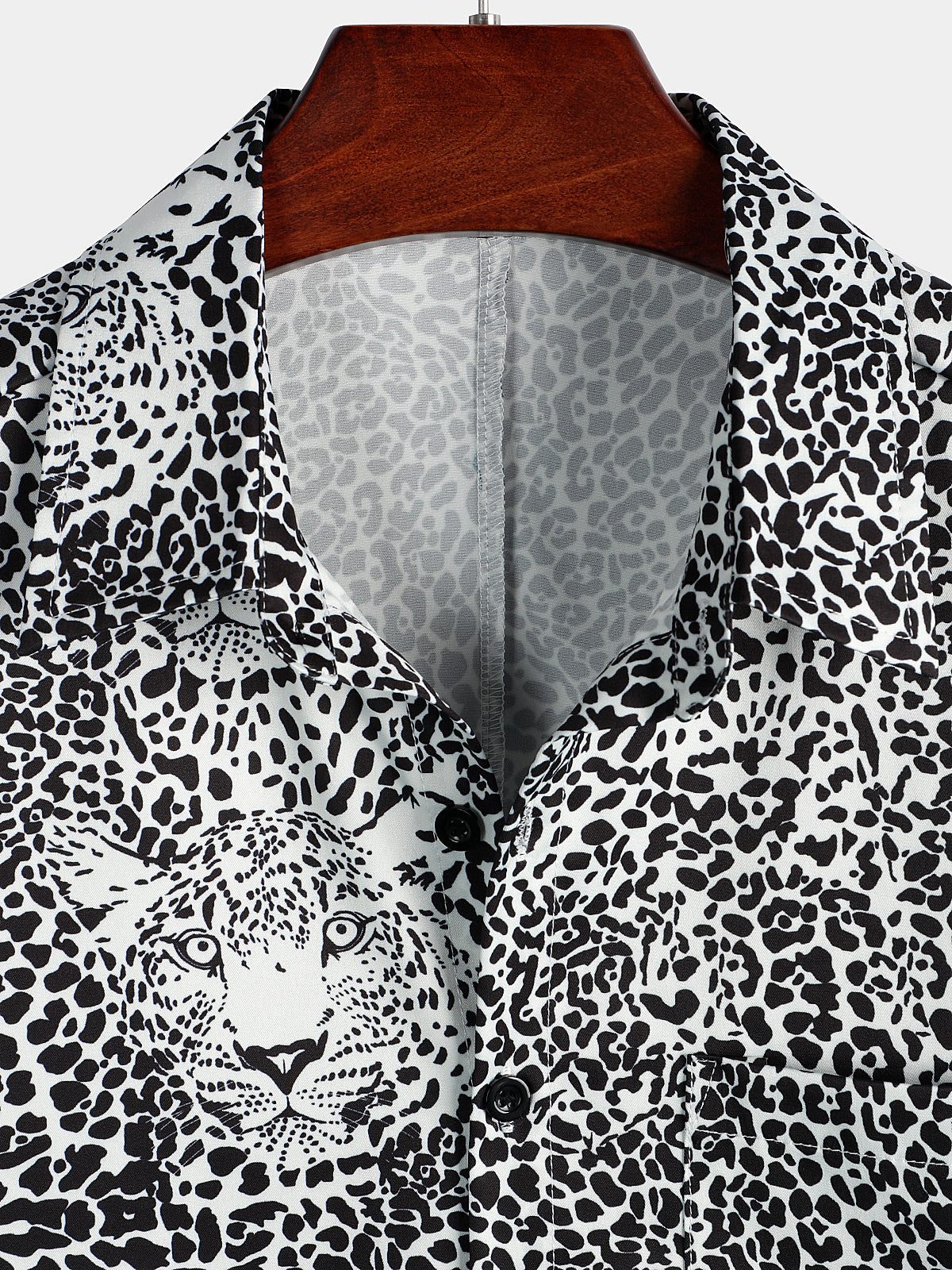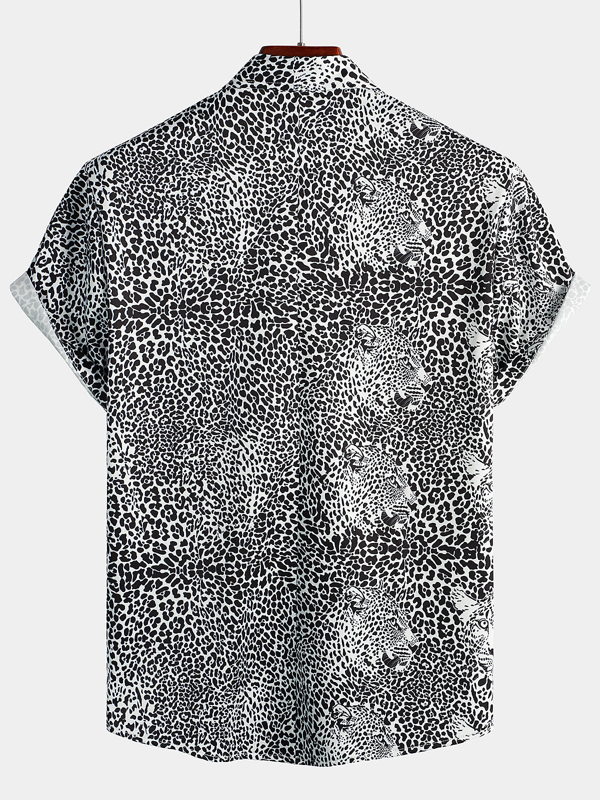 Chemise hawaïenne à manches courtes et imprimé léopard pour hommes