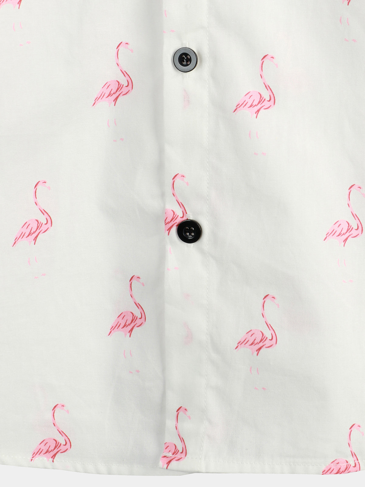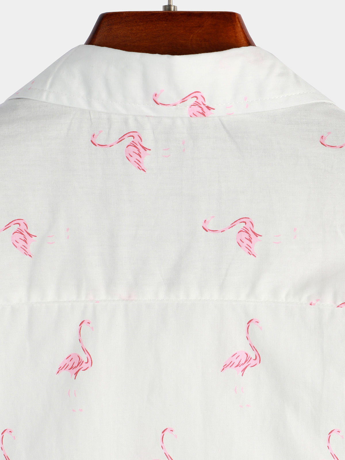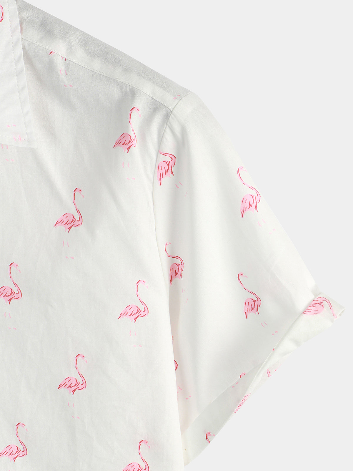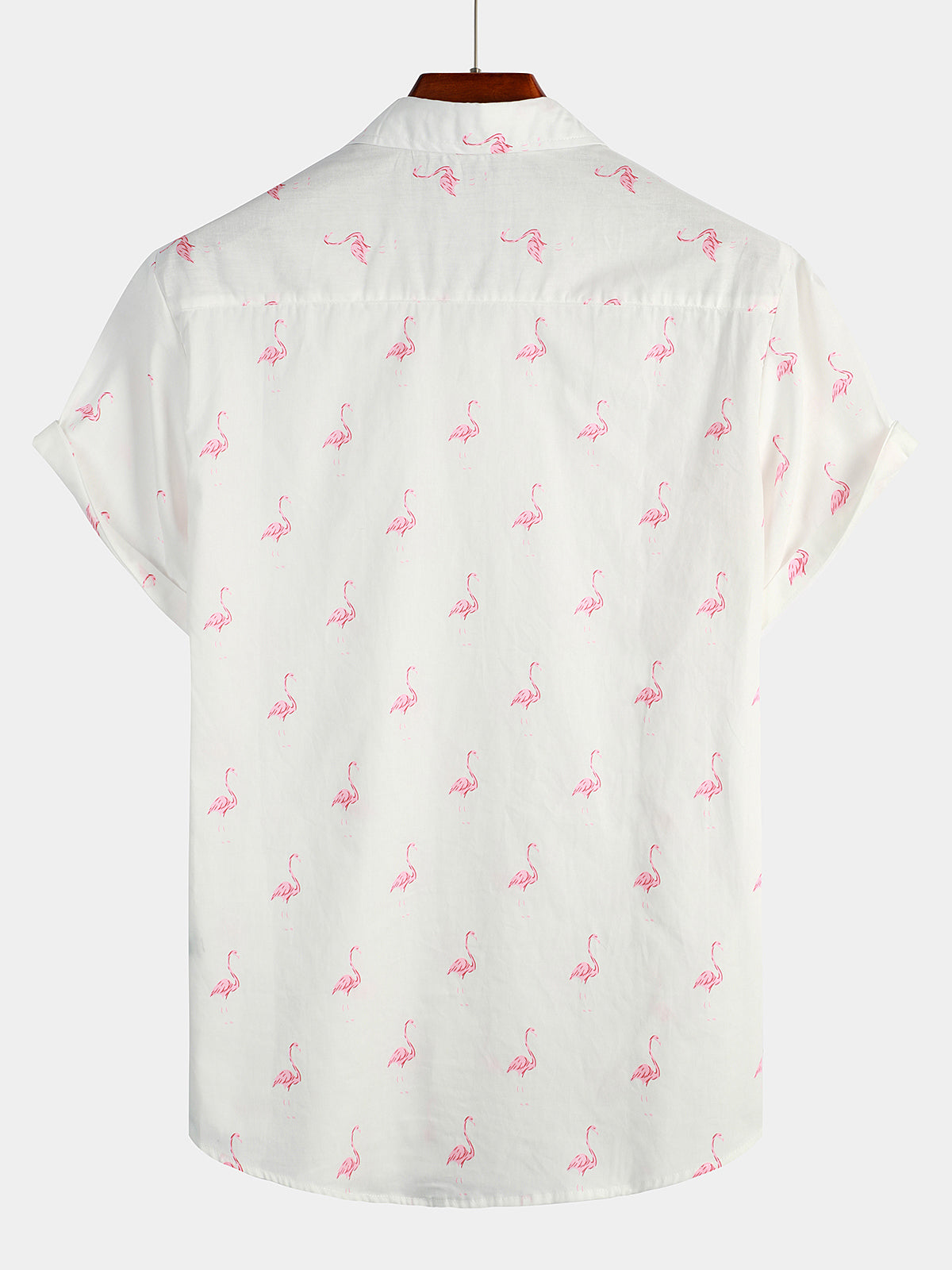 Chemise boutonnée à manches courtes à imprimé flamant rose pour homme
