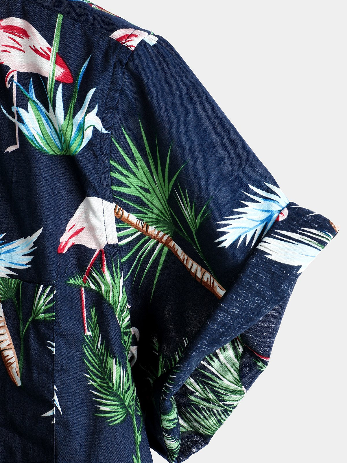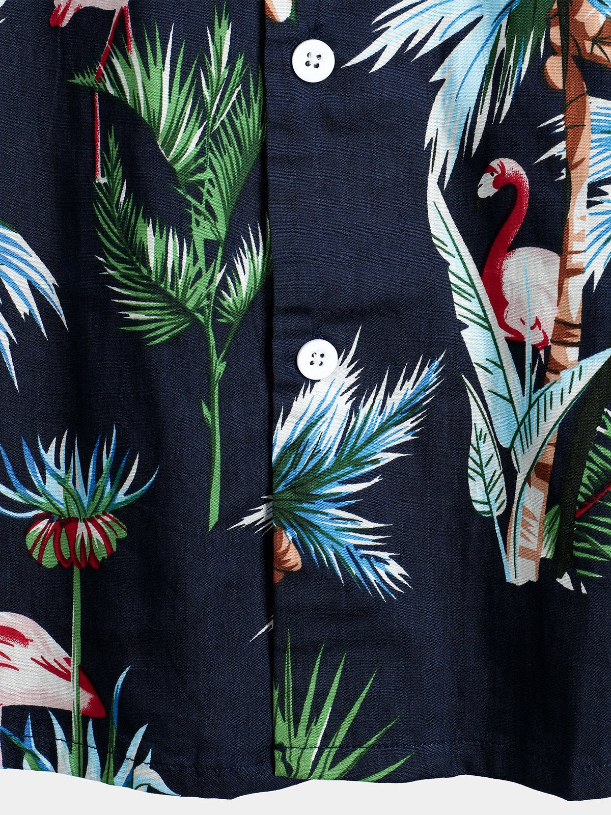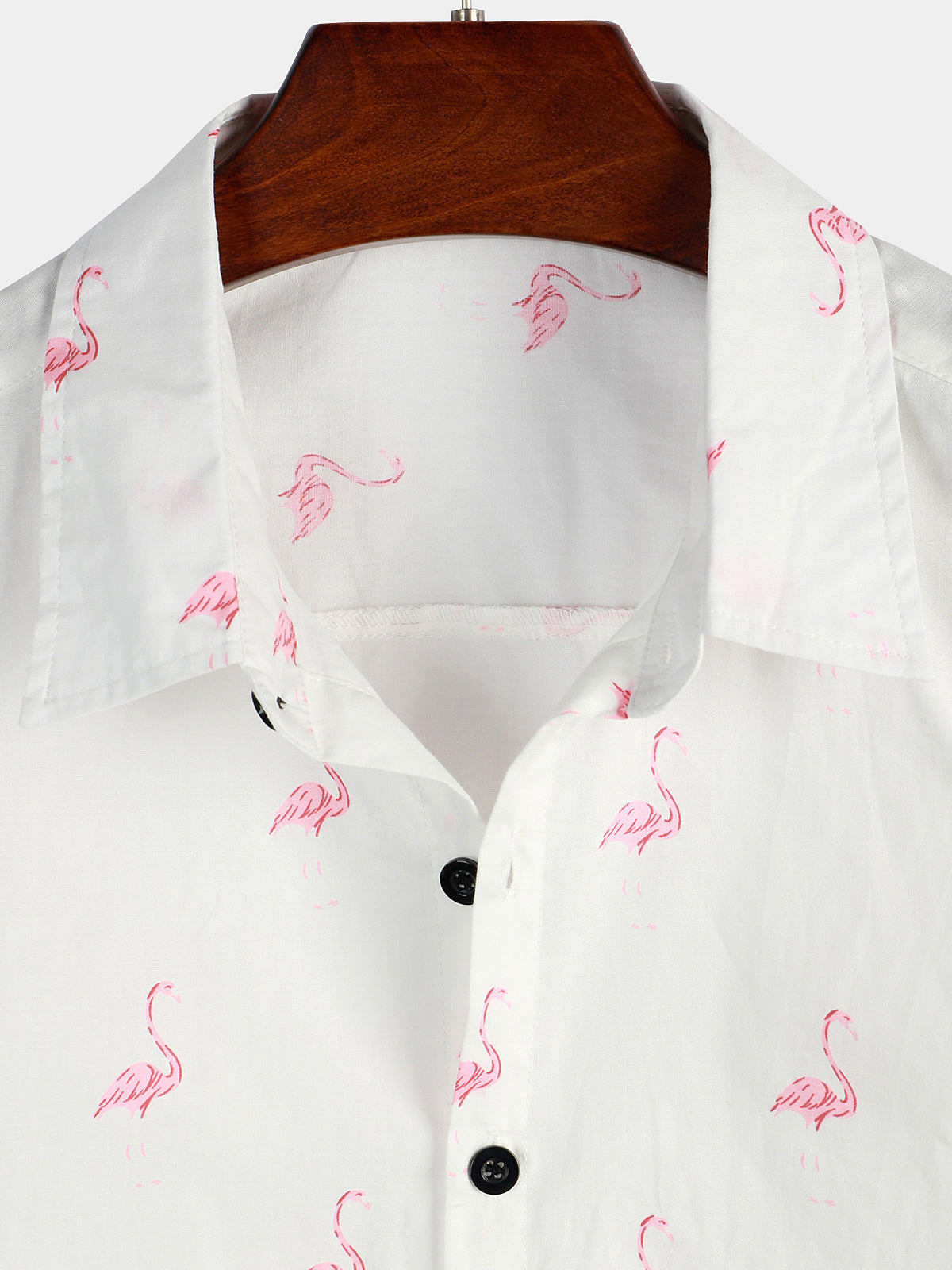 Chemise boutonnée à manches courtes à imprimé flamant rose pour homme
