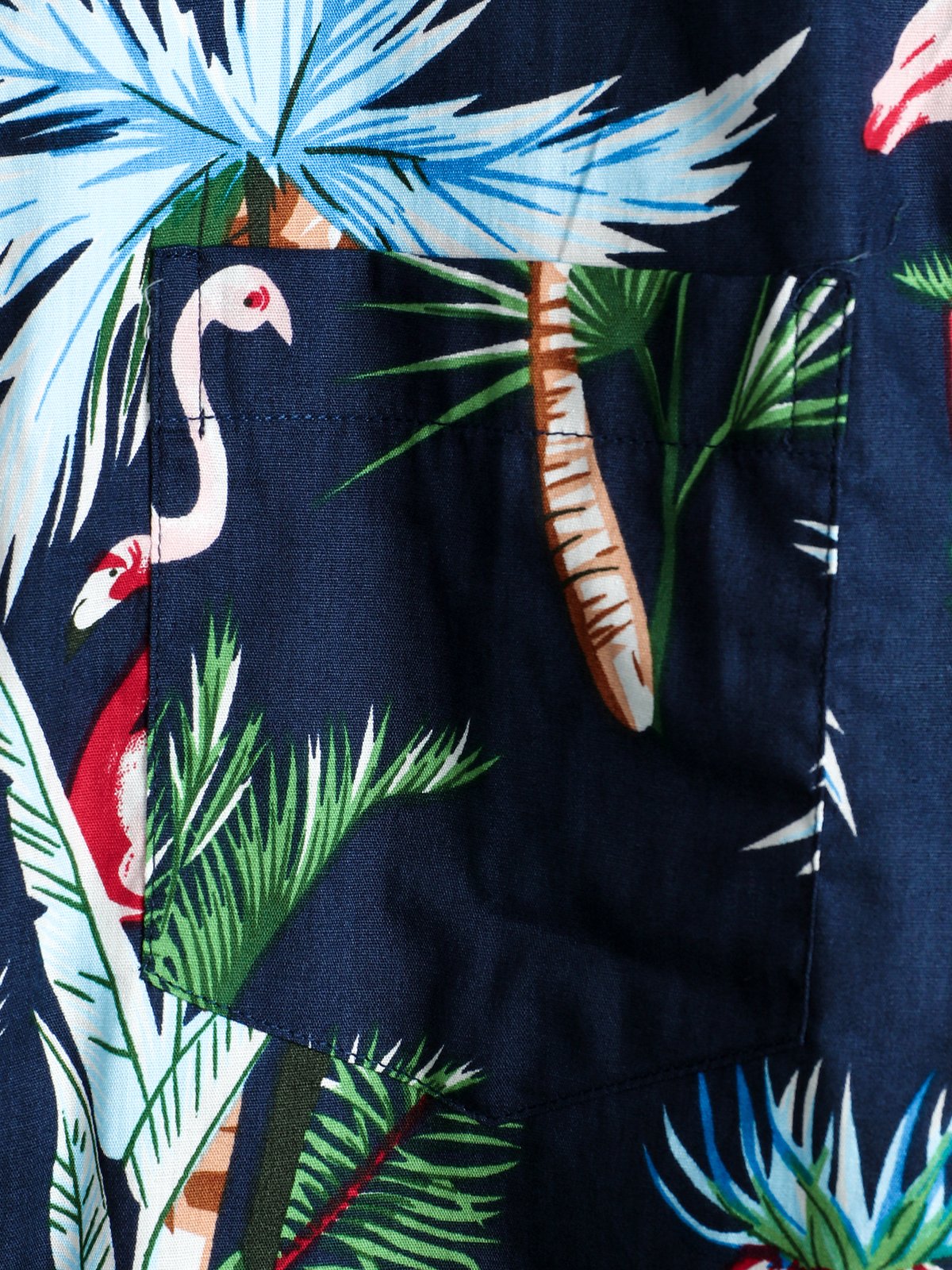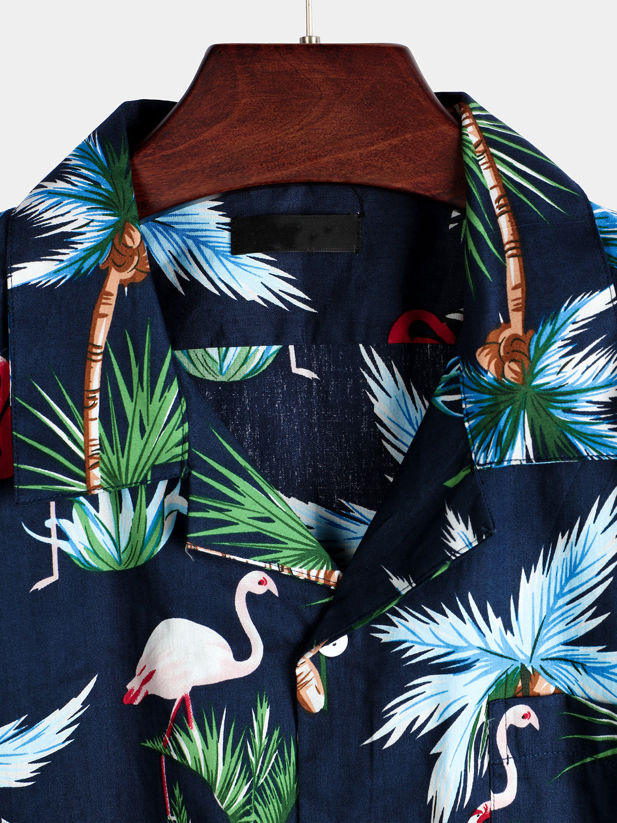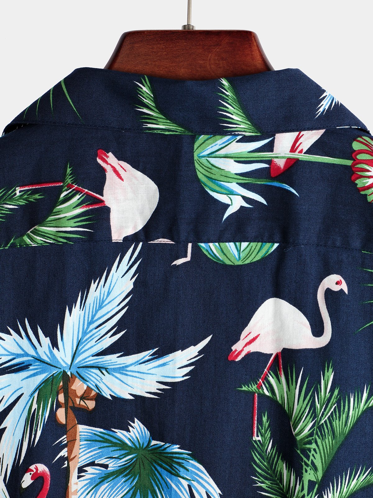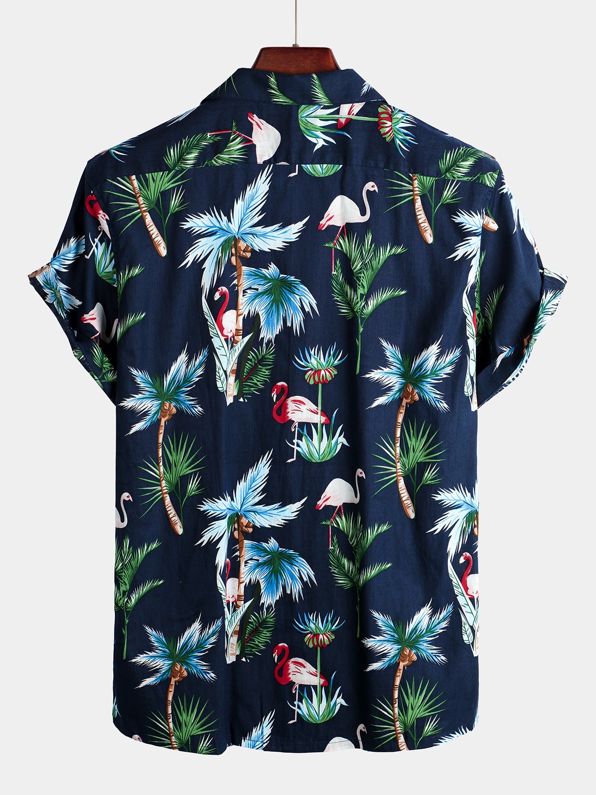 Chemise boutonnée à manches courtes à imprimé flamant rose pour homme