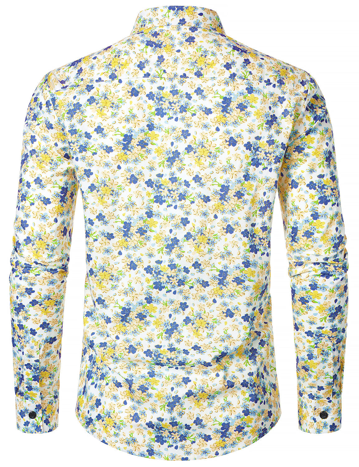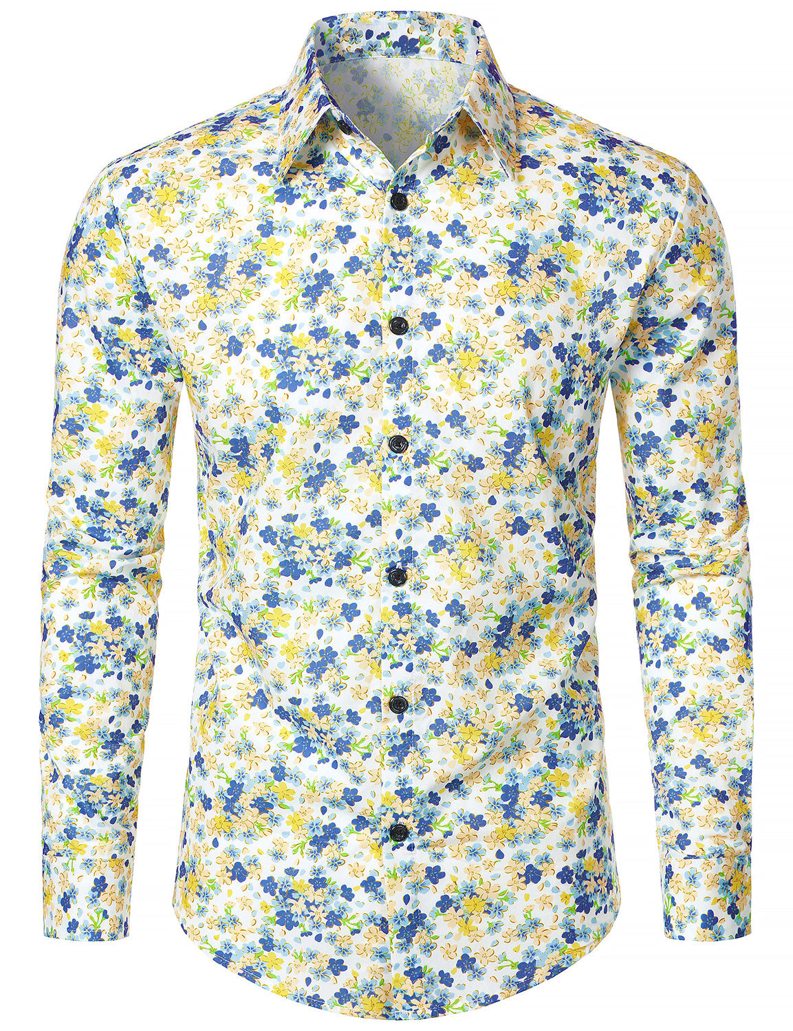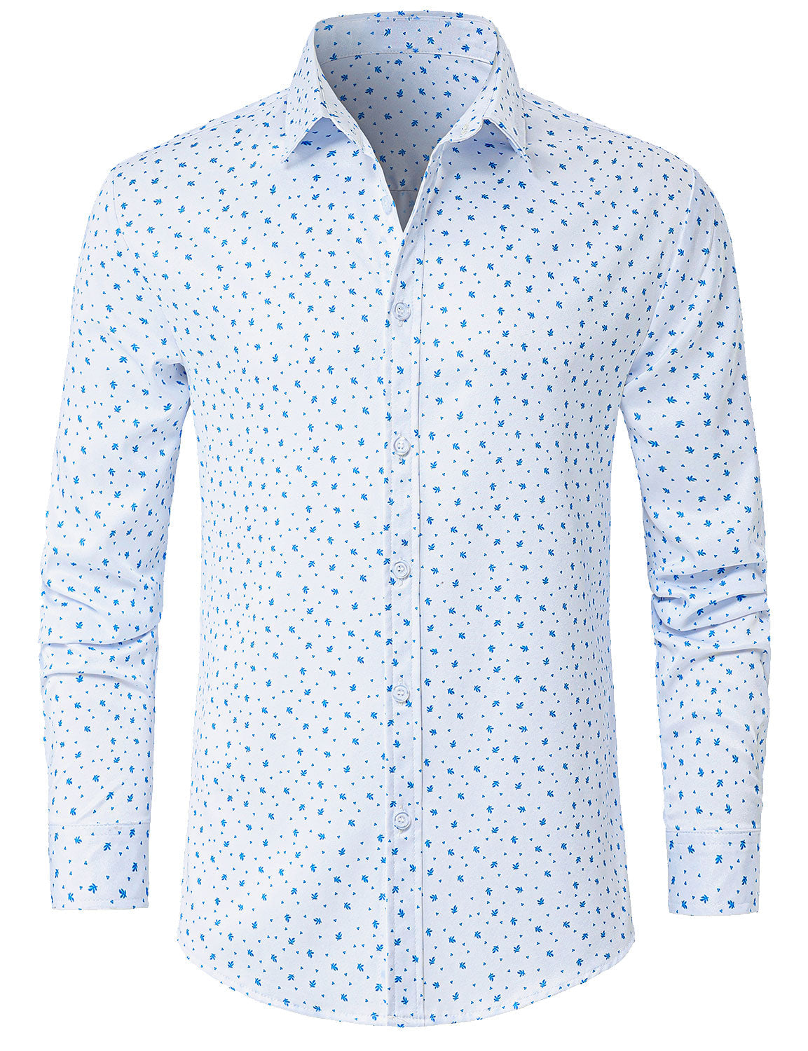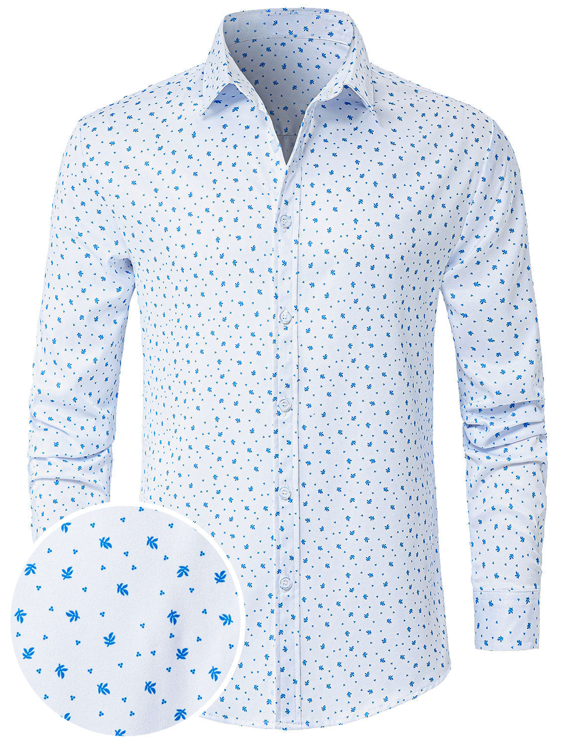 Chemise à manches longues en coton respirant blanc à imprimé floral pour homme