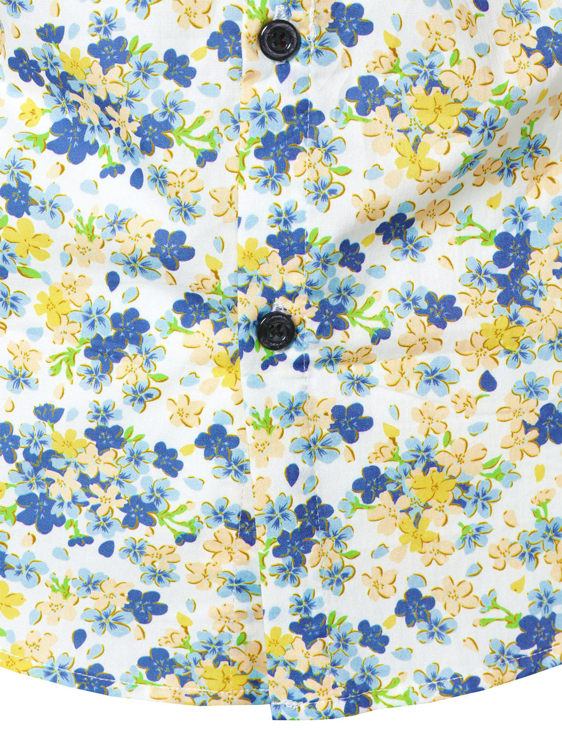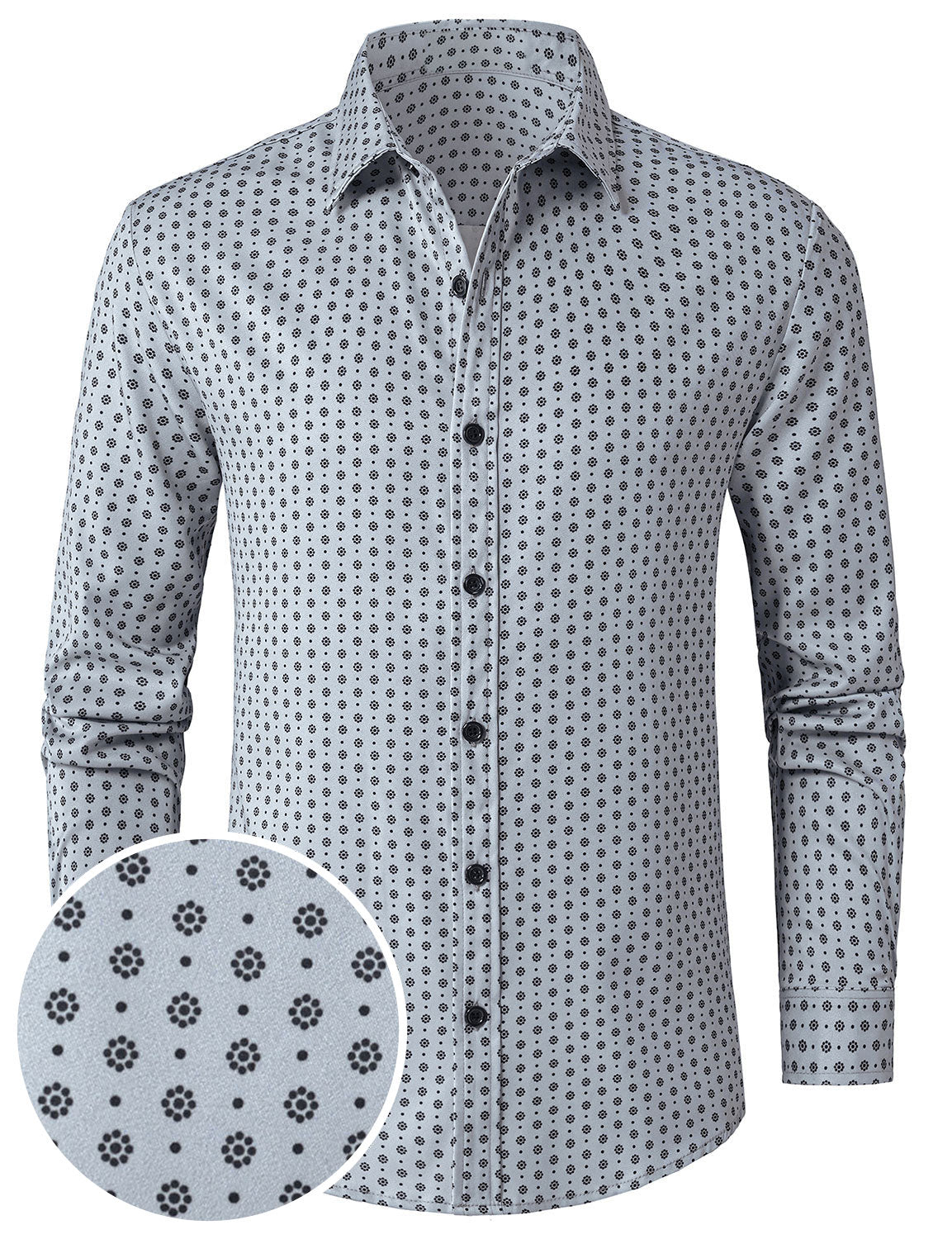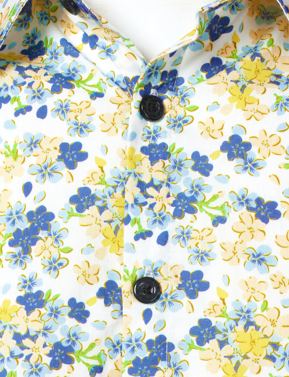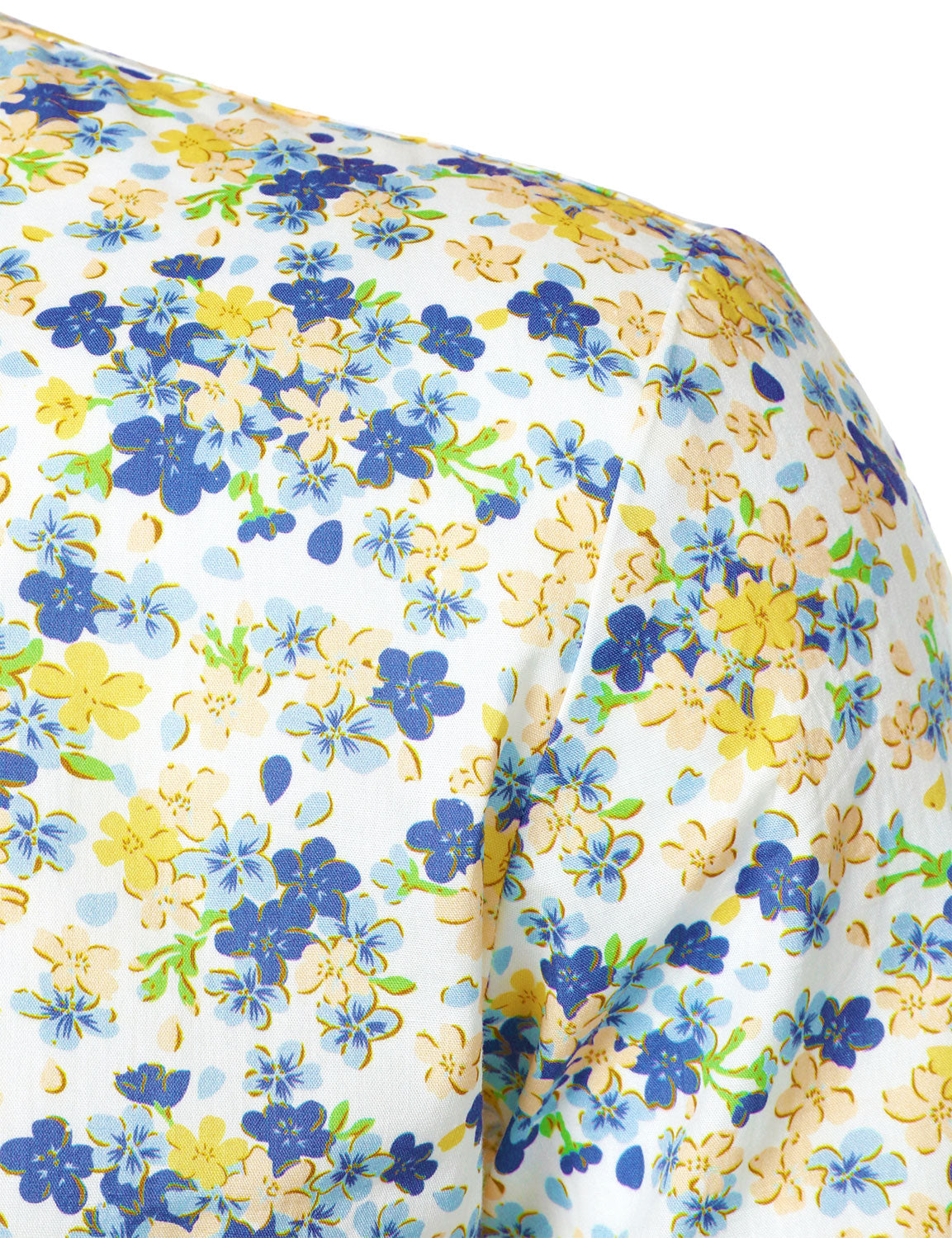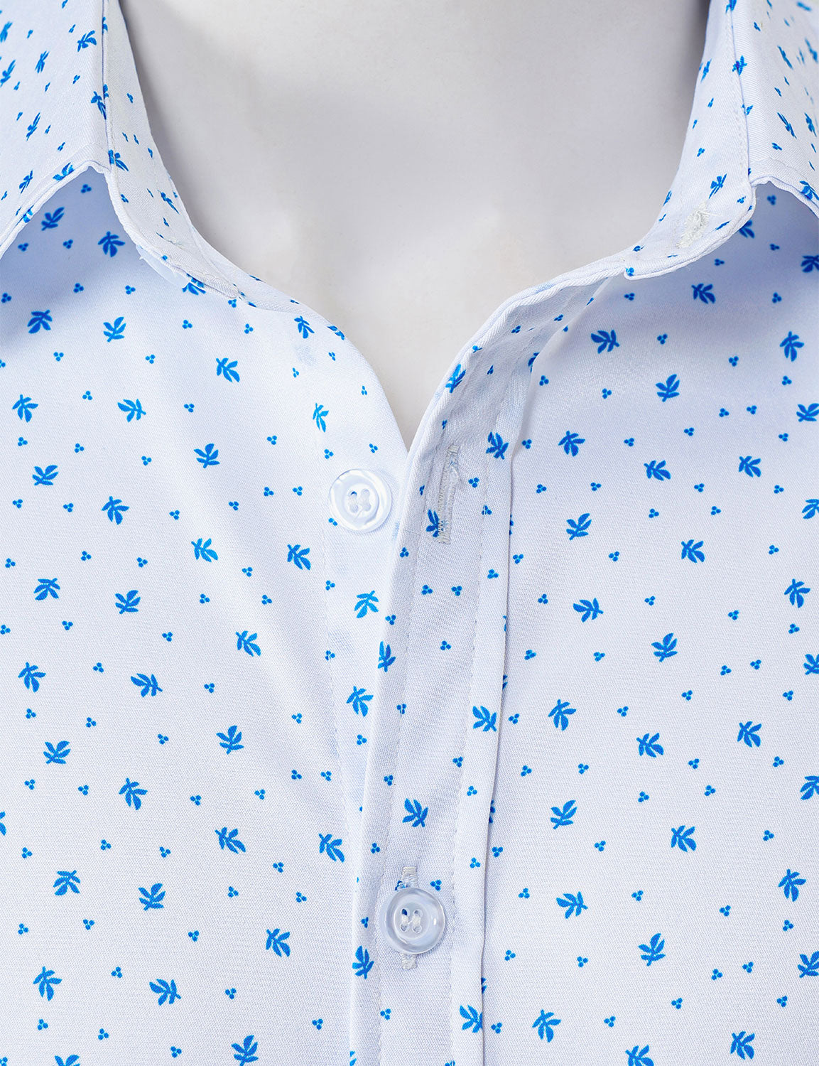 Chemise à manches longues en coton respirant blanc à imprimé floral pour homme