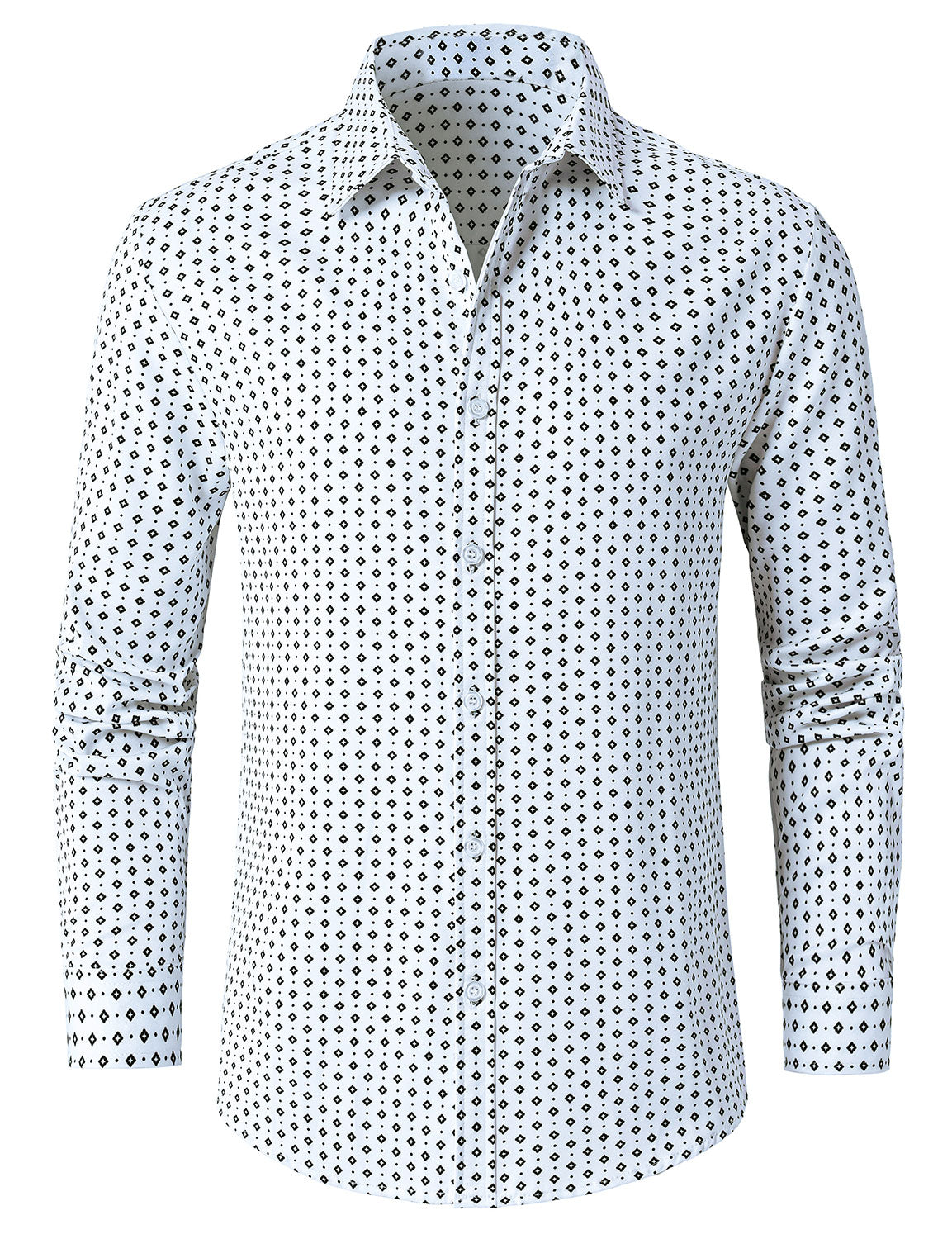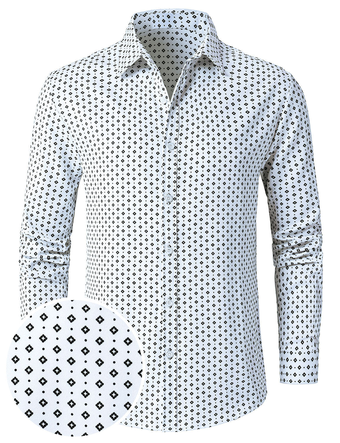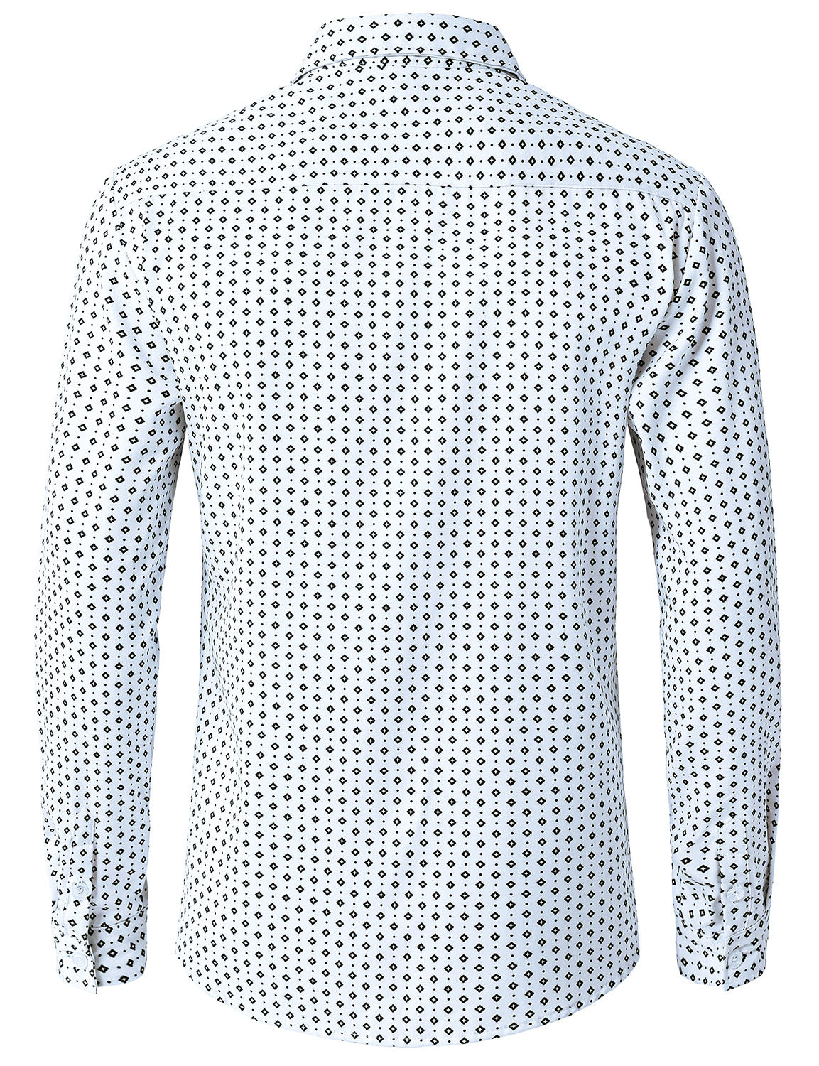 Chemise blanche à manches longues et imprimé géométrique rétro pour homme