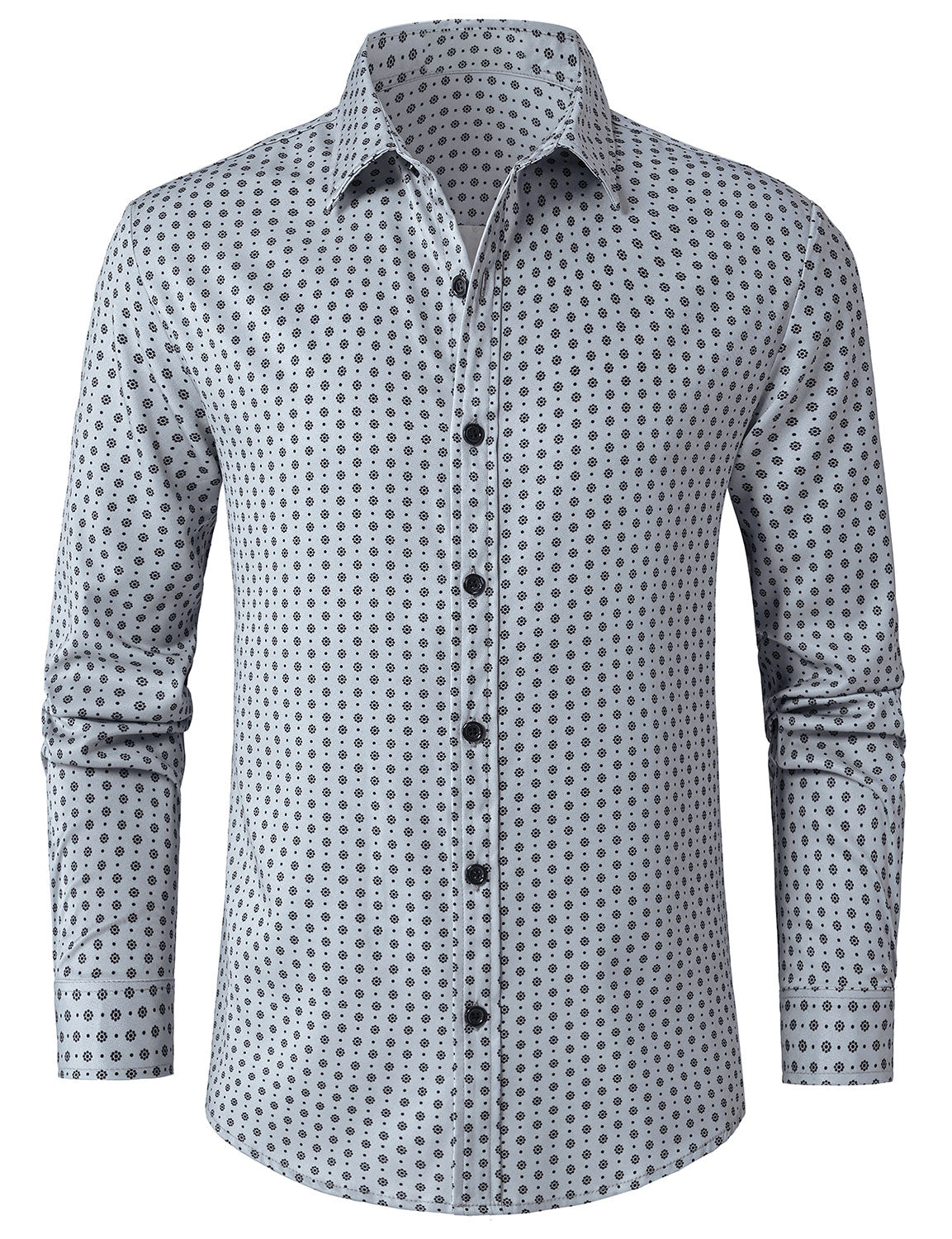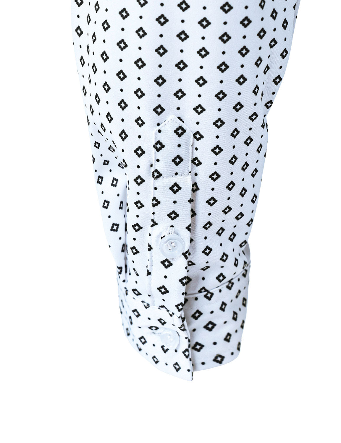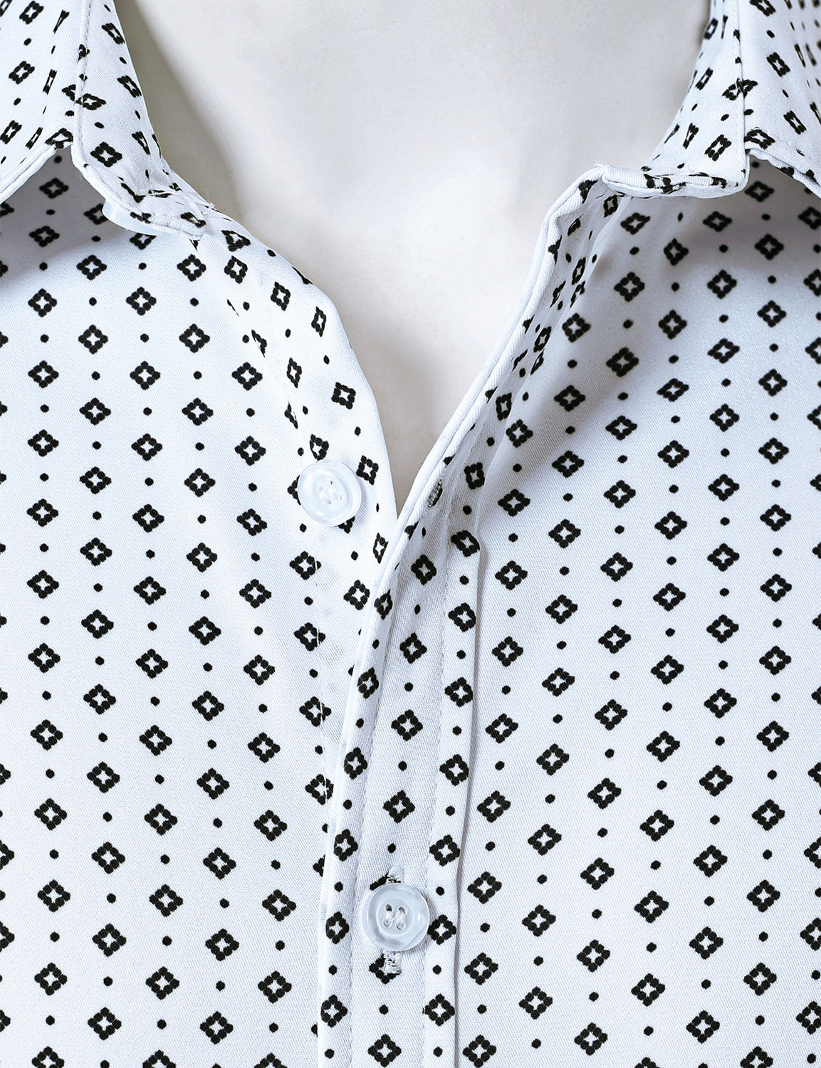 Chemise blanche à manches longues et imprimé géométrique rétro pour homme