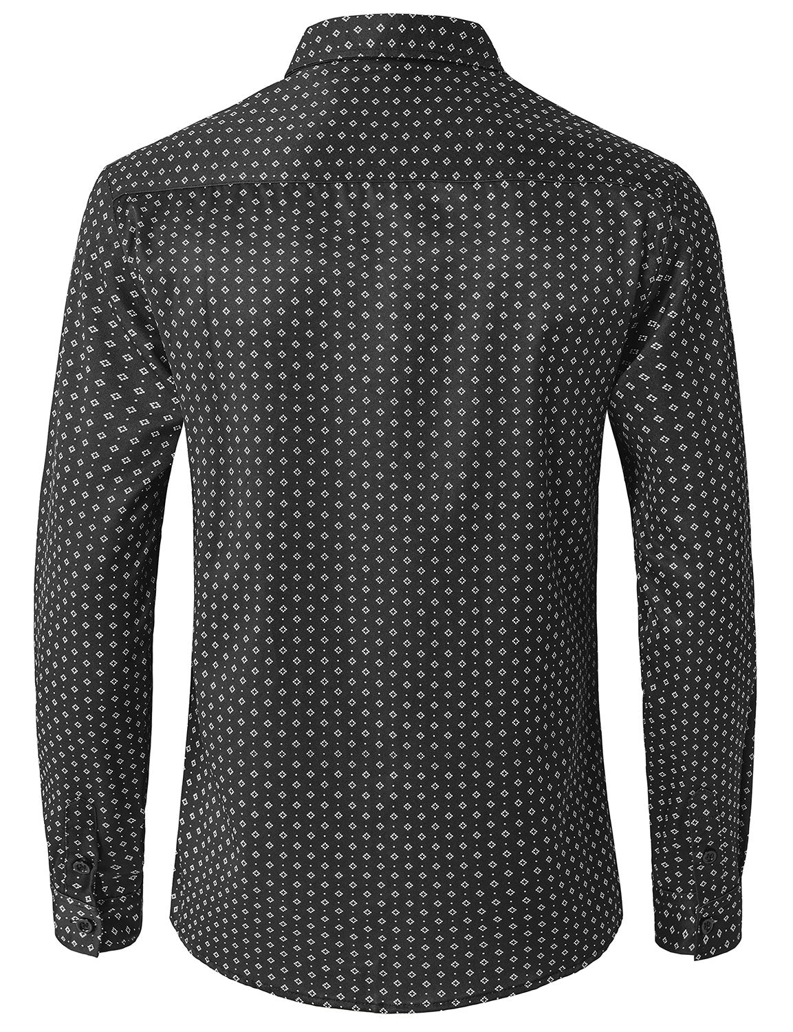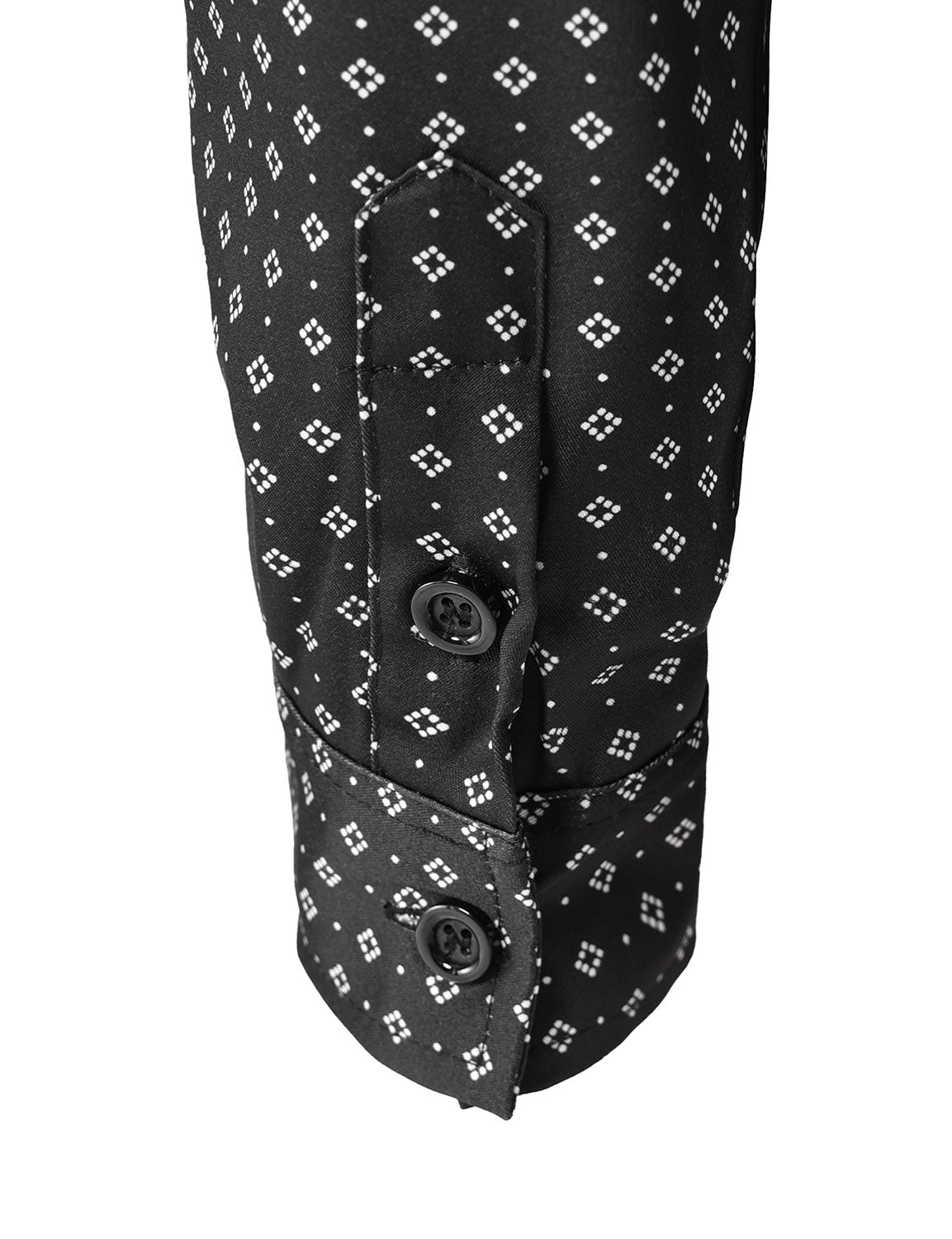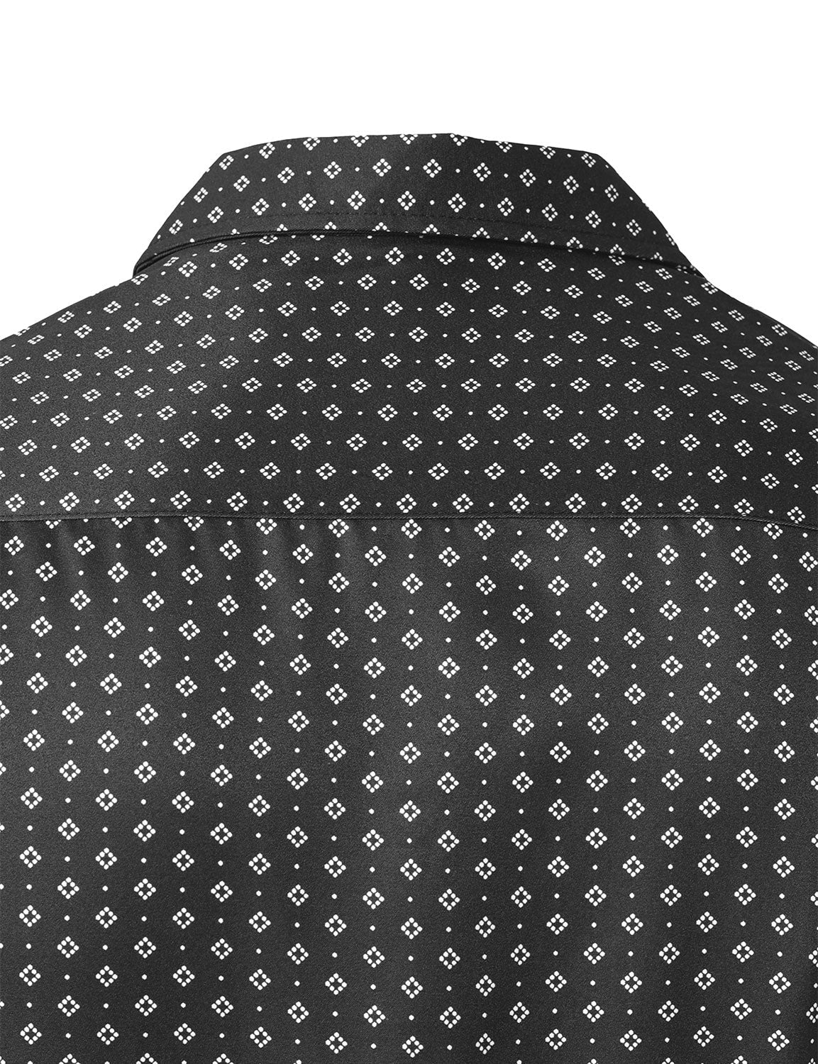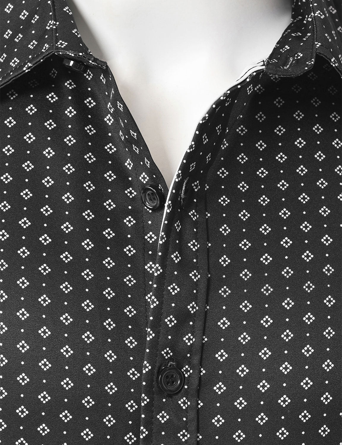 Chemise à manches longues noire à imprimé géométrique rétro pour homme