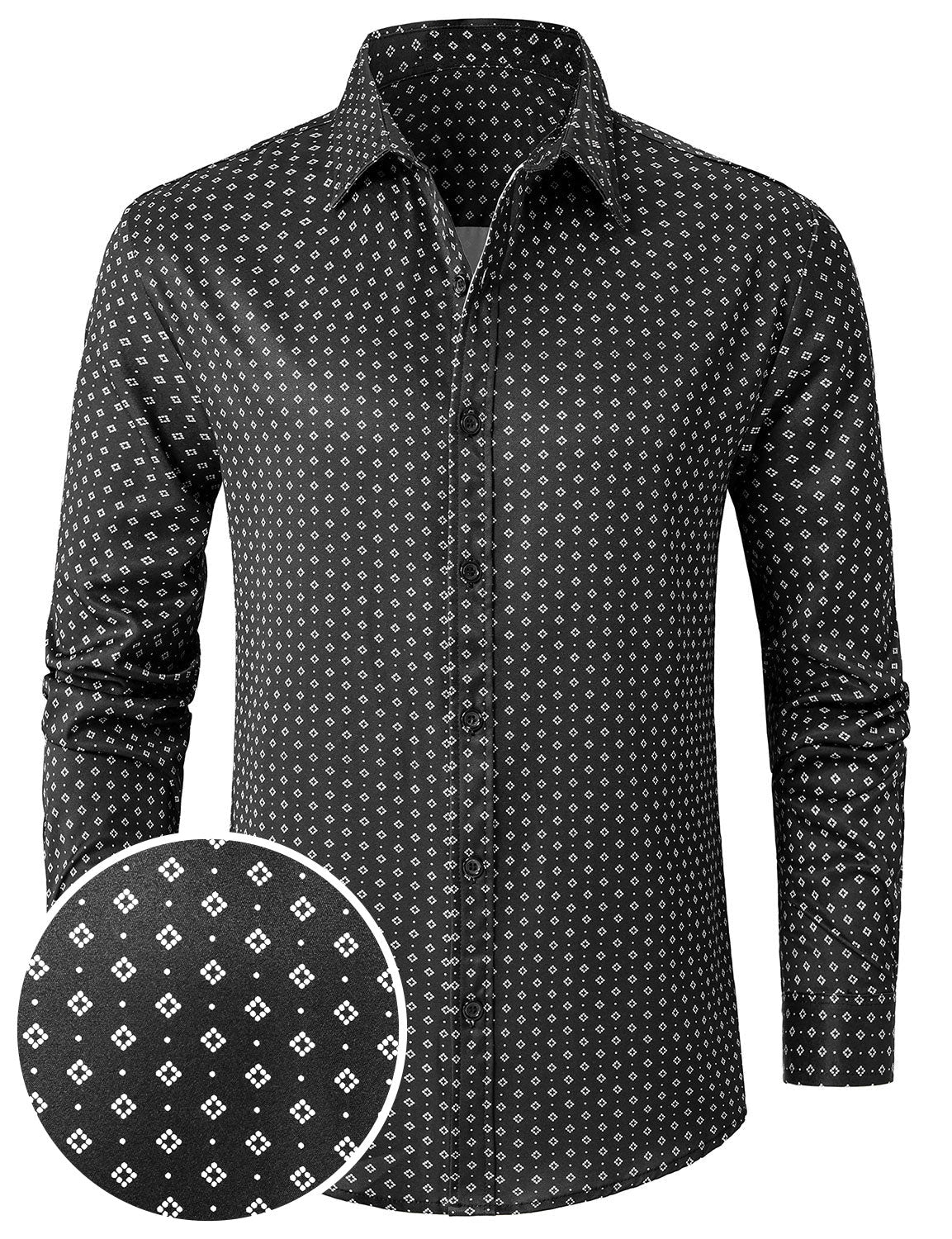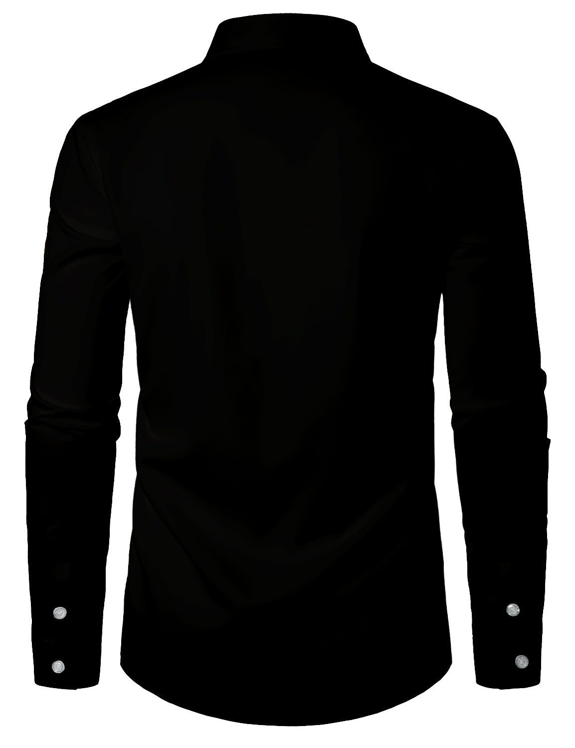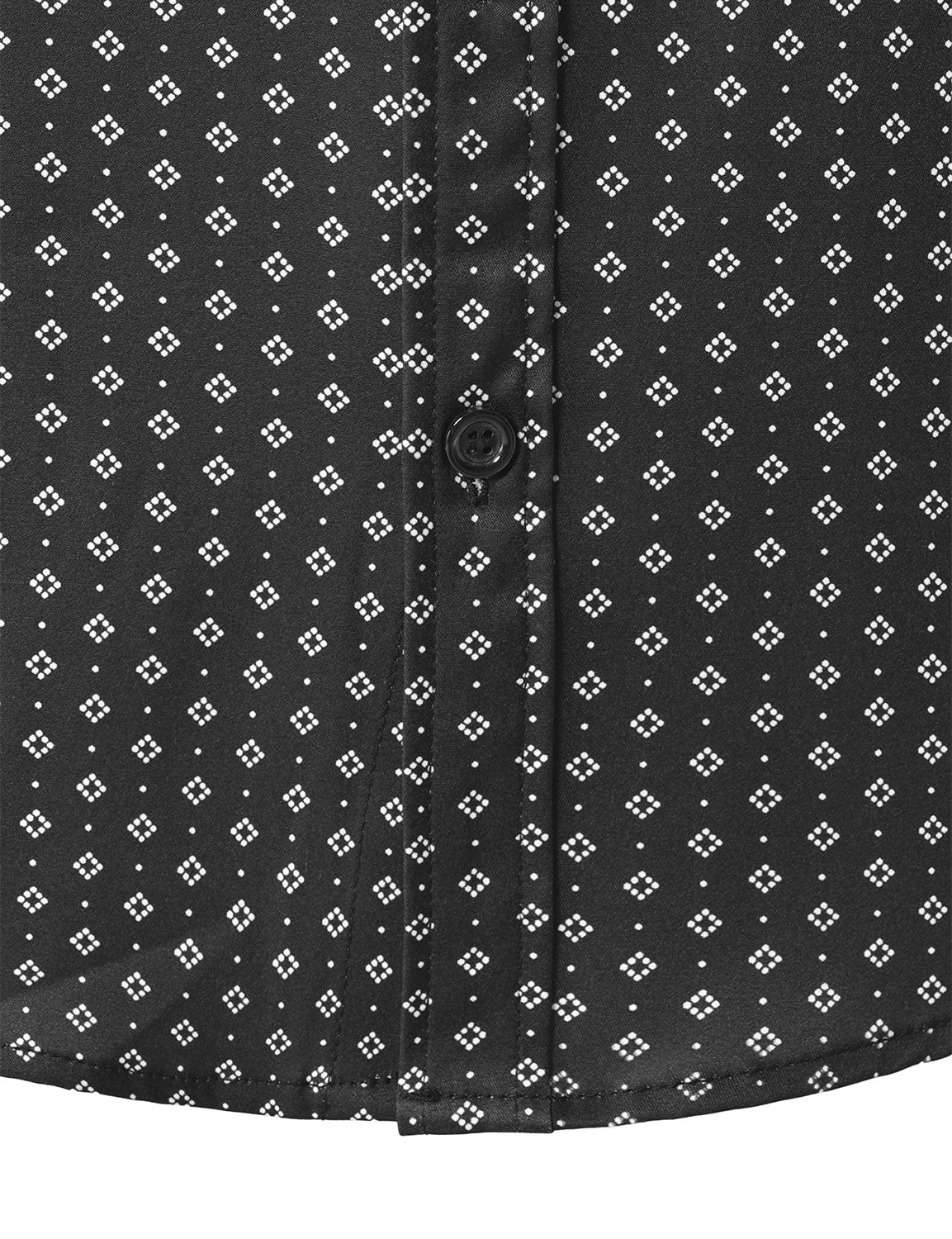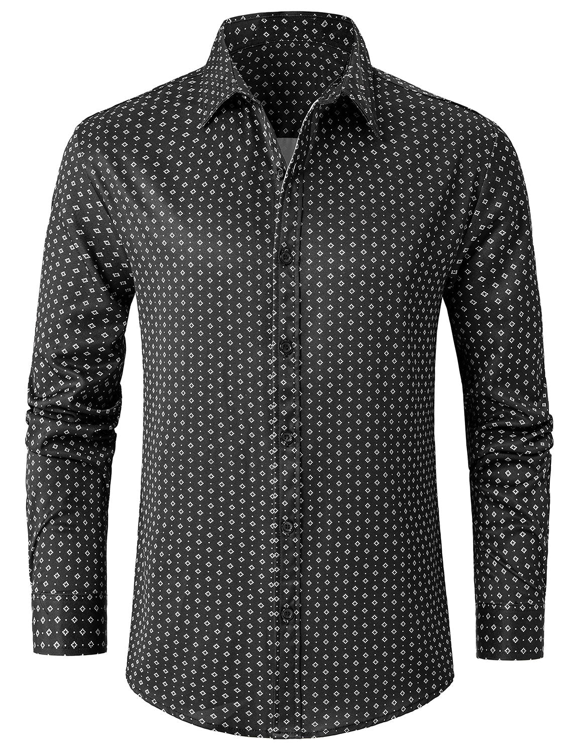 Chemise à manches longues noire à imprimé géométrique rétro pour homme