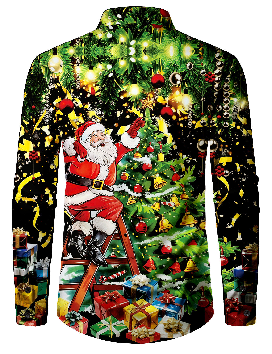 Chemise à manches longues pour homme avec imprimé Père Noël et Nouvel An
